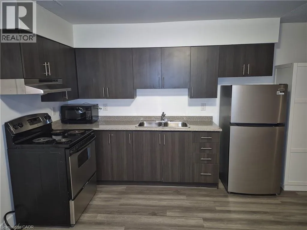 Darling St to Bridge St Welcome home to 27 Bridge Street, where historic charm meets modern living in the heart of downtown Brantford. This beautifully restored, three-story boutique building offers an unparalleled lifestyle, blending the character of yesterday with the conveniences of today.Step inside a thoughtfully renovated studio flat featuring carpet-free floors and an open, airy feel. The sleek, functional kitchen is equipped with brand-new appliances and elegant finishes. The updated bathroom provides a comfortable and convenient space. Located in a prime, walkable neighborhood, your new home is just a three-minute walk to Wilfrid Laurier University and steps away from the Brantford bus terminal, making it ideal for students and commuters. You'll be surrounded by a vibrant mix of cafes, diverse restaurants, and local shops, with something new to explore every day. This professionally managed and meticulously maintained building offers a worry-free living experience. Experience the best of Brantford livingâschedule your personal tour of 27 Bridge Street today! (id:27476)