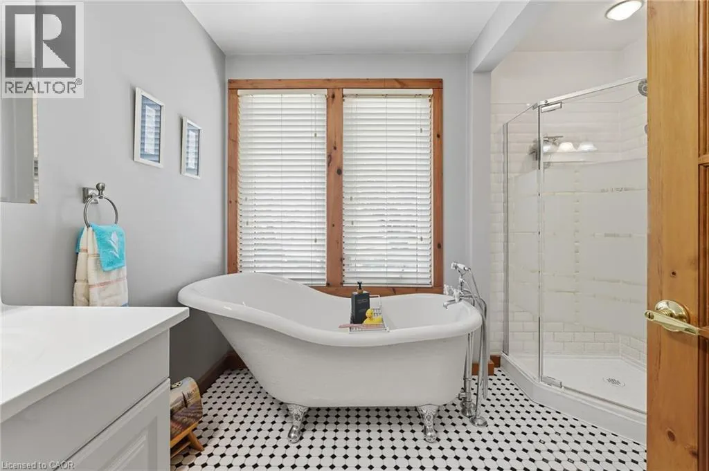 KING ST. BISHOPGATE RD. Welcome to 394 Bishopgate, Brantford a charming rural retreat set on a picturesque 1-acre lot. This immaculately maintained 2-bedroom bungalow exudes pride of ownership at every turn, blending comfort, functionality, and character to create the perfect place to call home. Step inside and you'll find warm pine floors throughout, adding natural beauty and rustic charm to the living spaces. The cozy fireplace, ducted to both the bedrooms and basement, provides efficient warmth and an inviting atmosphere. The home also features a spacious 4-piece bathroom, complete with a soaker standalone tub and separate shower, offering both elegance and relaxation. Outdoors, enjoy a rare and expansive deck ideal for entertaining friends and family or simply unwinding while taking in the peaceful country surroundings. One of the standout features of this property is the detached 26' x 30' heated double car garage, complete with three bay doors, and wired with 220 service a dream setup for hobbyists, mechanics, or anyone who needs a versatile workspace. All this, just minutes from Brantford's city amenities, offering the best of both worlds rural tranquility and modern convenience. With its mix of rural serenity and thoughtful updates, 394 Bishopgate offers more than just a home its a lifestyle. (id:27476)