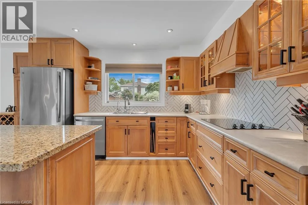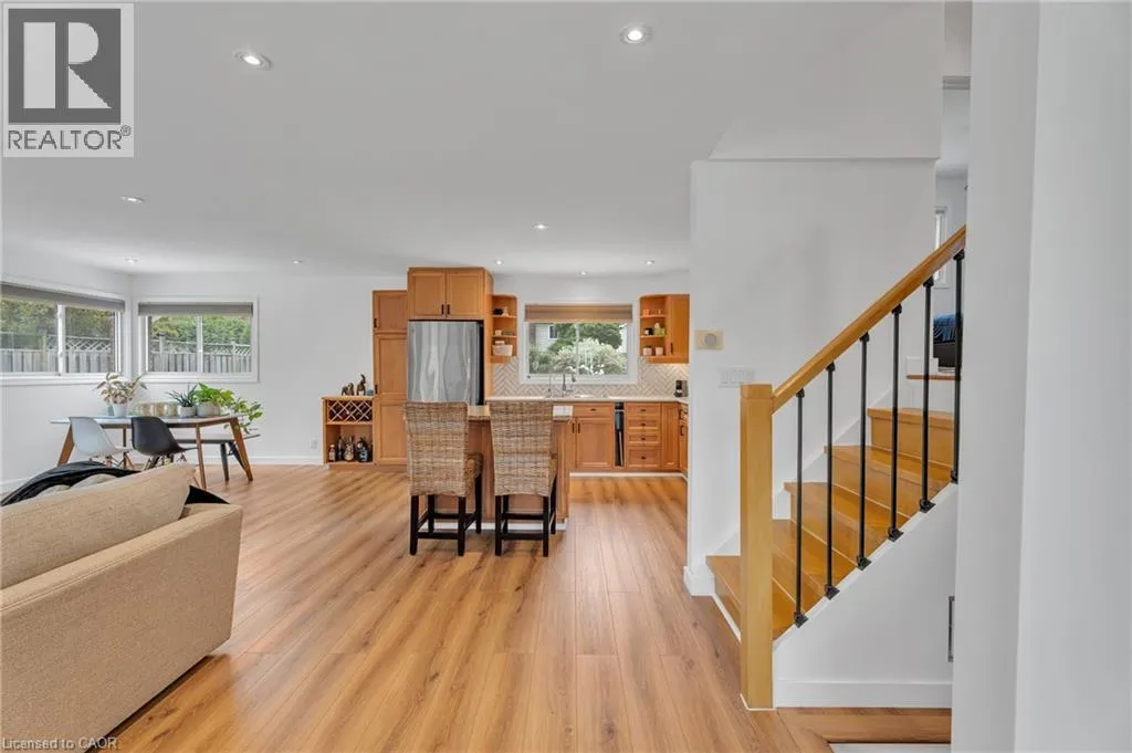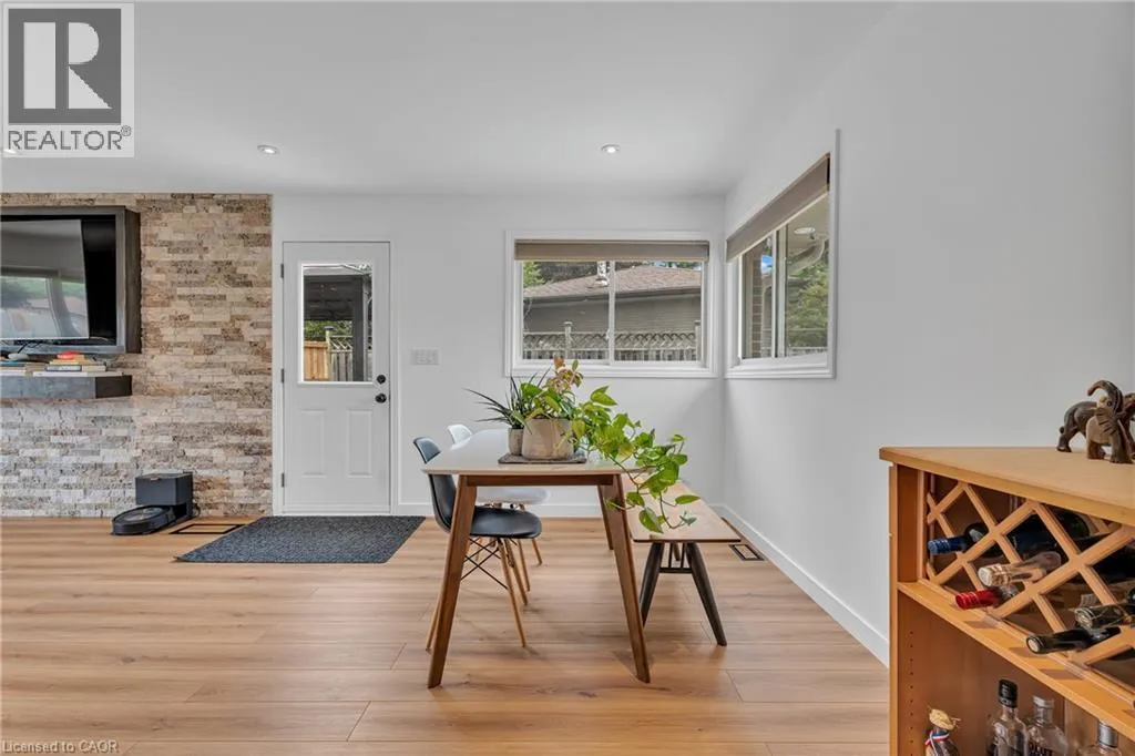 Colborne Street / Forest Road/ Hickery Place Stunning Renovated Bungalow in Echo Place! Welcome to this beautifully updated brick bungalow sitting on a generous 51 x 134 ft lot in a highly desirable neighbourhood. Featuring a bright open-concept main floor, this home offers a spacious living room with a modern stone accent wall, pot lights, large windows, and stylish lvl flooring. The eat-in kitchen is a true highlight, showcasing a white herringbone backsplash, ample cabinetry, granite island with seating, and a walkout to the gazebo and two decks â perfect for entertaining and enjoying the very private backyard. Retreat to the luxurious 2 full bathroom with vaulted ceiling and free standing tub, or head to the cozy finished basement with recreation room, movie area, and an impressive spa-like bathroom with a huge walk-in shower. Recent Updates & Features: Furnace (2025) & Water Heater (2025) Attics upgraded to R60 & crawl space spray foamed to R24 (2022) Water softener & purifier (2022) Modern appliances: fridge (2020), dishwasher (2021), washer & dryer Nest thermostat, 65-inch TV, island chairs, gazebo, window dressings & more included Located on a quiet street in Echo Place, close to parks, trails, schools, shopping, and highway access. This immaculate home is loaded with updates, move-in ready. (id:27476)