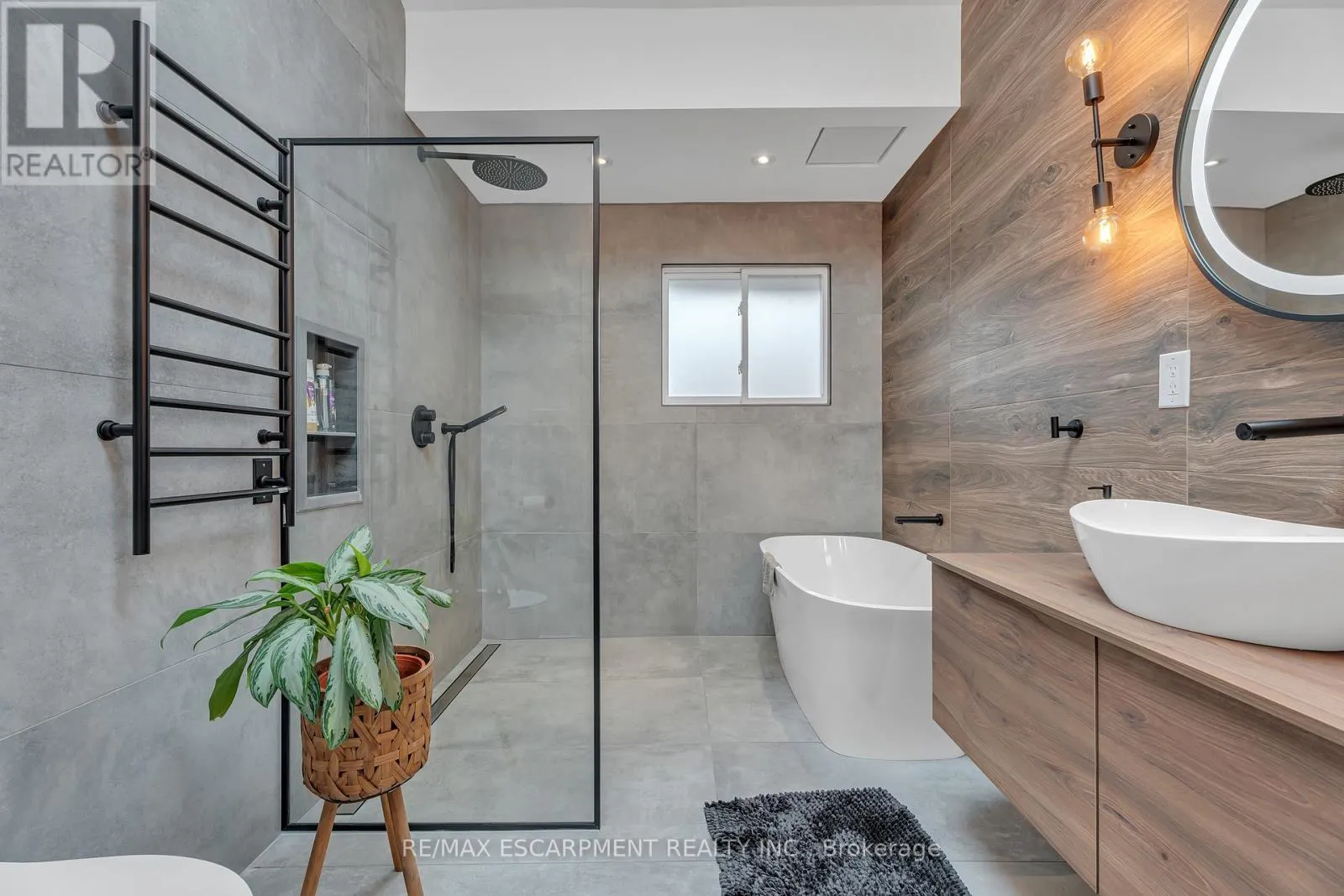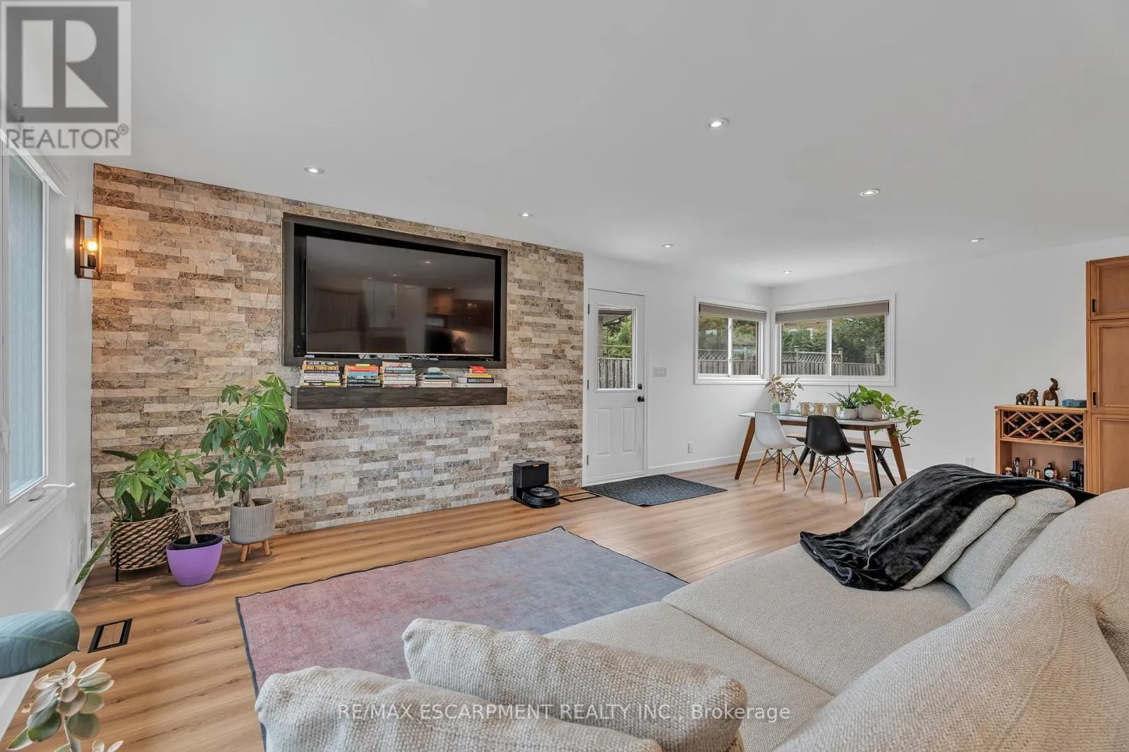 Cross Streets: Forest Road. ** Directions: Colborne Street / Forest Road/ Hickery Place. Stunning Renovated Bungalow in Echo Place! Welcome to this beautifully updated brick bungalow sitting on a generous 51 x 134 ft lot in a highly desirable neighbourhood. Featuring a bright open-concept main floor, this home offers a spacious living room with a modern stone accent wall, pot lights, large windows, and stylish lvl flooring. The eat-in kitchen is a true highlight, showcasing a white herringbone backsplash, ample cabinetry, granite island with seating, and a walkout to the gazebo and two decks perfect for entertaining and enjoying the very private backyard. Retreat to the luxurious 2 full bathroom with vaulted ceiling and free standing tub, or head to the cozy finished basement with recreation room, movie area, and an impressive spa-like bathroom with a huge walk-in shower. Recent Updates & Features: Furnace (2025) & Water Heater (2025) Attics upgraded to R60 & crawl space spray foamed to R24 (2022) Water softener & purifier (2022) Modern appliances: fridge (2020), dishwasher (2021), washer & dryer Nest thermostat, 65-inch TV, island chairs, gazebo, window dressings & more included Located on a quiet street in Echo Place, close to parks, trails, schools, shopping, and highway access. This immaculate home is loaded with updates, move-in ready, and shows beautifully! (id:27476)