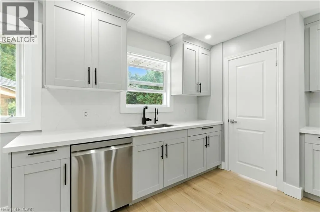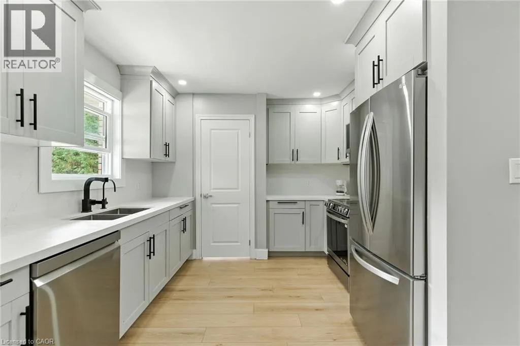 Memorial Drive to Varadi Beautifully renovated 5-bedroom, 2-bathroom bungalow in Brantfordâs highly desirable Greenbrier neighbourhood. This modern home is move-in ready, with stylish upgrades including sleek quartz countertops, stainless steel appliances, pot lighting, and a carpet-free design throughout. The main floor offers three spacious bedrooms and a bright open layout, while the fully finished basement doubles the living space with a separate entrance, full kitchen, two bedrooms, and in-law suite or rental potential. Perfect for families seeking flexibility or investors looking for income opportunities. Outdoors, enjoy a private backyard oasis featuring a concrete patio, gazebo, and mature treesâan entertainerâs dream. With a wide 67-foot lot and plenty of parking, this home combines comfort, convenience, and opportunity. Close to schools, shopping, and transit. (id:27476)