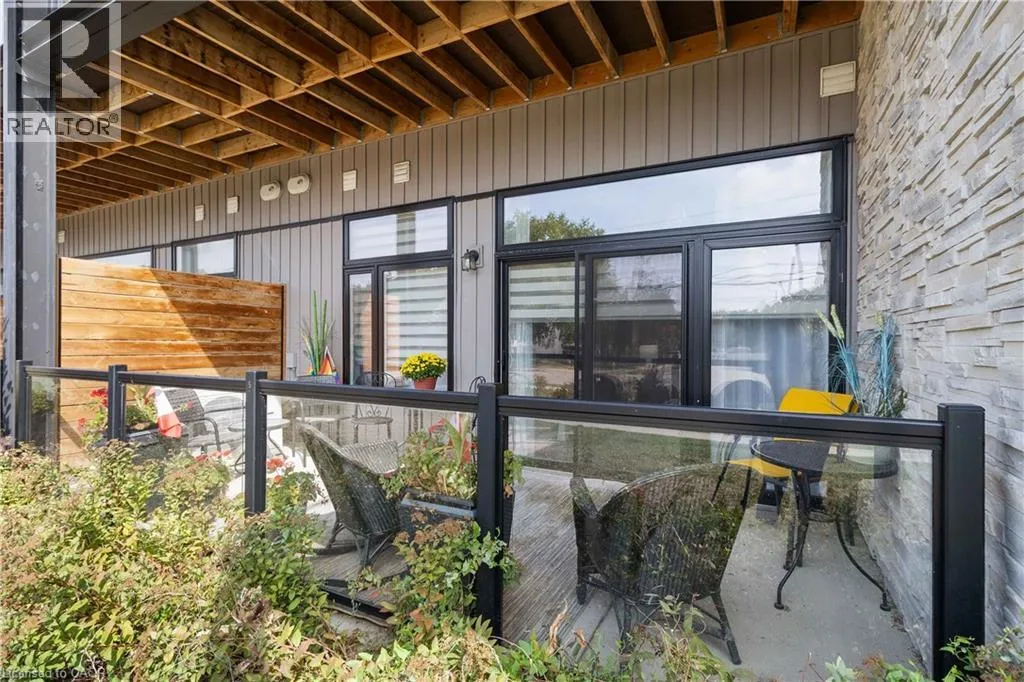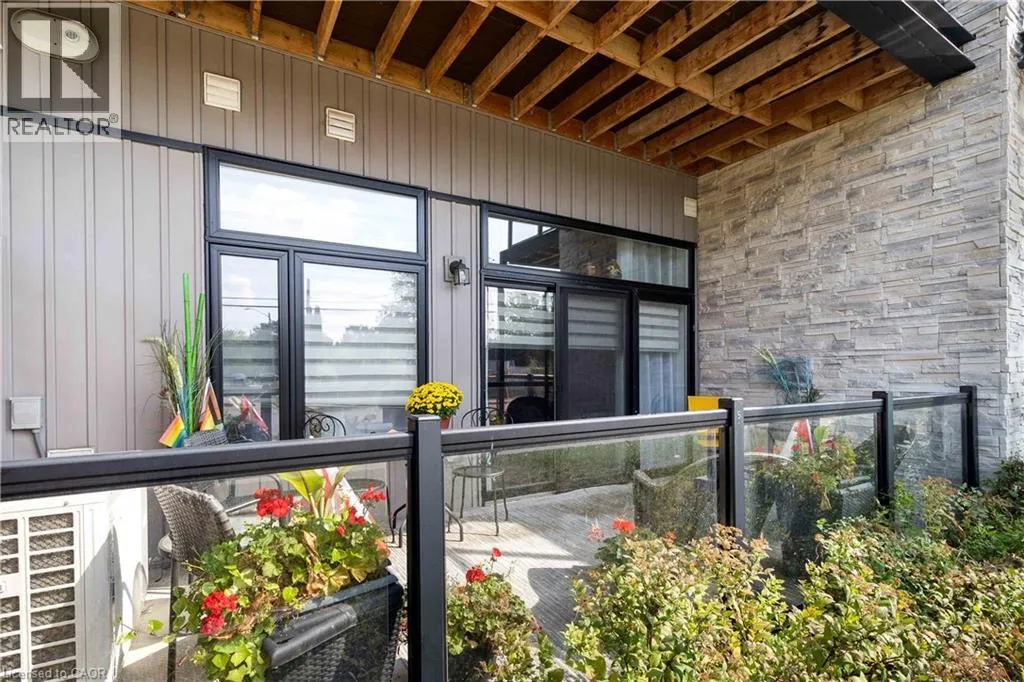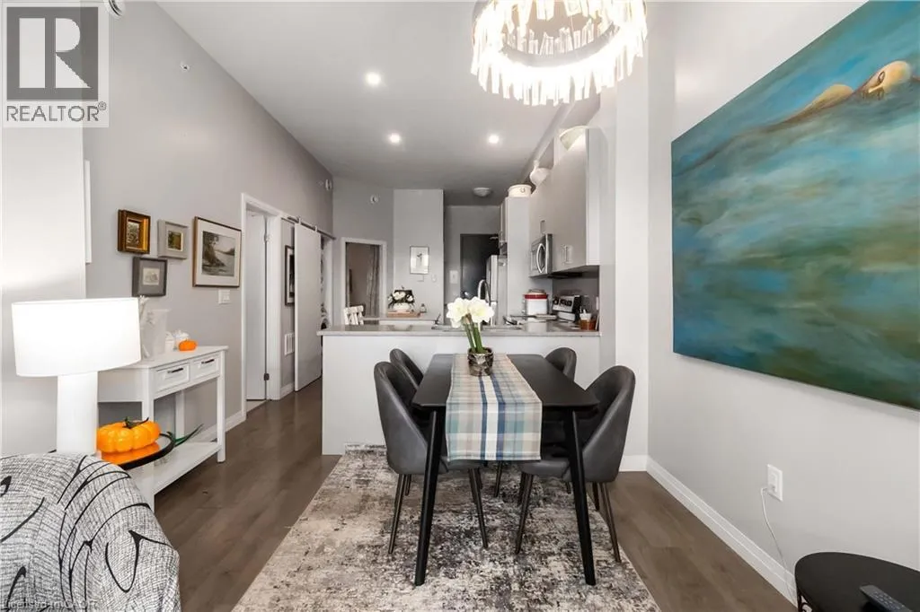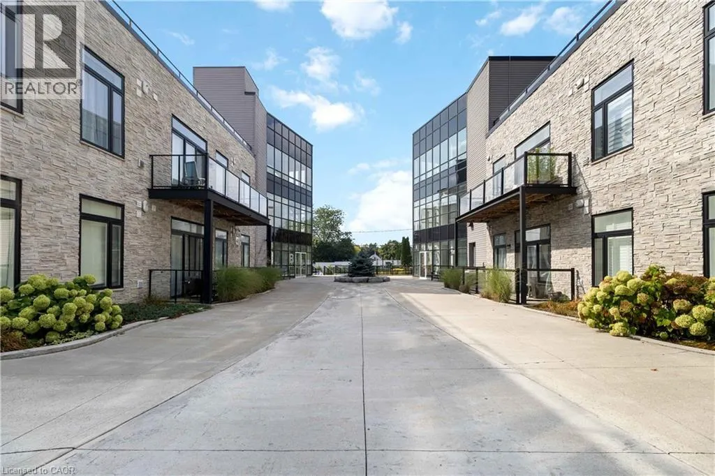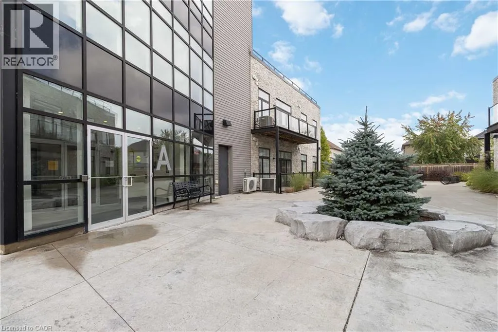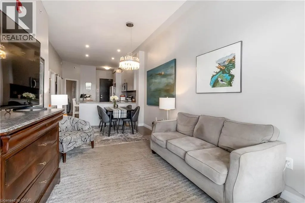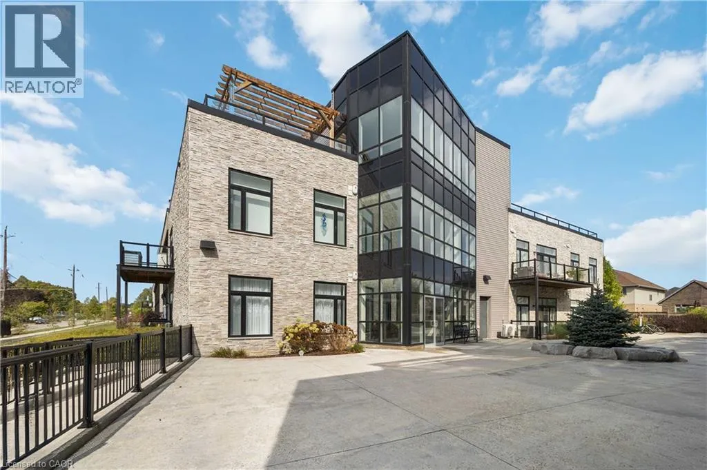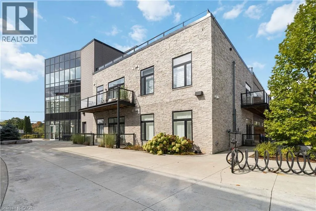 CORNER OF HOLME ST & MORRELL ST Experience modern living in this stylish ground-floor 1-bedroom plus den, 1-bathroom suite, thoughtfully designed for both comfort and convenience. Soaring ceilings and a bright, open-concept layout make the spacious living and kitchen area perfect for entertaining, while sleek contemporary finishes and abundant natural light create an inviting atmosphere. Step out onto the generous private balcony, ideal for enjoying morning coffee or relaxing after a long day. This well-appointed unit includes all appliances, in-suite laundry, and one dedicated parking space for added ease. Residents can take advantage of outstanding shared amenities, including an expansive BBQ patio, perfect for outdoor dining and social gatherings. Conveniently located near the Grand River, Rotary Bike Park, Wilkes Dam, Brantford General Hospital, and an array of popular restaurants, this home offers the perfect balance of modern style and everyday practicality. (id:27476)