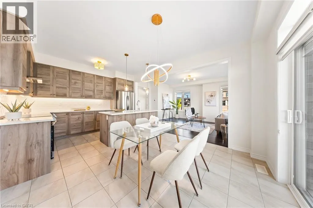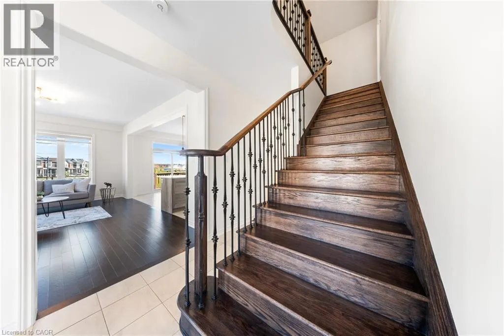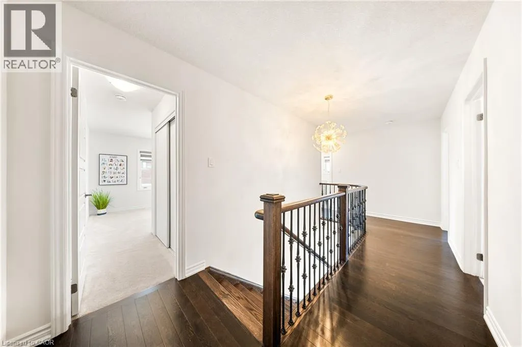 SHELLARDS LANE TO GILLESPIE DR TO BEE CRES. 1 Bee Crescent isnât just a home â itâs a statement. Sitting proudly on a corner lot in West Brant, this modern showstopper delivers over 2,100 sq ft of bold, stylish living with 4 bedrooms, 3.5 baths, and a layout that screams lifestyle. The moment you step inside, youâre greeted with space and light. A versatile office/sitting room and powder room kick things off before the home opens up into the heart of it all â a massive open-concept living, dining, and kitchen zone built for entertaining, relaxing, and everyday family life. The kitchen is a chefâs dream with quartz counters, stainless steel appliances, and endless storage, all framed by oversized windows that pull in natural light and backyard views. Upstairs, the hardwood stairs and hall lead you to a level designed for comfort. The primary retreat is pure luxury â a spa-style ensuite with separate tub and shower, dual closets (including a walk-in), and space to breathe. Three more large bedrooms, a full bath, and laundry right where you need it complete the floor. Outside, the modern curb appeal speaks volumes: double car garage, professional landscaping, striking exterior design â and the ultimate backdrop â this home backs onto a trail, greenspace, and pond. Imagine morning coffee with nature as your neighbour. All of this, steps from schools, trails, parks, shopping, dining, and exciting new amenities in Brantfordâs fastest-growing neighbourhood. Why settle for ordinary? Start living your dream lifestyle at 1 Bee Crescent â where modern design meets everyday magic. (id:27476)