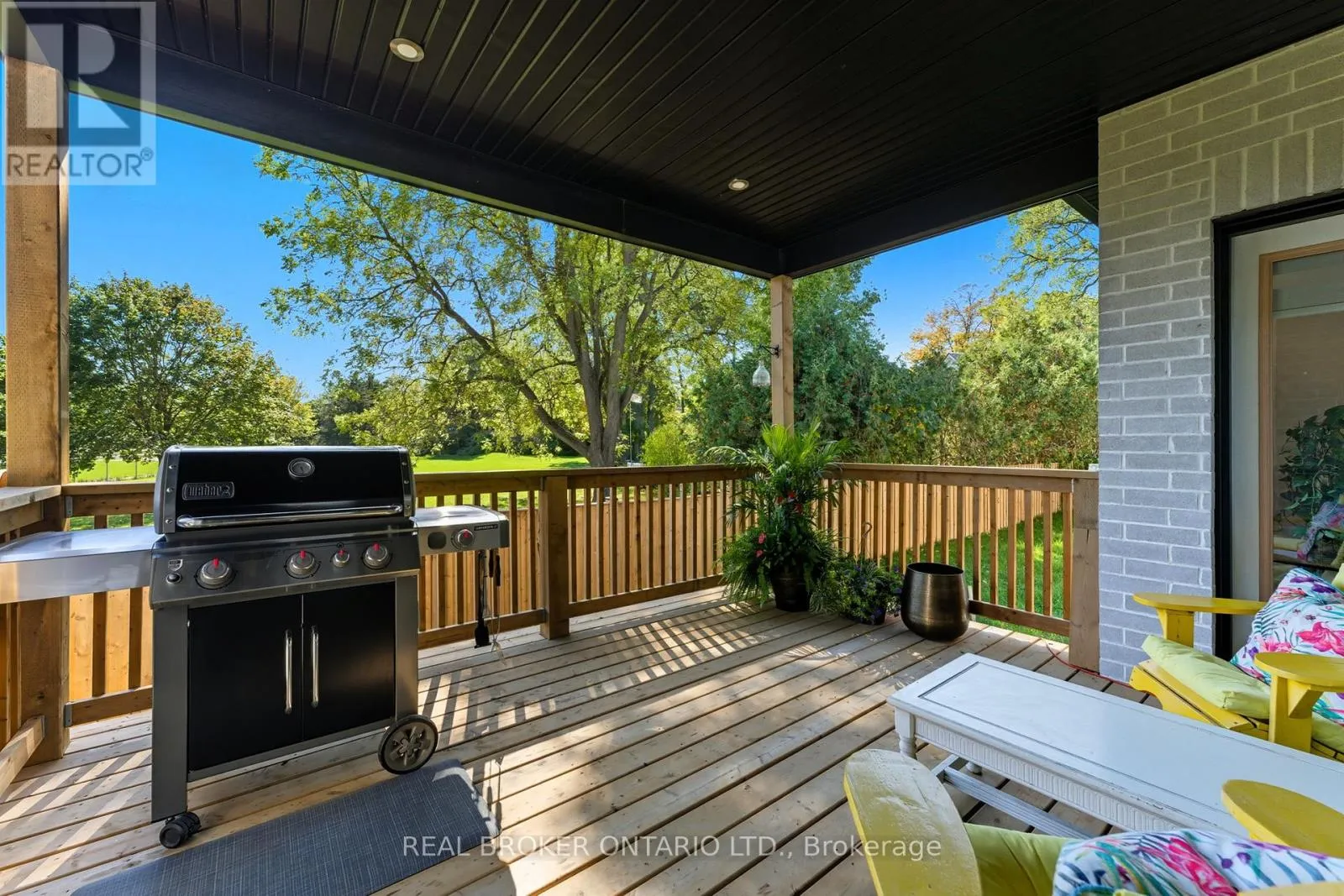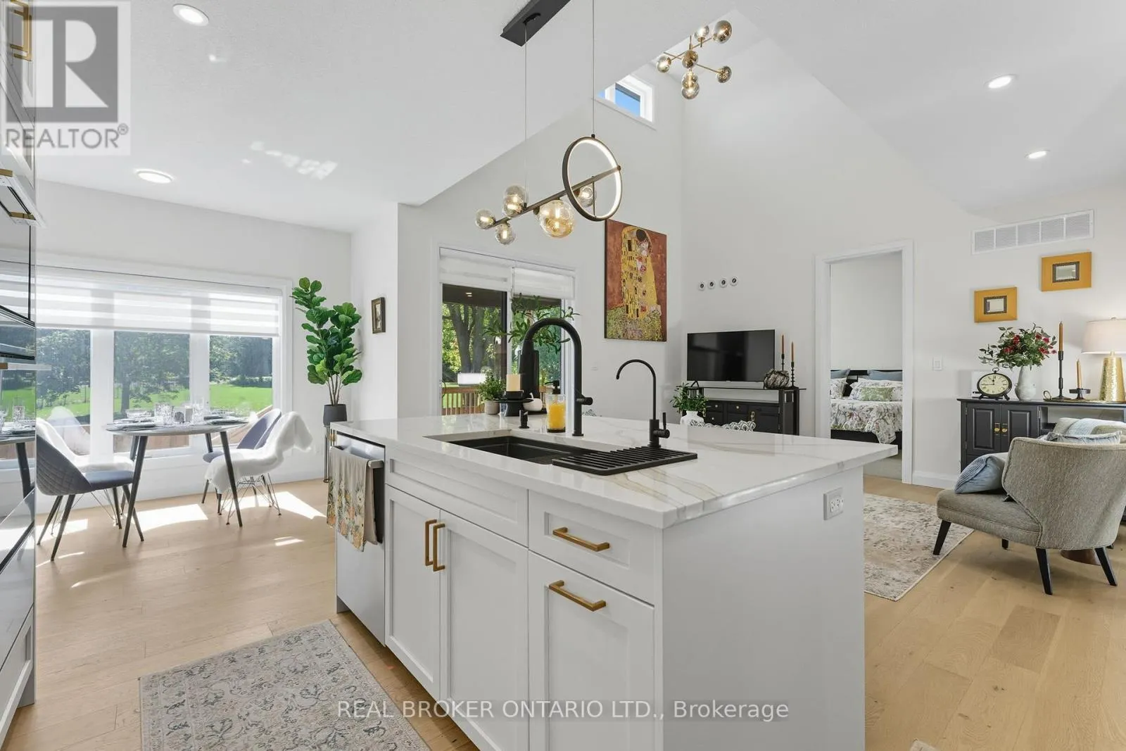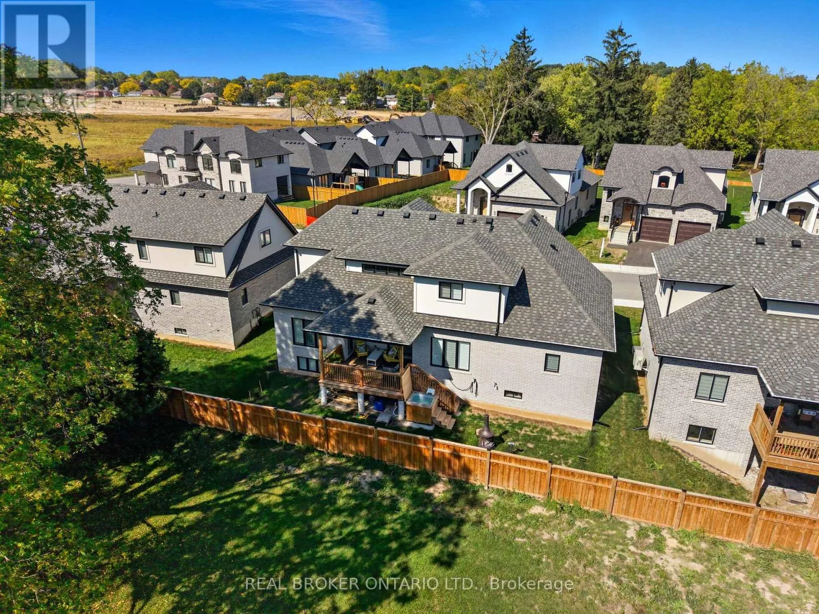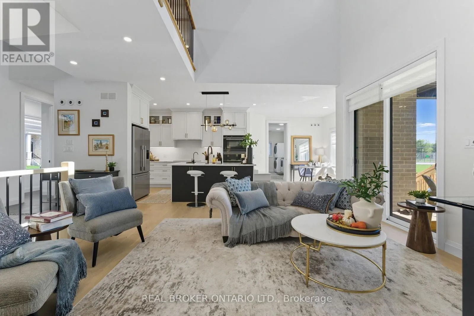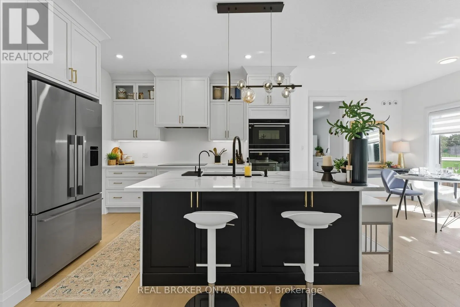VETERANS MEMORIAL PARKWAY TO MOUNT PLEASANT STREET Nestled in the prestigious Lions Park Estates community of Brantford, this executive all-brick residence combines timeless sophistication with modern comfort. Perfectly positioned on a quiet cul-de-sac, this home is an ideal retreat for those seeking luxury living in a private setting. Step inside to soaring ceilings, wide-plank engineered hardwood flooring, and sun-filled open-concept living spaces designed for both everyday living and entertaining. The chef-inspired kitchen is a true showpiece, showcasing white cabinetry, quartz countertops, designer hardware, an undermount sink, a breakfast bar, and a walk-in pantry. The main floor features a serene primary suite complete with a spacious walk-in closet and a spa-like 5-piece ensuite featuring a glass shower, soaker tub, and dual vanities. A versatile office/den with garage access, powder room, and convenient laundry area complete this thoughtfully designed level. Upstairs, the loft offers two oversized bedrooms and a sleek 4-piece bathroom, providing comfort and privacy for family or guests. The partially finished lower level with soaring ceilings offers endless possibilities, already featuring a sauna and Nordic-inspired spa bathroom. Step outside to enjoy seamless indoor-outdoor living with a covered wooden deck, and a cold plunge tub, perfectly complementing the spa-like amenities of this home, for year-round relaxation or entertaining. (id:27476)