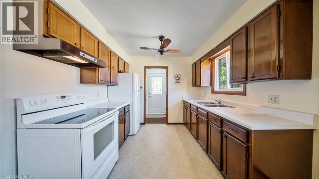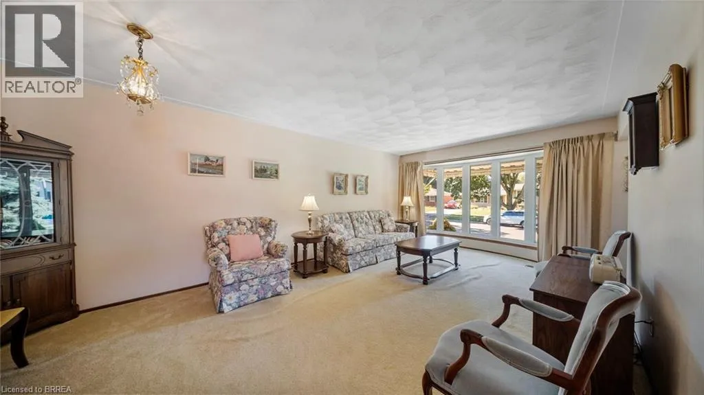 Fairview Drive to Brier Park Rd Right on Acorn Lane Welcome to 15 Acorn Lane in Brantford. Nestled in the quiet and mature Brier Park neighbourhood, this 4-bedroom, 1.5-bathroom home is ideally located close to all major amenities, with easy access to Highway 403, shopping, dining, and more. Step inside to a bright and spacious entryway offering direct access to the kitchen and adjacent living room. The living room is filled with natural light from the large bow window and flows seamlessly into the eat-in kitchen. Just off the kitchen, youâll find a generous sized family roomâperfect for hosting and entertaining year-roundâwith sliding patio doors leading directly to the backyard. A convenient side entrance adds additional outdoor access, along with a bathroom and a fourth bedroom, ideal for guests or a home office. Upstairs, youâll find three spacious bedrooms, including the primary, along with a 4-piece bathroom. The partially finished lower level provides endless possibilities, whether youâre envisioning another rec room, play area, or home gym. The backyard is a true highlightâmeticulously maintained and featuring a covered wooden deck and two garden sheds, perfect for storage or hobbies. This is a fantastic opportunity to own a well-cared-for home in a sought-after location. (id:27476)