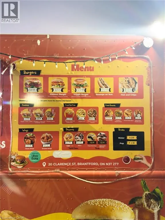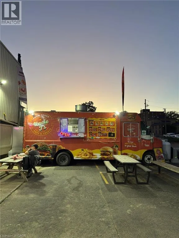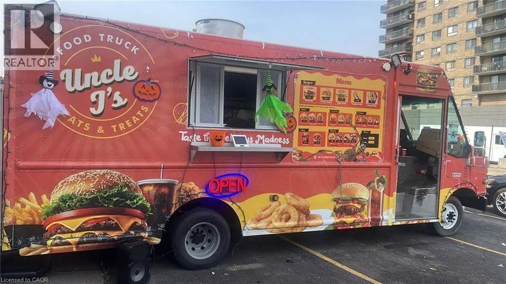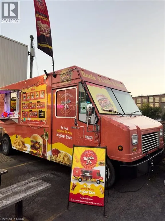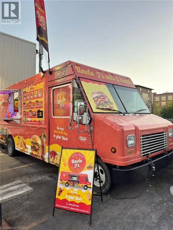 DARLING STREET TO CLARENCE STREET Exciting Business Opportunity â Uncle Jâs Eats & Treats Food Truck in Downtown Brantford! Ready for a new owner or investor â this turn-key business is set up for success! Located in the heart of downtown Brantford, this drivable and fully equipped food truck offers endless potential to grow in a high-traffic area. The landlord is offering a 2-year free lease at the current prime location, or you can drive the truck and take your business anywhere you choose. The truck comes with everything you need to hit the ground running: The food truck comes fully equipped with 2 regular fryers, 1 shallow fryer, 2 burners with oven and griddle, a Henny Penny pressure fryer, 48â prep table, fridge, deep freezer, 13 ft. hood, 2 propane tanks, and 2 picnic benches for customers With a versatile menu and strong appeal to local consumers, Uncle Jâs Eats & Treats is a fantastic opportunity for a motivated entrepreneur to take over and grow a brand in a vibrant community Donât miss this chance â schedule a viewing today (id:27476)