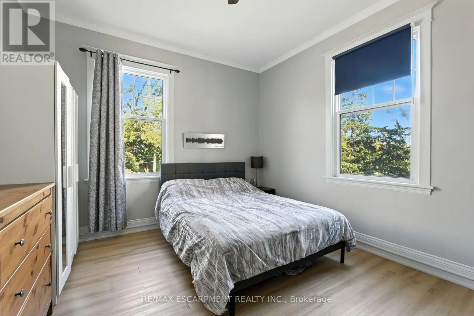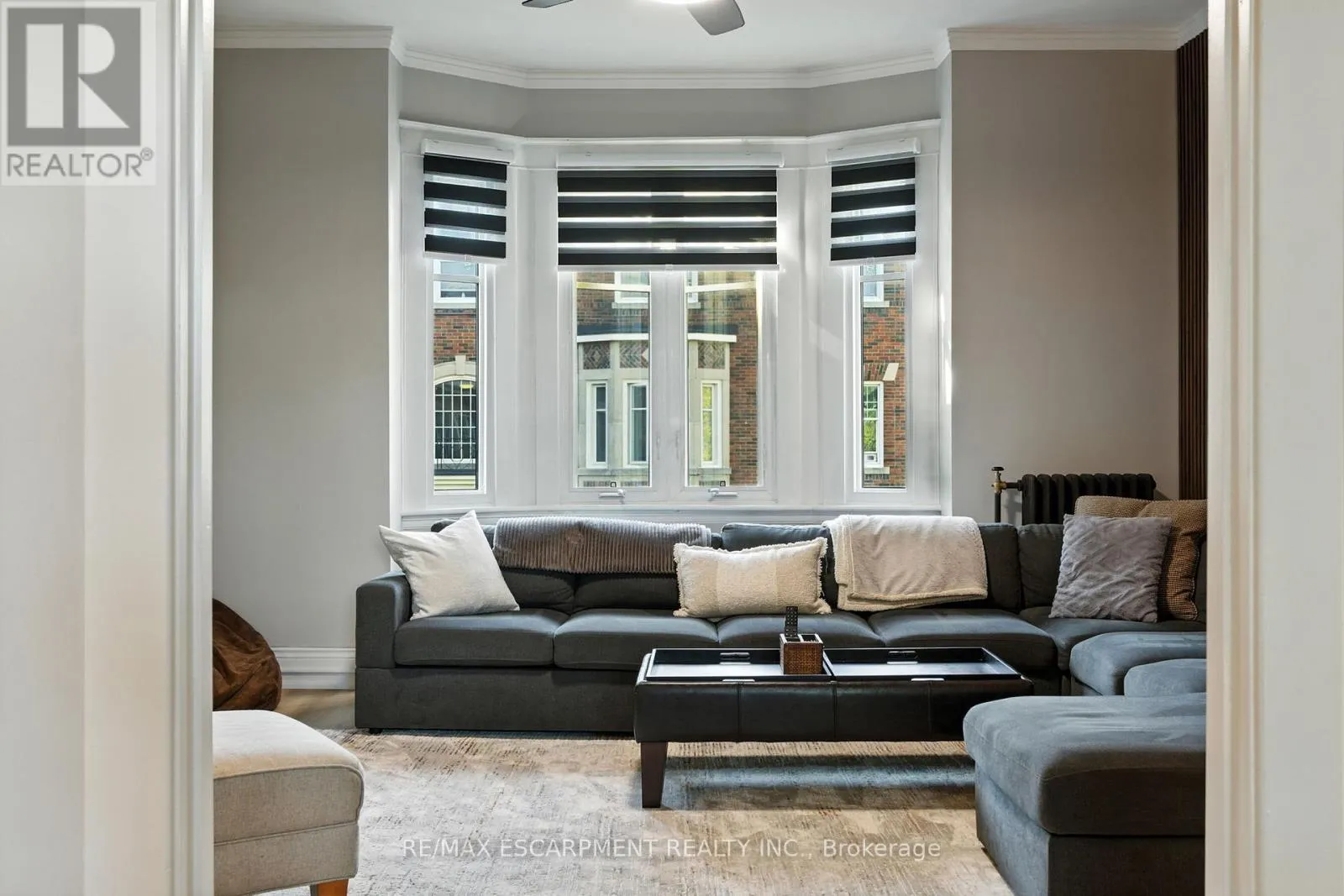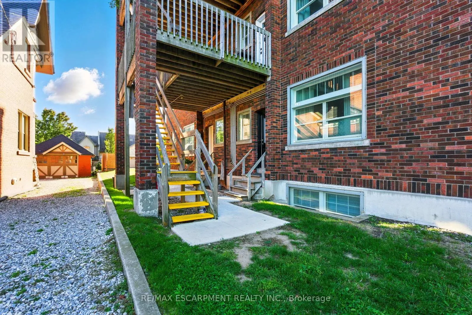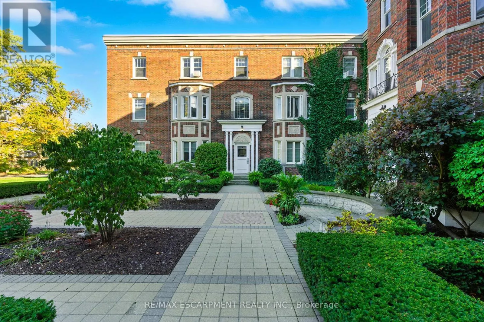 Brant Ave to Lorne Cres to Dufferin Ave Welcome to 54 Dufferin Avenue, where timeless character meets modern style. This newly updated condo offers a rare opportunity to live in one of Brantfords most sought-after and historic neighbourhoods, blending the beauty of early 1900s architecture with todays conveniences. Inside, youll find nearly 1,000 square feet of thoughtfully designed living space. High ceilings, oversized windows and classic details like crown moulding and original hardware give the unit a sophisticated feel, while the updates make it completely move-in ready. The kitchen features quartz countertops, subway tile backsplash, valance lighting and plenty of prep space. The bathroom has been fully refreshed with a new vanity and timeless penny tile flooring that ties back to the homes 1910 heritage. Durable vinyl flooring runs throughout for a clean, modern look. The spacious living room overlooks the beautifully landscaped courtyard perfect for relaxing after work or hosting friends. Beyond your front door, youll love being steps away from parks, walking trails and nearby pickleball courts, as well as downtown shops, restaurants and schools. With easy access to Hwy 403 and public transit, this location makes it simple to balance work, play and everyday convenience. Offering heritage appeal, modern upgrades and a vibrant community setting, this condo is the ideal first step into homeownership in one of Brantfords most desirable areas. RSA. (id:27476)