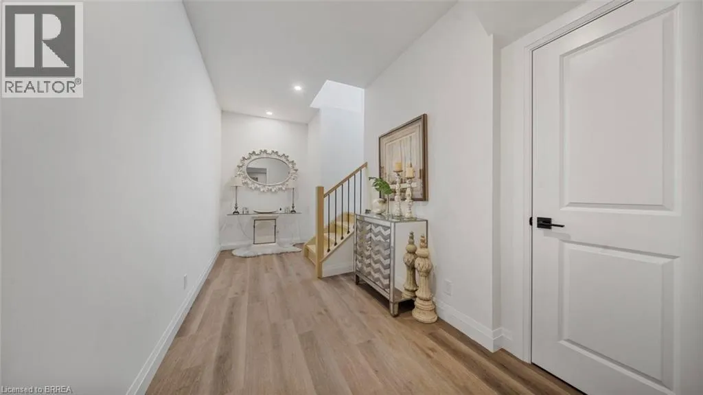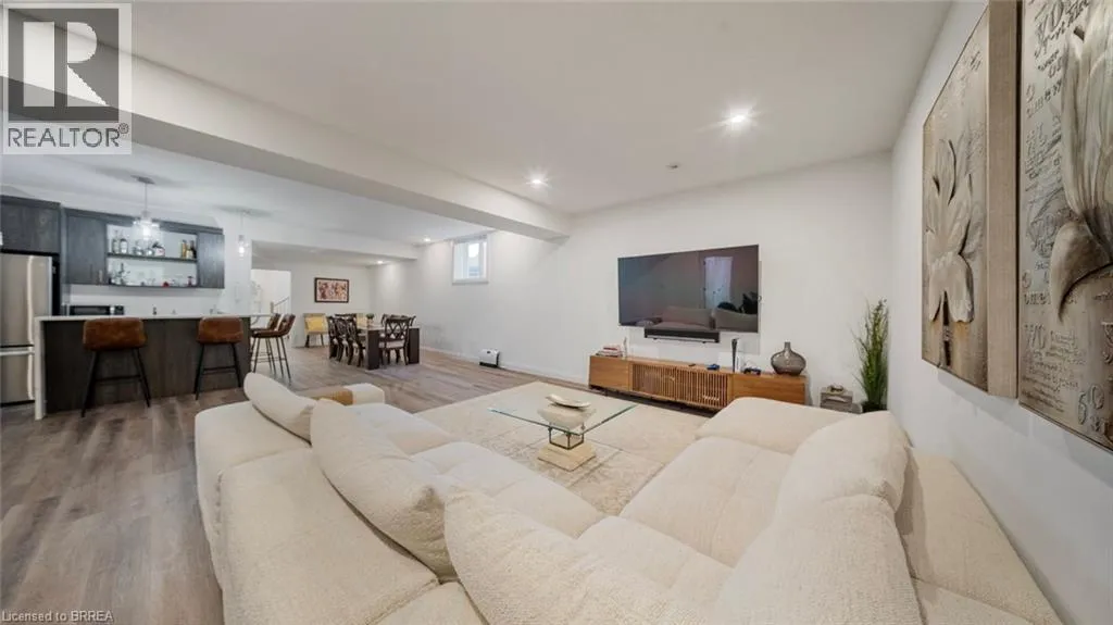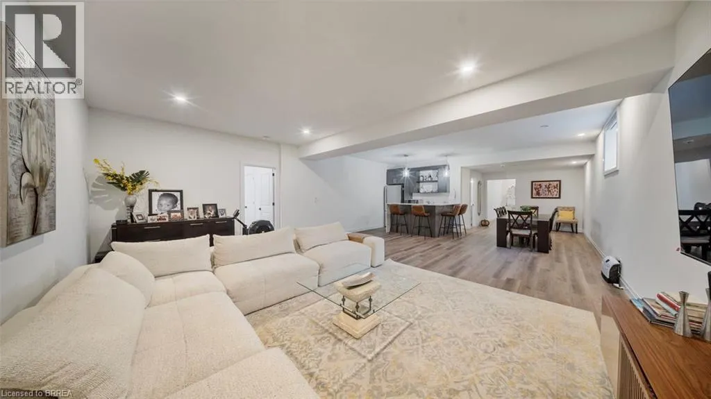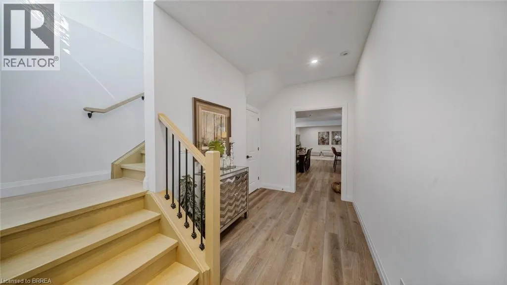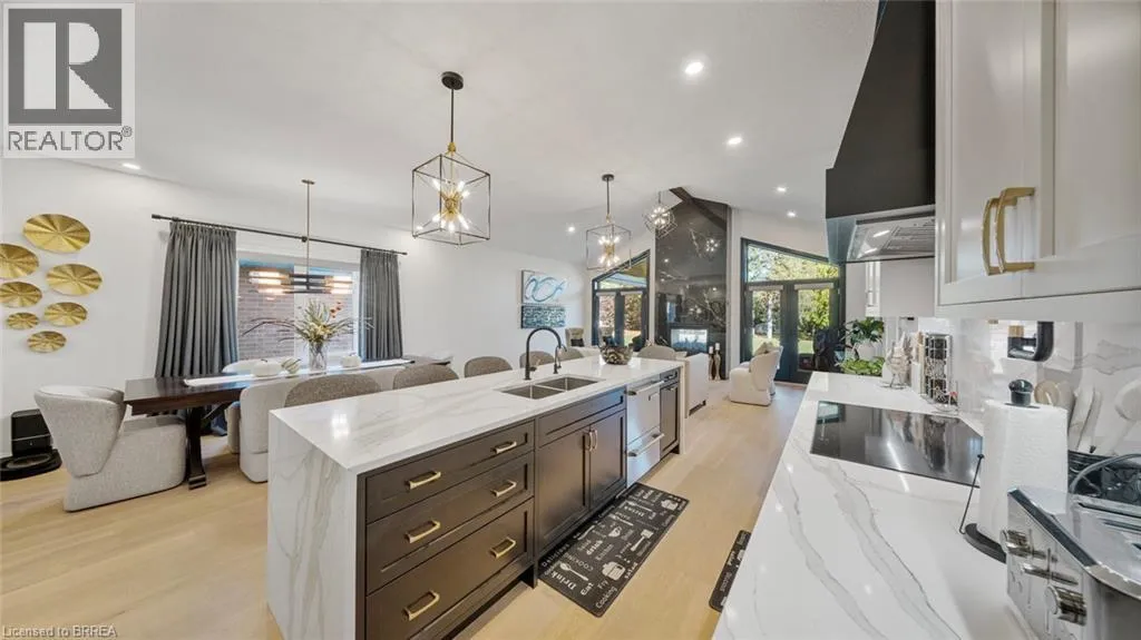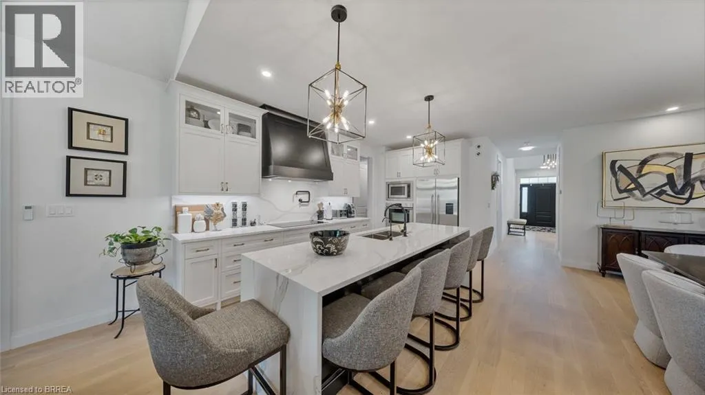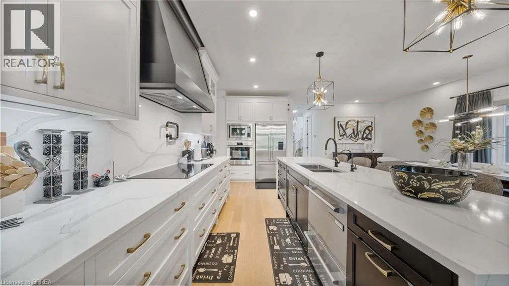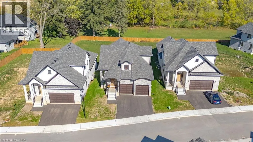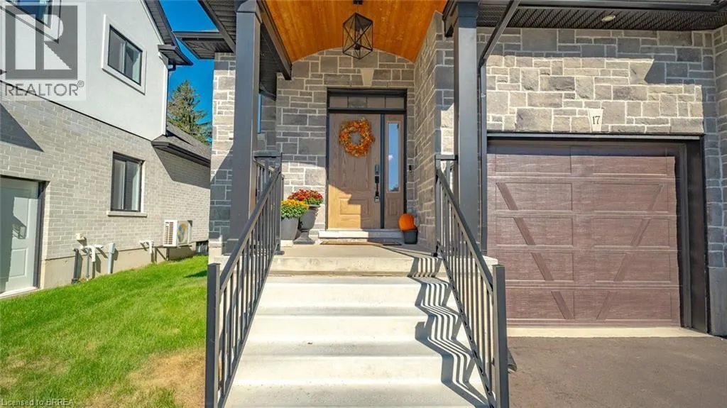 Veterans Memorial & Mount Pleasant Street Welcome to 242 Mount Pleasant Street #17, an exceptional residence in Brantford's sought-after Lions Park Estates. Nestled on a quiet cul-de-sac just steps from Lions Park, Gilkinson Trail, and the Grand River, this home blends sophistication, comfort, and convenience in one breathtaking package. With 4+1 bedrooms, 3.5 bathrooms, and over 4,300 square feet, the property showcases more than $330,000 in upgrades. The main floor impresses with soaring ceilings, wide-plank hardwoods, and an open layout anchored by a dramatic dual-sided fireplace connecting the living room to the covered back patio. Evenings here can be spent fireside, cooled by a built-in fan, and surrounded by nature. The gourmet kitchen is a showpiece with an oversized waterfall island, custom cabinetry, and Fisher & Paykel appliances. Open sightlines to the dining and living areas make it ideal for gatherings, while designer lighting adds elegance throughout. The primary suite offers a true retreat with a tray ceiling, private patio walkout, spa-like ensuite with Riobel fixtures, freestanding soaker tub, glass shower, and double vanity, plus a custom walk-in dressing room. Upstairs are two additional bedrooms, a full bathroom, and a versatile loft perfect for an office, study, or lounge. The fully finished lower level extends the home with an impressive in-law suite including a kitchenette, bedroom, full bathroom, spacious living/dining area, and a stylish bar with rec roomperfect for guests or multigenerational living. Unique features include a dog spa in the mudroom, a dedicated main-floor office (or bedroom), electric vehicle charging stations, and a covered outdoor living space for year-round entertaining. This is more than a home: it's a lifestyle. (id:27476)