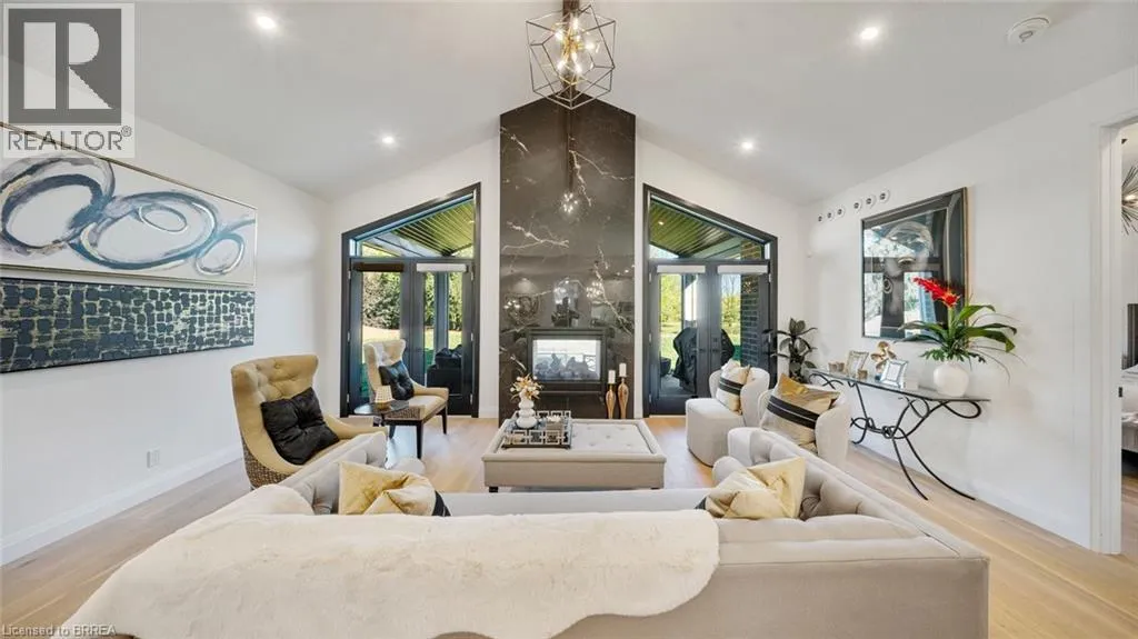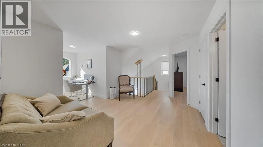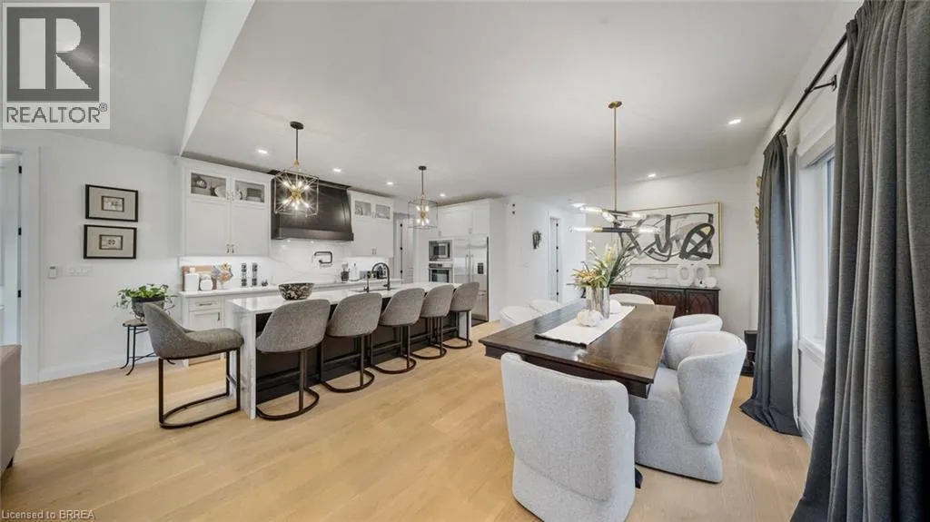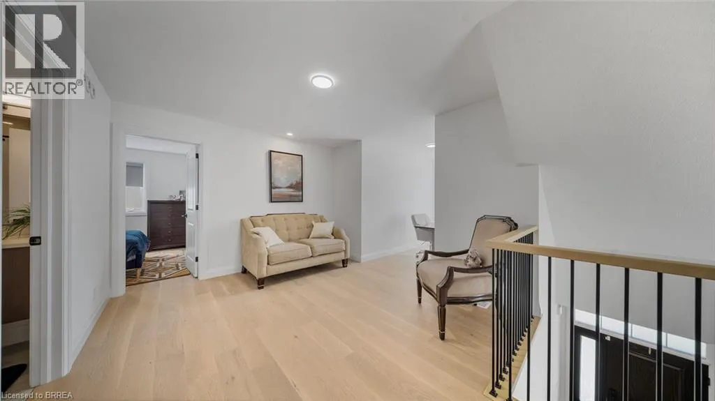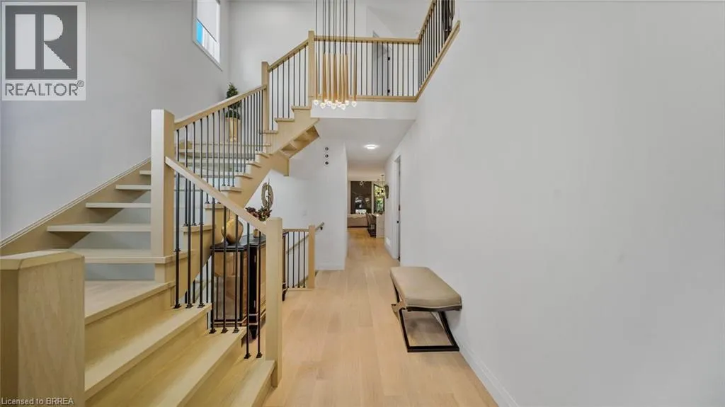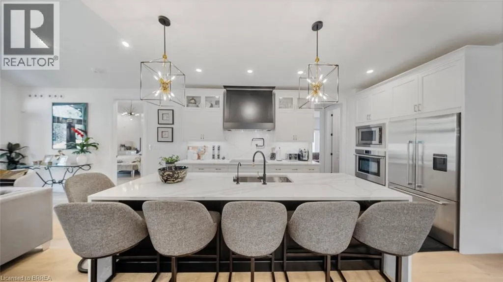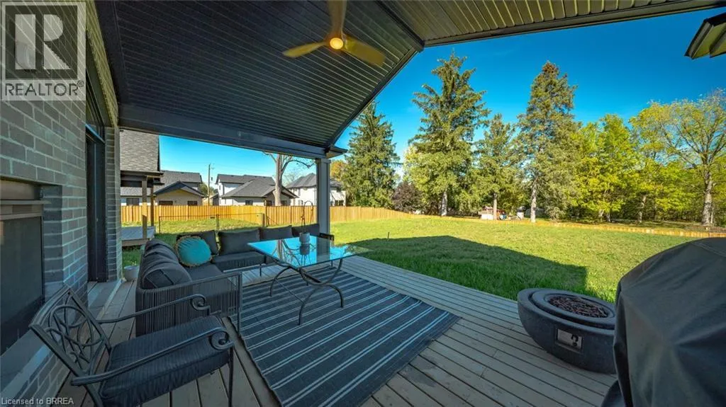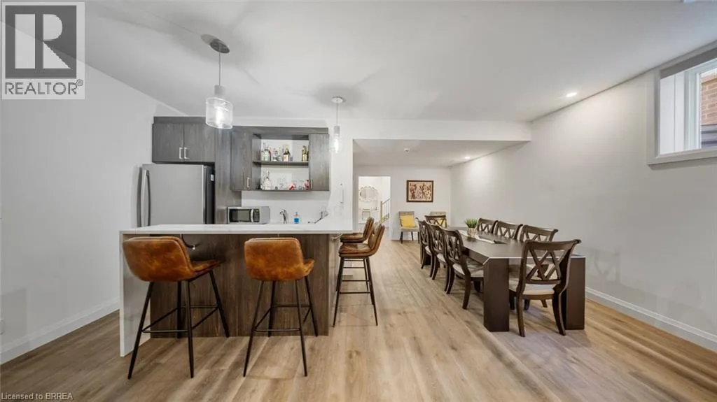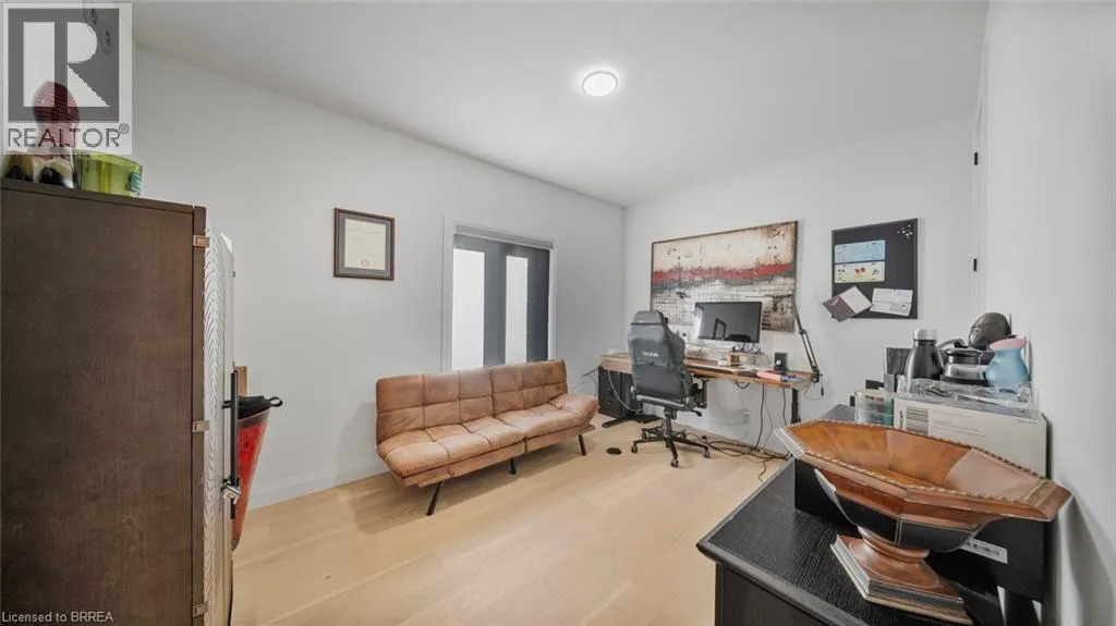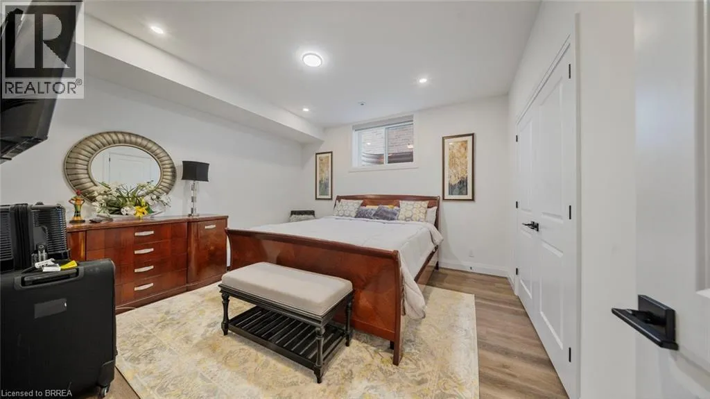 Veterans Memorial & Mount Pleasant Street Welcome to 242 Mount Pleasant Street #17, an exceptional residence in Brantford's sought-after Lions Park Estates. Nestled on a quiet cul-de-sac just steps from Lions Park, Gilkinson Trail, and the Grand River, this home blends sophistication, comfort, and convenience in one breathtaking package. With 4+1 bedrooms, 3.5 bathrooms, and over 4,300 square feet, the property showcases more than $330,000 in upgrades. The main floor impresses with soaring ceilings, wide-plank hardwoods, and an open layout anchored by a dramatic dual-sided fireplace connecting the living room to the covered back patio. Evenings here can be spent fireside, cooled by a built-in fan, and surrounded by nature. The gourmet kitchen is a showpiece with an oversized waterfall island, custom cabinetry, and Fisher & Paykel appliances. Open sightlines to the dining and living areas make it ideal for gatherings, while designer lighting adds elegance throughout. The primary suite offers a true retreat with a tray ceiling, private patio walkout, spa-like ensuite with Riobel fixtures, freestanding soaker tub, glass shower, and double vanity, plus a custom walk-in dressing room. Upstairs are two additional bedrooms, a full bathroom, and a versatile loft perfect for an office, study, or lounge. The fully finished lower level extends the home with an impressive in-law suite including a kitchenette, bedroom, full bathroom, spacious living/dining area, and a stylish bar with rec roomperfect for guests or multigenerational living. Unique features include a dog spa in the mudroom, a dedicated main-floor office (or bedroom), electric vehicle charging stations, and a covered outdoor living space for year-round entertaining. This is more than a home: it's a lifestyle. (id:27476)
