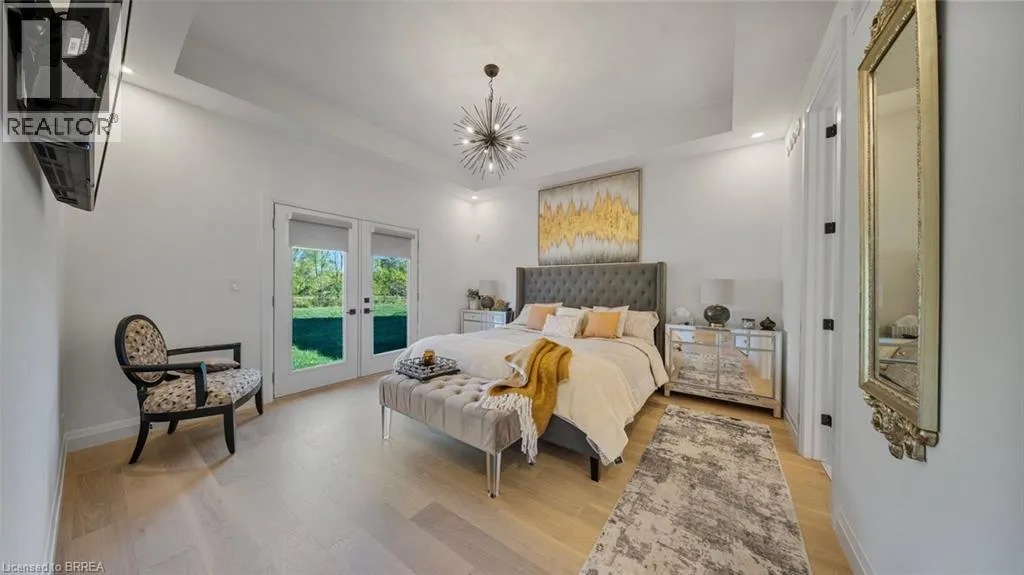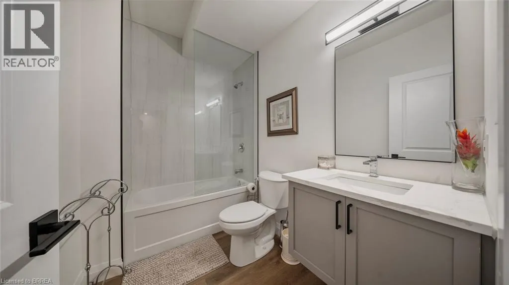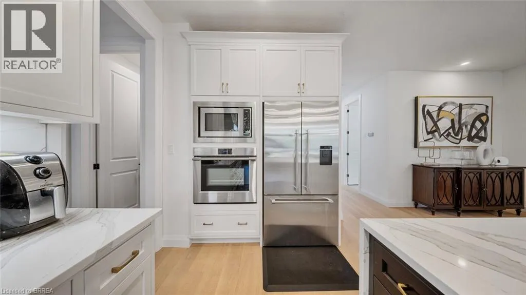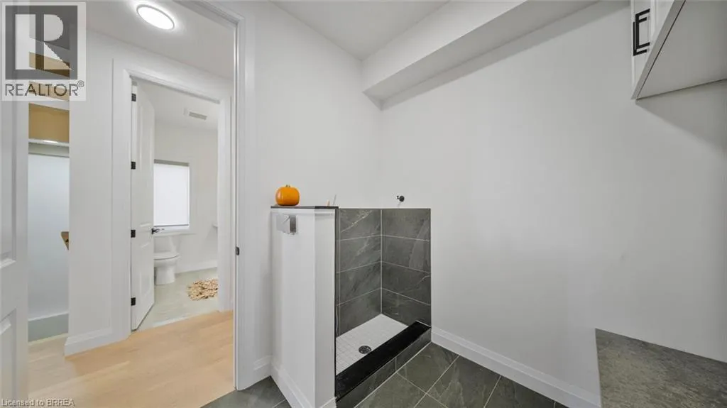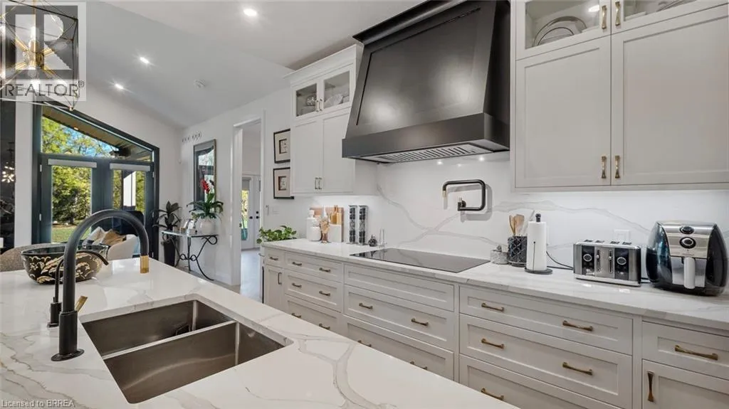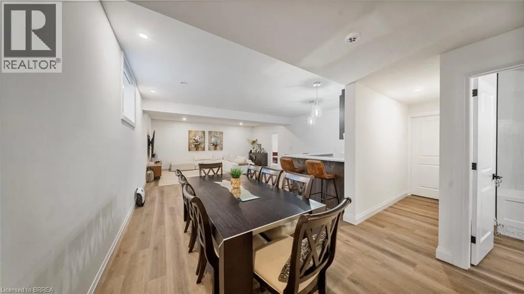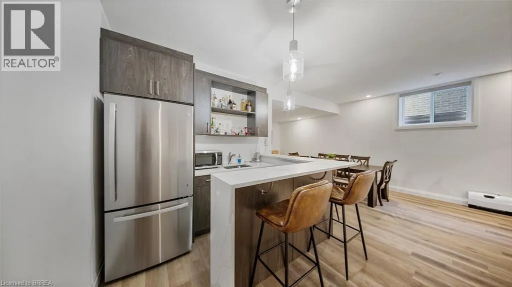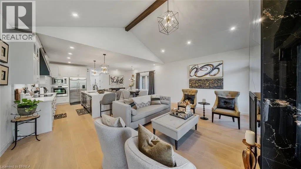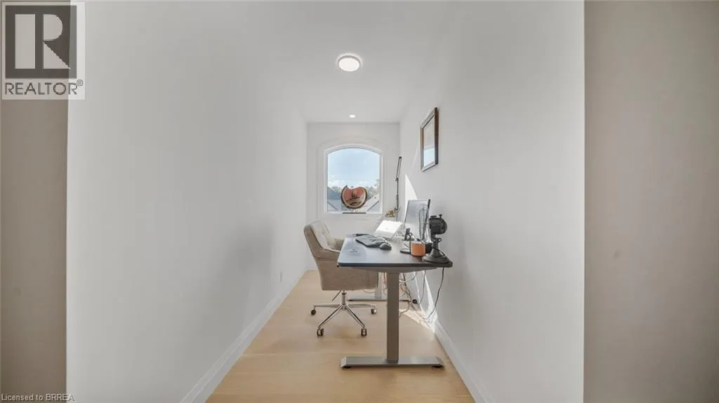 Veterans Memorial & Mount Pleasant Street Welcome to 242 Mount Pleasant Street #17, an exceptional residence in Brantford's sought-after Lions Park Estates. Nestled on a quiet cul-de-sac just steps from Lions Park, Gilkinson Trail, and the Grand River, this home blends sophistication, comfort, and convenience in one breathtaking package. With 4+1 bedrooms, 3.5 bathrooms, and over 4,300 square feet, the property showcases more than $330,000 in upgrades. The main floor impresses with soaring ceilings, wide-plank hardwoods, and an open layout anchored by a dramatic dual-sided fireplace connecting the living room to the covered back patio. Evenings here can be spent fireside, cooled by a built-in fan, and surrounded by nature. The gourmet kitchen is a showpiece with an oversized waterfall island, custom cabinetry, and Fisher & Paykel appliances. Open sightlines to the dining and living areas make it ideal for gatherings, while designer lighting adds elegance throughout. The primary suite offers a true retreat with a tray ceiling, private patio walkout, spa-like ensuite with Riobel fixtures, freestanding soaker tub, glass shower, and double vanity, plus a custom walk-in dressing room. Upstairs are two additional bedrooms, a full bathroom, and a versatile loft perfect for an office, study, or lounge. The fully finished lower level extends the home with an impressive in-law suite including a kitchenette, bedroom, full bathroom, spacious living/dining area, and a stylish bar with rec roomperfect for guests or multigenerational living. Unique features include a dog spa in the mudroom, a dedicated main-floor office (or bedroom), electric vehicle charging stations, and a covered outdoor living space for year-round entertaining. This is more than a home: it's a lifestyle. (id:27476)