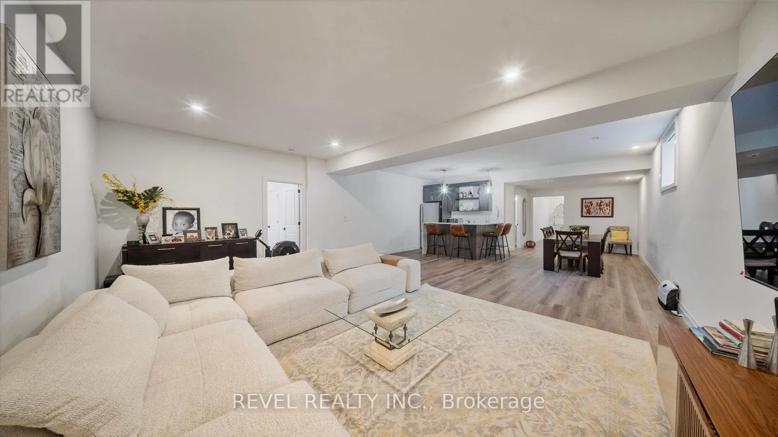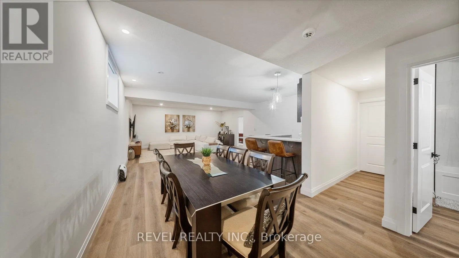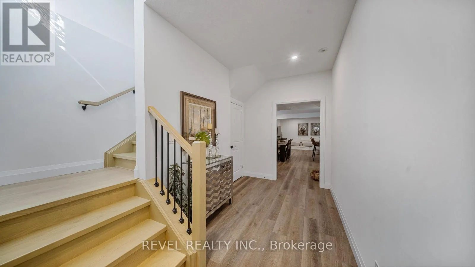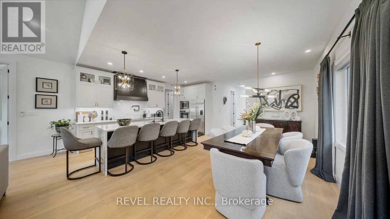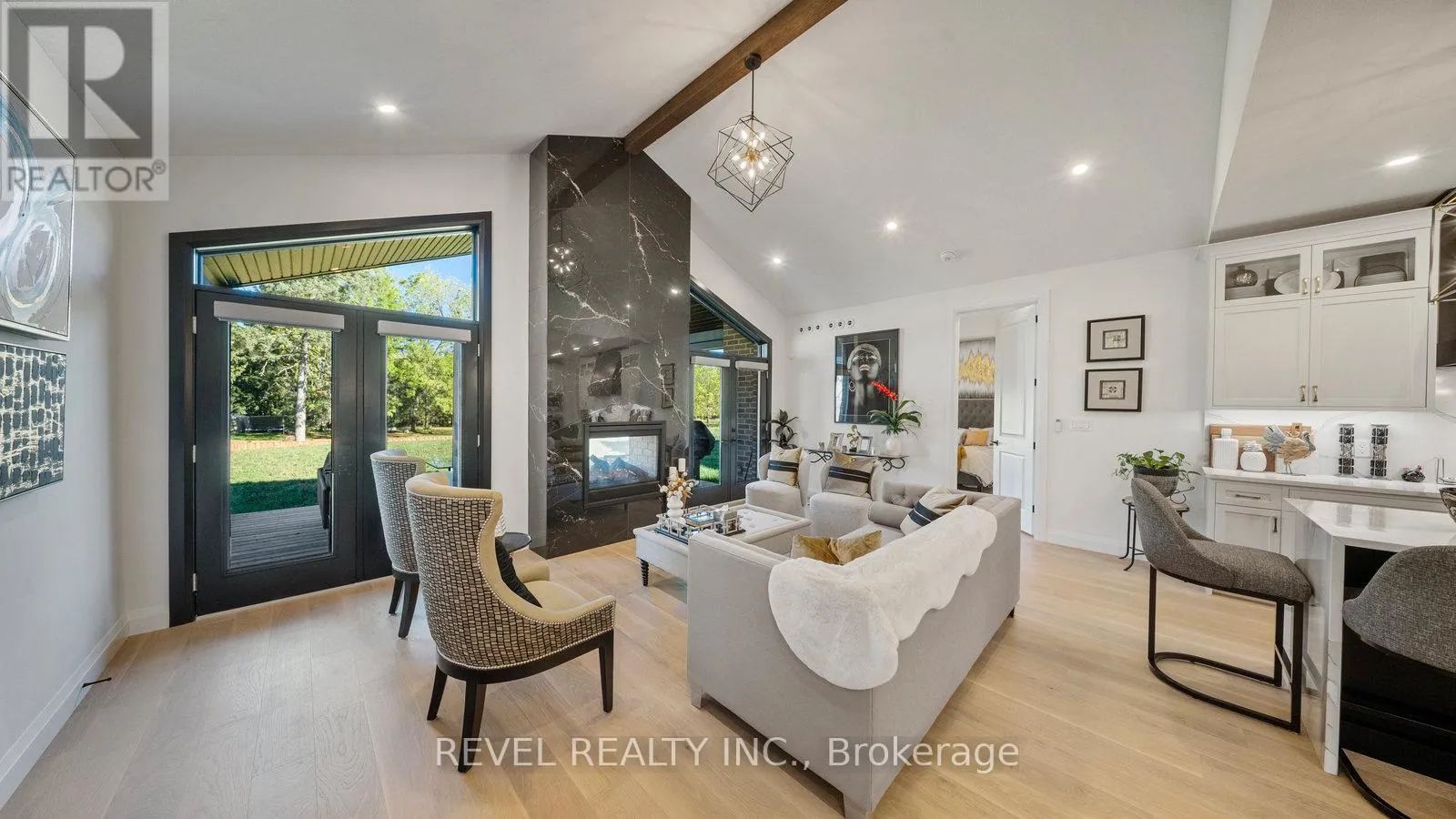Veterans Memorial and Mount Pleasant St Welcome to 242 Mount Pleasant Street #17, an exceptional residence in Brantford's sought-after Lions Park Estates. Nestled on a quiet cul-de-sac just steps from Lions Park, Gilkinson Trail, and the Grand River, this home blends sophistication, comfort, and convenience in one breathtaking package. With 4+1 bedrooms, 3.5 bathrooms, and over 4,300 square feet, the property showcases more than $330,000 in upgrades. The main floor impresses with soaring ceilings, wide-plank hardwoods, and an open layout anchored by a dramatic dual-sided fireplace connecting the living room to the covered back patio. Evenings here can be spent fireside, cooled by a built-in fan, and surrounded by nature. The gourmet kitchen is a showpiece with an oversized waterfall island, custom cabinetry, and Fisher & Paykel appliances. Open sightlines to the dining and living areas make it ideal for gatherings, while designer lighting adds elegance throughout. The primary suite offers a true retreat with a tray ceiling, private patio walkout, spa-like ensuite with Riobel fixtures, freestanding soaker tub, glass shower, and double vanity, plus a custom walk-in dressing room. Upstairs are two additional bedrooms, a full bathroom, and a versatile loft perfect for an office, study, or lounge. The fully finished lower level extends the home with an impressive in-law suite including a kitchenette, bedroom, full bathroom, spacious living/dining area, and a stylish bar with rec room perfect for guests or multigenerational living. Unique features include a dog spa in the mudroom, a dedicated main-floor office (or bedroom), electric vehicle charging stations, and a covered outdoor living space for year-round entertaining. This is more than a home: it's a lifestyle. (id:27476)