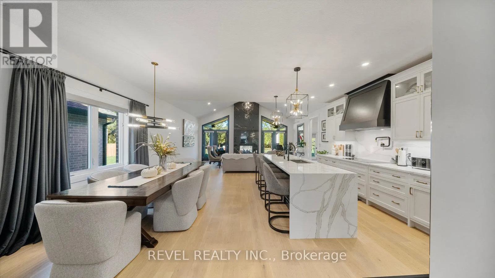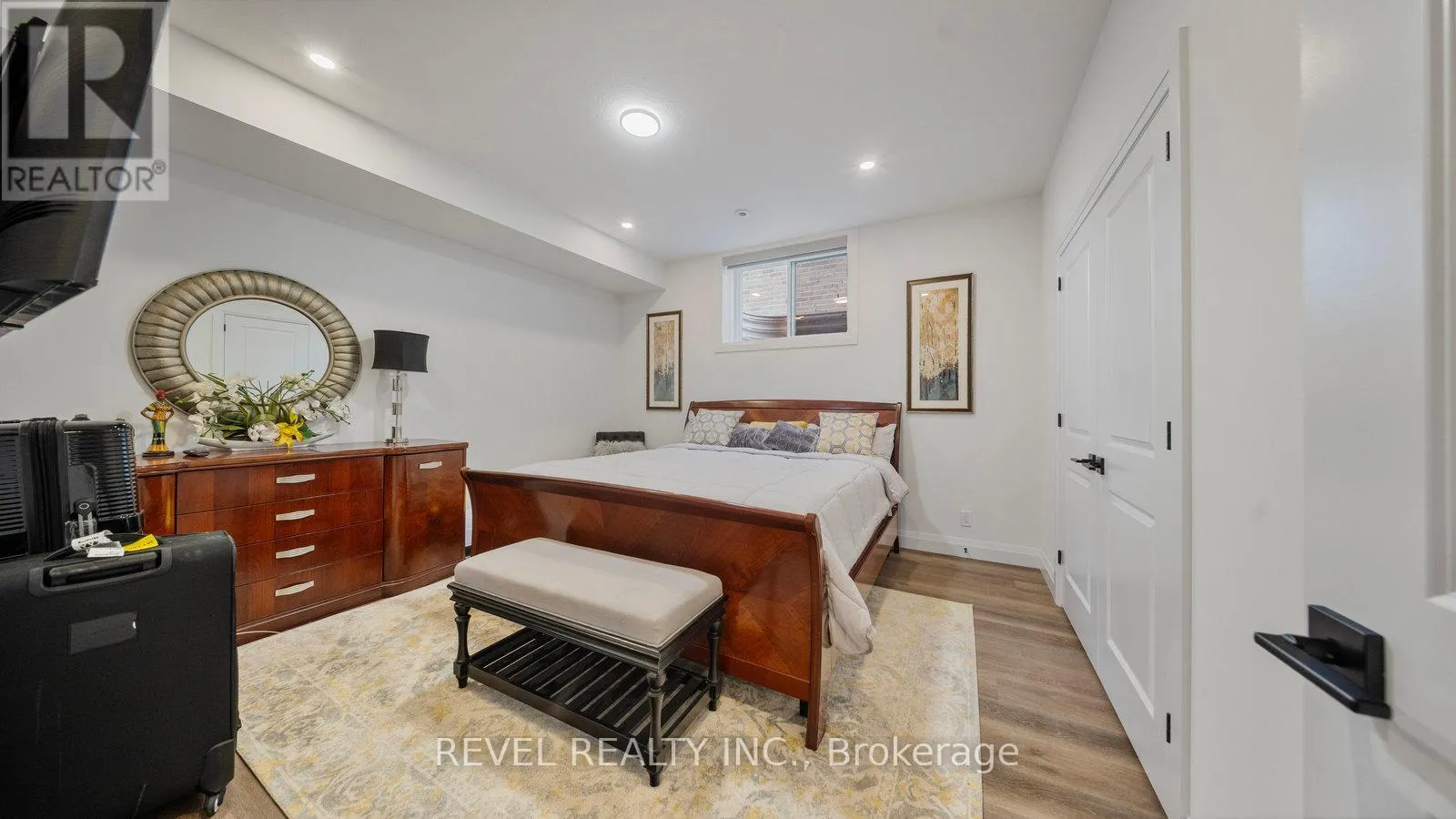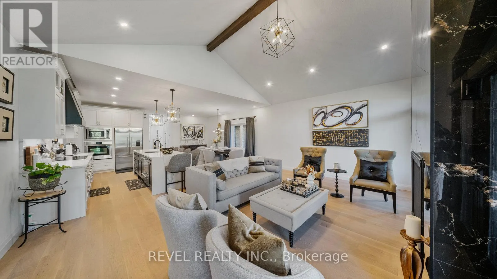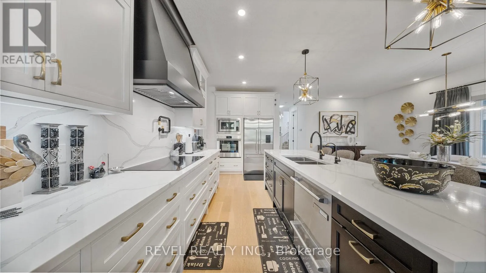 Veterans Memorial and Mount Pleasant St Welcome to 242 Mount Pleasant Street #17, an exceptional residence in Brantford's sought-after Lions Park Estates. Nestled on a quiet cul-de-sac just steps from Lions Park, Gilkinson Trail, and the Grand River, this home blends sophistication, comfort, and convenience in one breathtaking package. With 4+1 bedrooms, 3.5 bathrooms, and over 4,300 square feet, the property showcases more than $330,000 in upgrades. The main floor impresses with soaring ceilings, wide-plank hardwoods, and an open layout anchored by a dramatic dual-sided fireplace connecting the living room to the covered back patio. Evenings here can be spent fireside, cooled by a built-in fan, and surrounded by nature. The gourmet kitchen is a showpiece with an oversized waterfall island, custom cabinetry, and Fisher & Paykel appliances. Open sightlines to the dining and living areas make it ideal for gatherings, while designer lighting adds elegance throughout. The primary suite offers a true retreat with a tray ceiling, private patio walkout, spa-like ensuite with Riobel fixtures, freestanding soaker tub, glass shower, and double vanity, plus a custom walk-in dressing room. Upstairs are two additional bedrooms, a full bathroom, and a versatile loft perfect for an office, study, or lounge. The fully finished lower level extends the home with an impressive in-law suite including a kitchenette, bedroom, full bathroom, spacious living/dining area, and a stylish bar with rec room perfect for guests or multigenerational living. Unique features include a dog spa in the mudroom, a dedicated main-floor office (or bedroom), electric vehicle charging stations, and a covered outdoor living space for year-round entertaining. This is more than a home: it's a lifestyle. (id:27476)