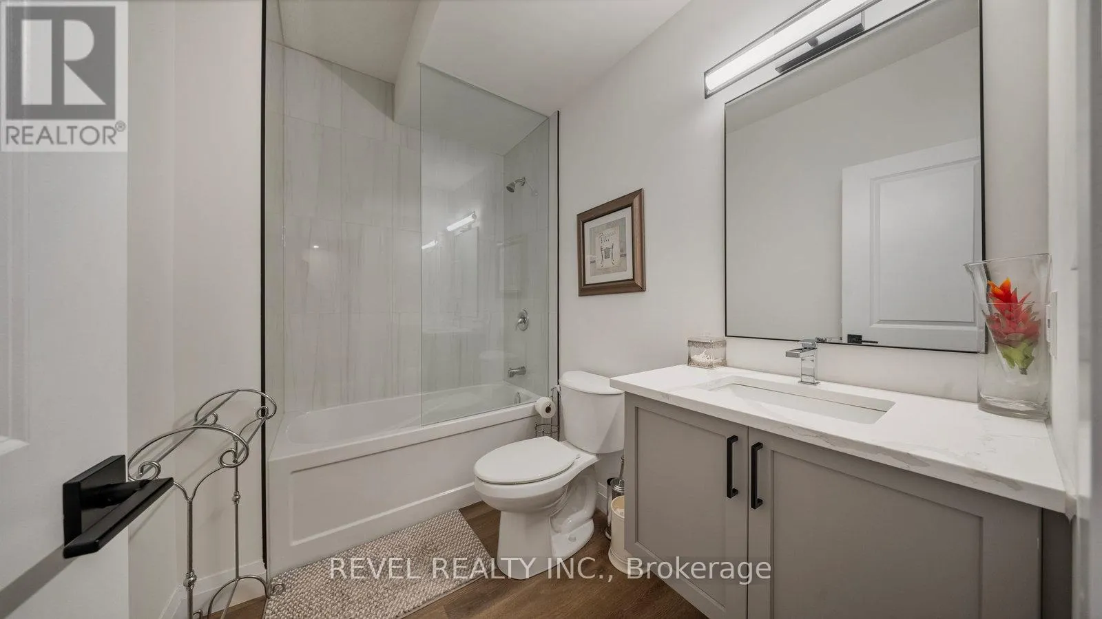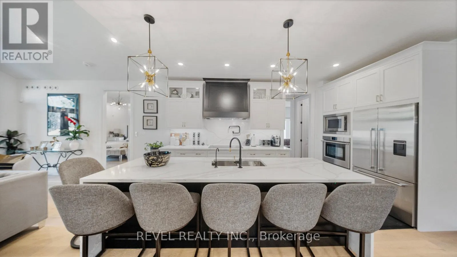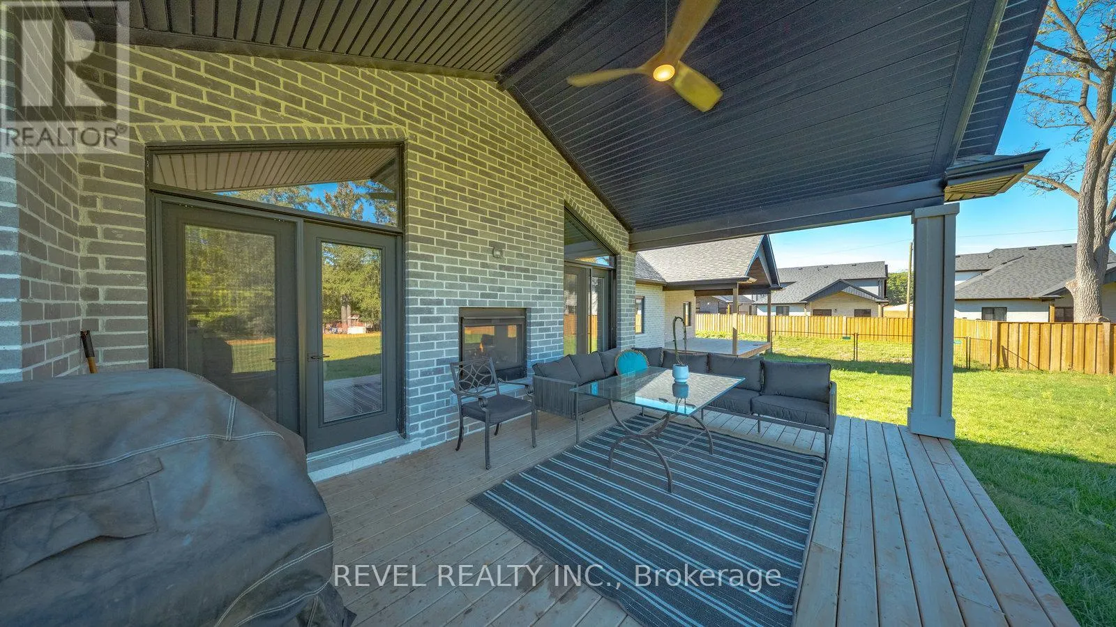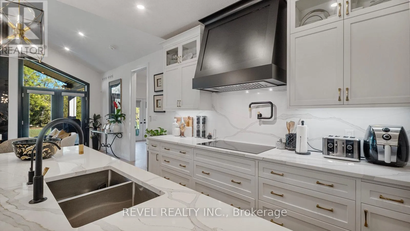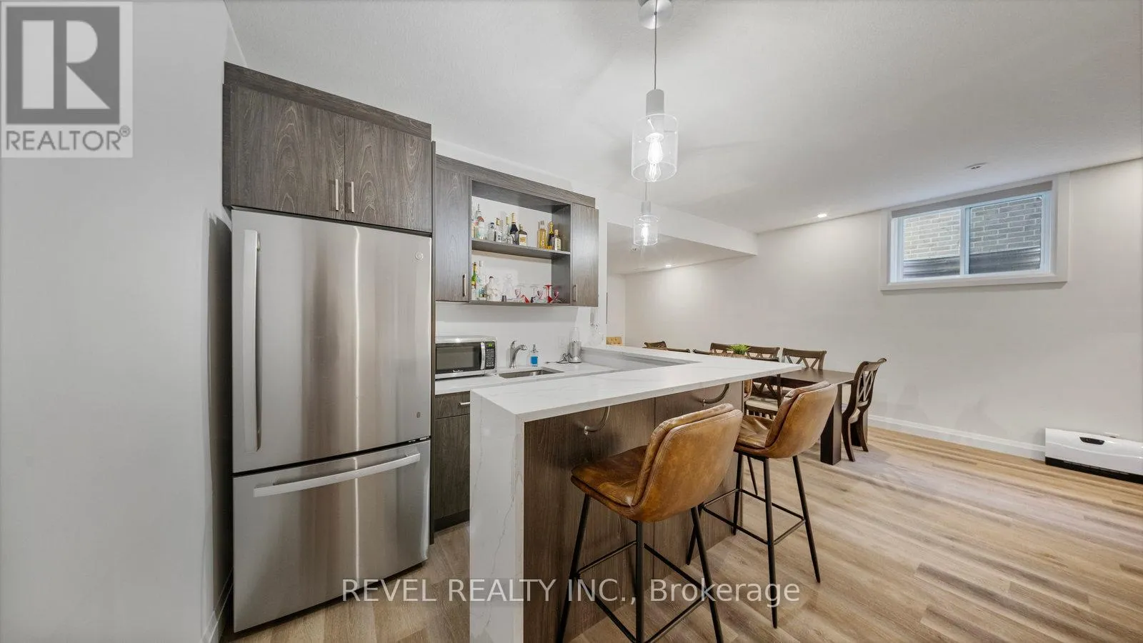 Veterans Memorial and Mount Pleasant St Welcome to 242 Mount Pleasant Street #17, an exceptional residence in Brantford's sought-after Lions Park Estates. Nestled on a quiet cul-de-sac just steps from Lions Park, Gilkinson Trail, and the Grand River, this home blends sophistication, comfort, and convenience in one breathtaking package. With 4+1 bedrooms, 3.5 bathrooms, and over 4,300 square feet, the property showcases more than $330,000 in upgrades. The main floor impresses with soaring ceilings, wide-plank hardwoods, and an open layout anchored by a dramatic dual-sided fireplace connecting the living room to the covered back patio. Evenings here can be spent fireside, cooled by a built-in fan, and surrounded by nature. The gourmet kitchen is a showpiece with an oversized waterfall island, custom cabinetry, and Fisher & Paykel appliances. Open sightlines to the dining and living areas make it ideal for gatherings, while designer lighting adds elegance throughout. The primary suite offers a true retreat with a tray ceiling, private patio walkout, spa-like ensuite with Riobel fixtures, freestanding soaker tub, glass shower, and double vanity, plus a custom walk-in dressing room. Upstairs are two additional bedrooms, a full bathroom, and a versatile loft perfect for an office, study, or lounge. The fully finished lower level extends the home with an impressive in-law suite including a kitchenette, bedroom, full bathroom, spacious living/dining area, and a stylish bar with rec room perfect for guests or multigenerational living. Unique features include a dog spa in the mudroom, a dedicated main-floor office (or bedroom), electric vehicle charging stations, and a covered outdoor living space for year-round entertaining. This is more than a home: it's a lifestyle. (id:27476)