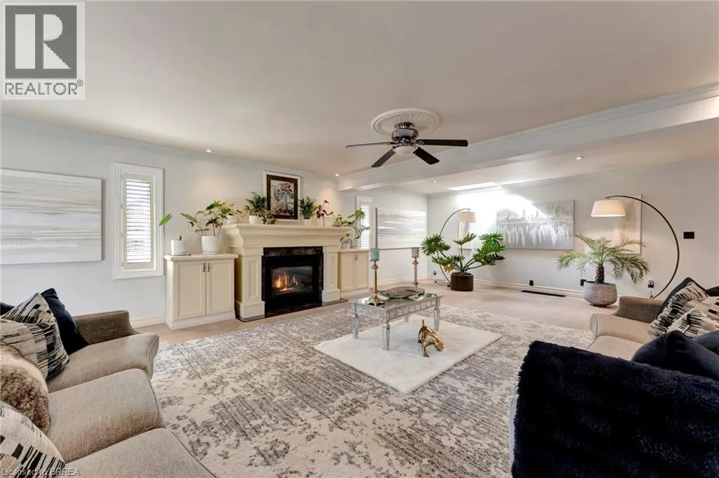 Beckett Drive to Bowen Lane Welcome to 1 Bowen Lane, an exquisite 4-bedroom, 3-bathroom home located on a spacious corner lot in desirable West Brant. With over 3,800 finished sqft of meticulously designed living space, this stunning property offers every comfort and convenience for modern living. The large kitchen features ample counter space and an elegant breakfast nook, offering the perfect setting for spending quality time with family in the morning or hosting large gatherings. The home boasts two living rooms, one with a fireplace, along with a formal dining area, ideal for entertaining or family meals. Upstairs, you'll find 3 spacious bedrooms, including a primary bedroom with a walk-in closet for added convenience and a private ensuite bathroom. The fully finished basement is a highlight, offering a movie theatre, billiard room, exercise room, and office space. With plenty of storage throughout, this home has room for everything you need. Step outside to the large corner lot, offering ample space for outdoor activities. Stamped concrete rear patio, vinyl fencing, interlock double wide driveway and impeccable landscaping, the private backyard is perfect for relaxation or entertaining, and the heated garage provides year-round convenience. Located close to schools, parks, shopping, and dining, this home is a must-see. Schedule your showing today! (id:27476)