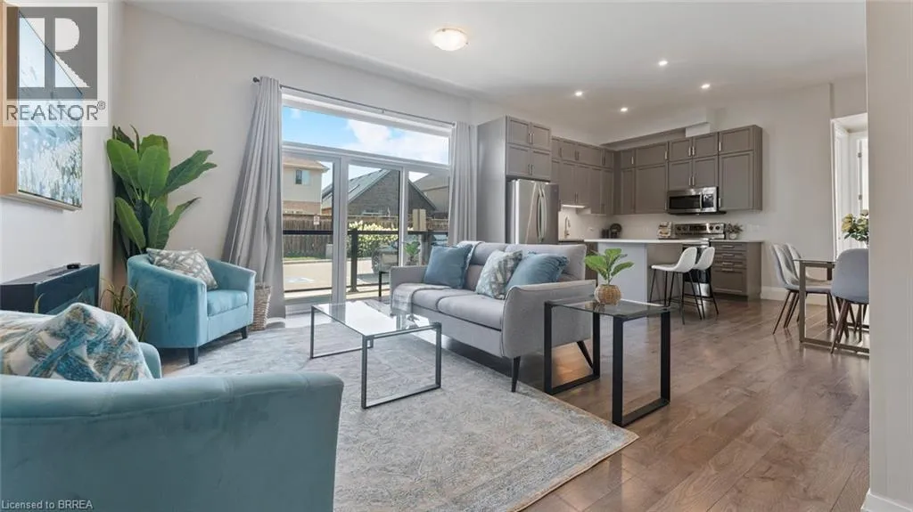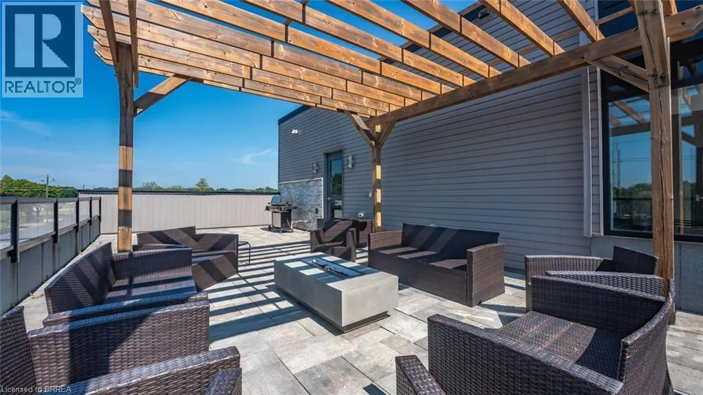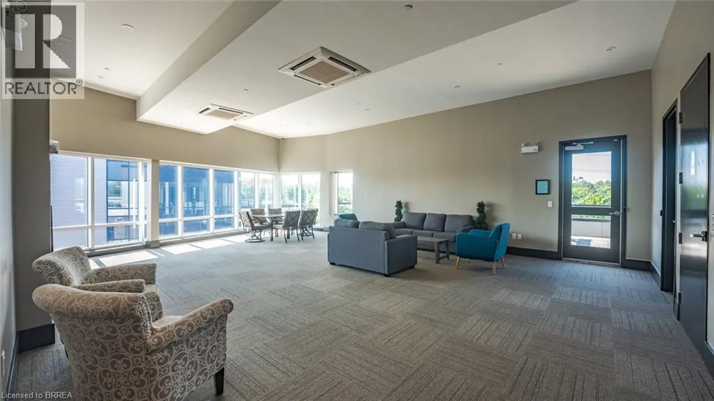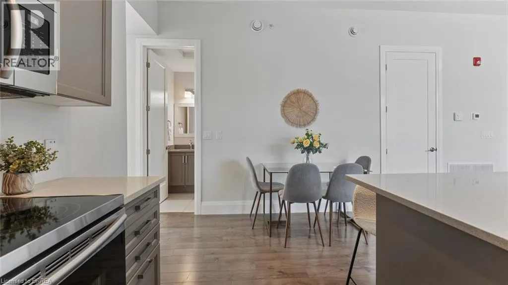 Corner of Banks Street and Morrell Street Experience effortless modern living in this stylish ground-floor 2-bedroom, 1-bathroom suiteâdesigned with both comfort and convenience in mind. Featuring soaring ceilings and a bright, open-concept layout, the spacious living and kitchen area is ideal for entertaining guests or unwinding in style. Sleek contemporary finishes, abundant natural light, and a generous private balcony create an inviting atmosphere throughout. This unit comes complete with in-suite laundry, and two dedicated parking spacesâa rare and valuable feature. Enjoy access to outstanding shared amenities, including the expansive BBQ patio âperfect for outdoor dining and social gatherings. Ideally located near the Grand River, Rotary Bike Park, Wilkes Dam, Brantford General Hospital, and a range of popular restaurants, this home places everything you need right at your doorstep. (id:27476)