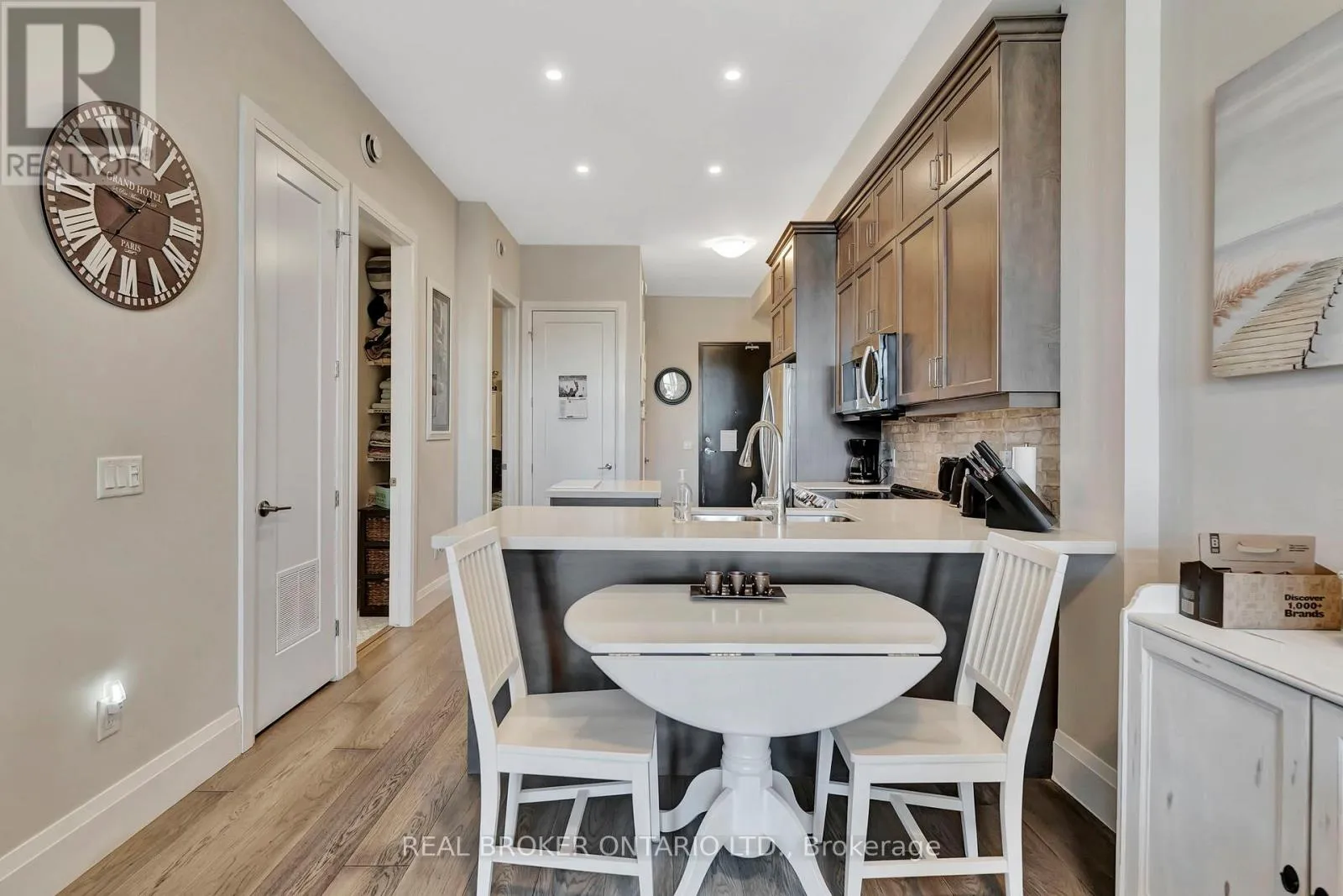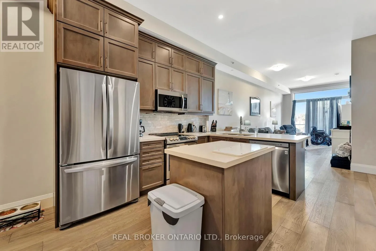 Corner of Holme St & Morrell St. Experience effortless modern living in this stunning ground-floor suite featuring 2 bedrooms and 2 bathrooms. Designed with both comfort and style in mind, this contemporary home offers soaring ceilings, an open-concept layout, and a sun-filled living space perfect for entertaining or unwinding. The sleek kitchen flows seamlessly into the bright living area and out to your spacious private balcony, ideal for morning coffee or evening relaxation. Enjoy the convenience of in-suite laundry, all appliances included, and two dedicated parking spaces, an incredible bonus rarely found. Residents also have access to exceptional amenities, including two expansive BBQ patios perfect for gatherings and outdoor dining. Perfectly located near the Grand River, Rotary Bike Park, Wilkes Dam, Brantford General Hospital, and an array of restaurants and shops, this home offers the perfect balance of tranquility and accessibility. Simply move in and start enjoying the lifestyle you deserve. (id:27476)
