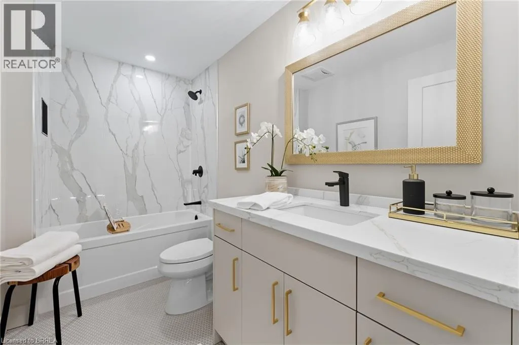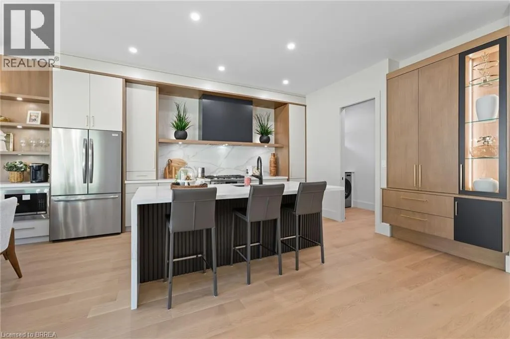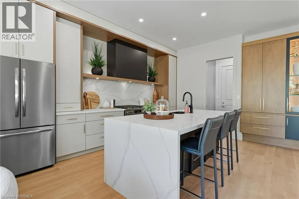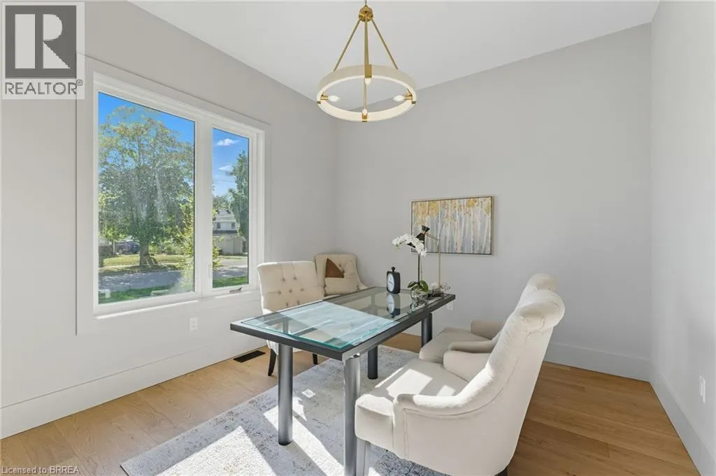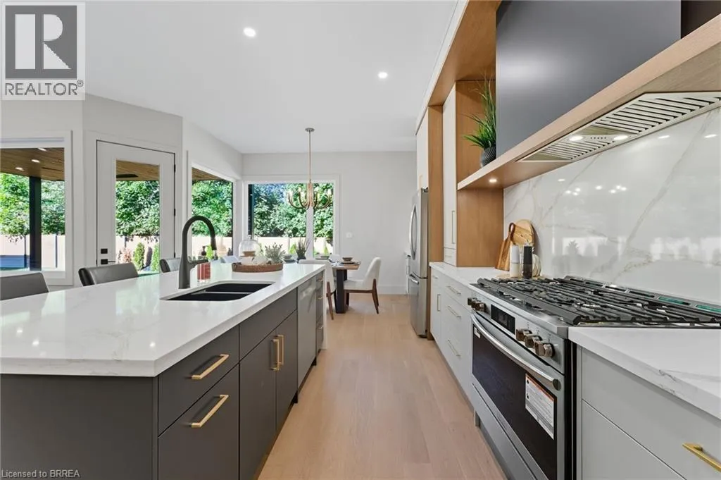 Ava Road to Parkside Drive STUNNING NEW MODEL HOME â 141 PARKSIDE DRIVE! Welcome to this custom-built Schuit Home, where quality craftsmanship meets modern luxury with over 3000 sq. ft. of total finished living space. From the moment you arrive, youâll be captivated by the architecturally impressive exterior, thoughtful design, and upscale finishes throughout. Step inside and be wowed by the 10 ft ceilings, elegant light fixtures, and large windows that fill the home with natural light. The open-concept great room showcases a custom gas fireplace and designer details that set the tone for the entire space. The chefâs kitchen is a true showstopperâfeaturing high-end custom cabinetry, a large island with waterfall quartz counters, a pantry, and a unique coffee bar. Every detail has been carefully planned to create the perfect space for both everyday living and entertaining. The dining area is illuminated by stunning lighting and flows seamlessly onto a 19âx11â covered patio, offering the ultimate indoor-outdoor lifestyle. The primary bedroom suite features elegant custom built-in cabinetry and a luxurious ensuite complete with a double vanity and rainfall shower. A second bedroom and a beautiful 3-piece bathroom complete the main level. The fully finished lower level adds even more space, including a cozy rec room, two additional large bedrooms, a 4-piece bathroom, and ample storage in the mechanical room. This home comes fully landscaped and fenced along the back, offering move-in-ready luxury inside and out. Featuring a 21.4' x 20.6' double car garage with an upgraded insulated door and glass inserts, allowing for an abundance of natural light. Ideally located close to the Brantford Golf & Country club, SC Johnson trail, and the Grand River, this is your opportunity to own a truly remarkable home built with care, detail, and sophistication in your dream location. Prepare to be blown awayâbook your private showing today! (id:27476)