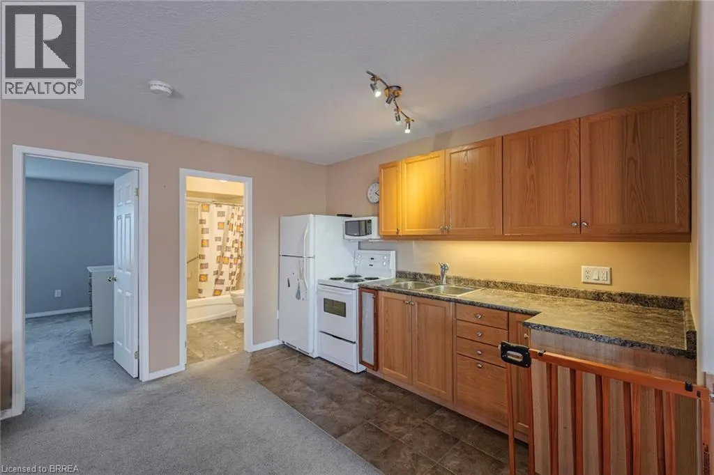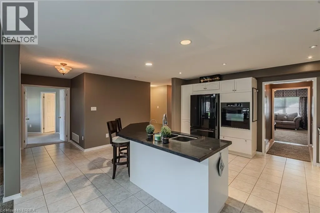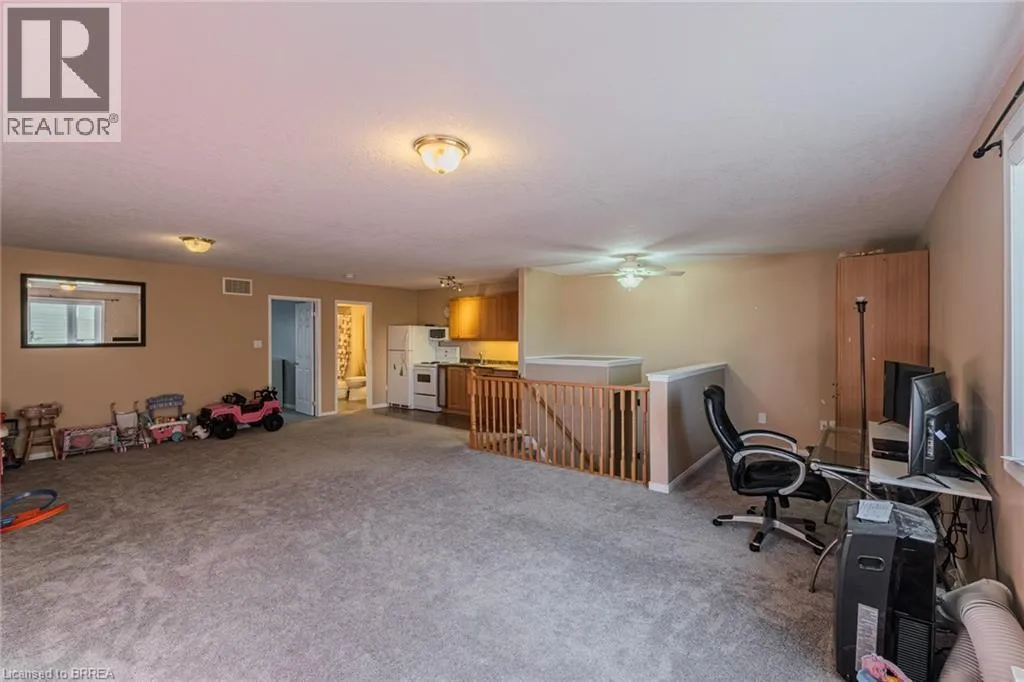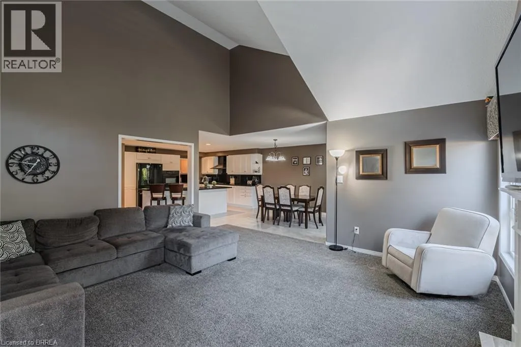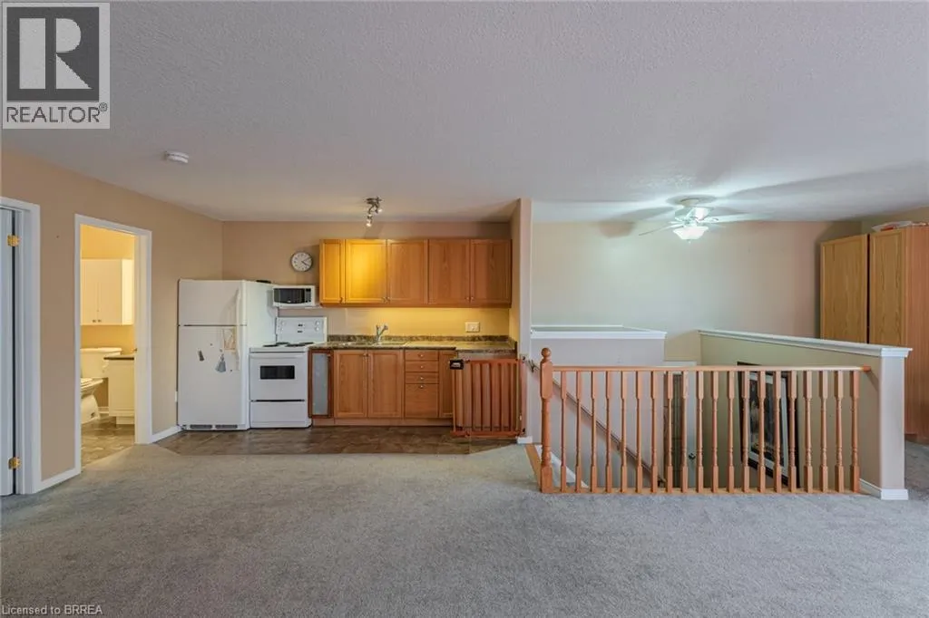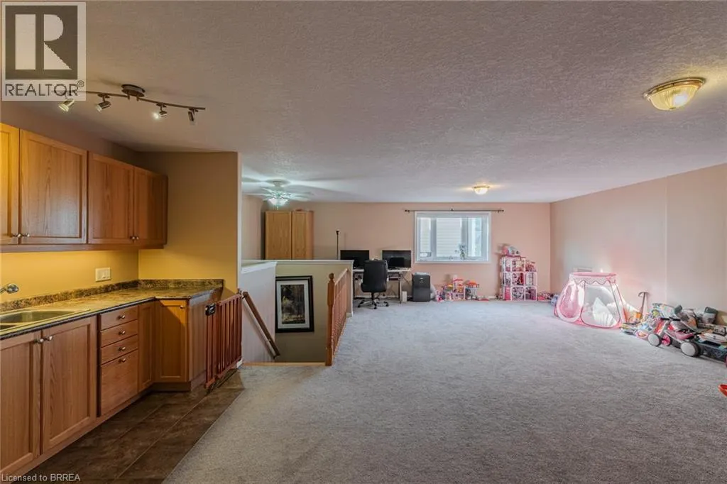 Cross Street: Duncan Ave Welcome to this beautiful and spacious 3-bedroom + den, 3.5-bathroom bungaloft located in the highly sought-after West Brant community. As you step inside, youâll be greeted by a large, inviting foyer that opens into a bright and airy living room â the perfect place to welcome family and guests. The main level features a stunning open-concept layout includes a butlerâs pantry, a modern kitchen with plenty of cabinetry, a spacious dining area, and a family room with soaring high ceilings that create an impressive sense of space and comfort. From here, walk out to the fully fenced backyard, ideal for relaxing or entertaining. The primary bedroom with a walk-in closet and a 5-piece ensuite bathroom, a second bedroom, a 4-piece bathroom, and a convenient main floor laundry room complete this level . Upstairs, the loft area offers a private retreat with one bedroom, a large living room, a kitchen, and a 4-piece bathroom â perfect for an in-law suite or guests. The finished basement provides even more living space, featuring a cozy TV area with a fireplace for movie nights, a recreation area, a gym space, a 2-piece powder room, a large den, and ample storage. Additional features include a 2-car garage and a prime location in a family-friendly neighbourhood, close to excellent schools, shopping, scenic trails, and many other amenities. This exceptional home combines comfort, style, and functionality â a perfect place to call home in one of Brantfordâs most desirable areas. (id:27476)