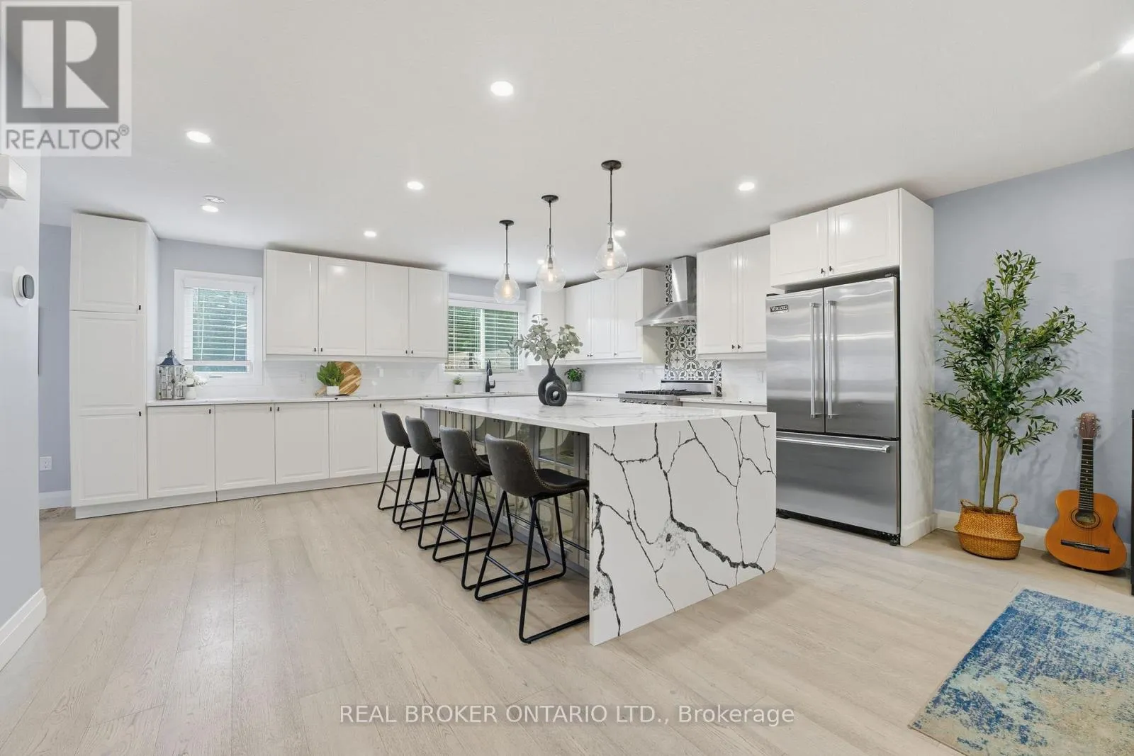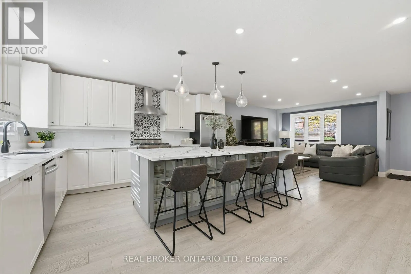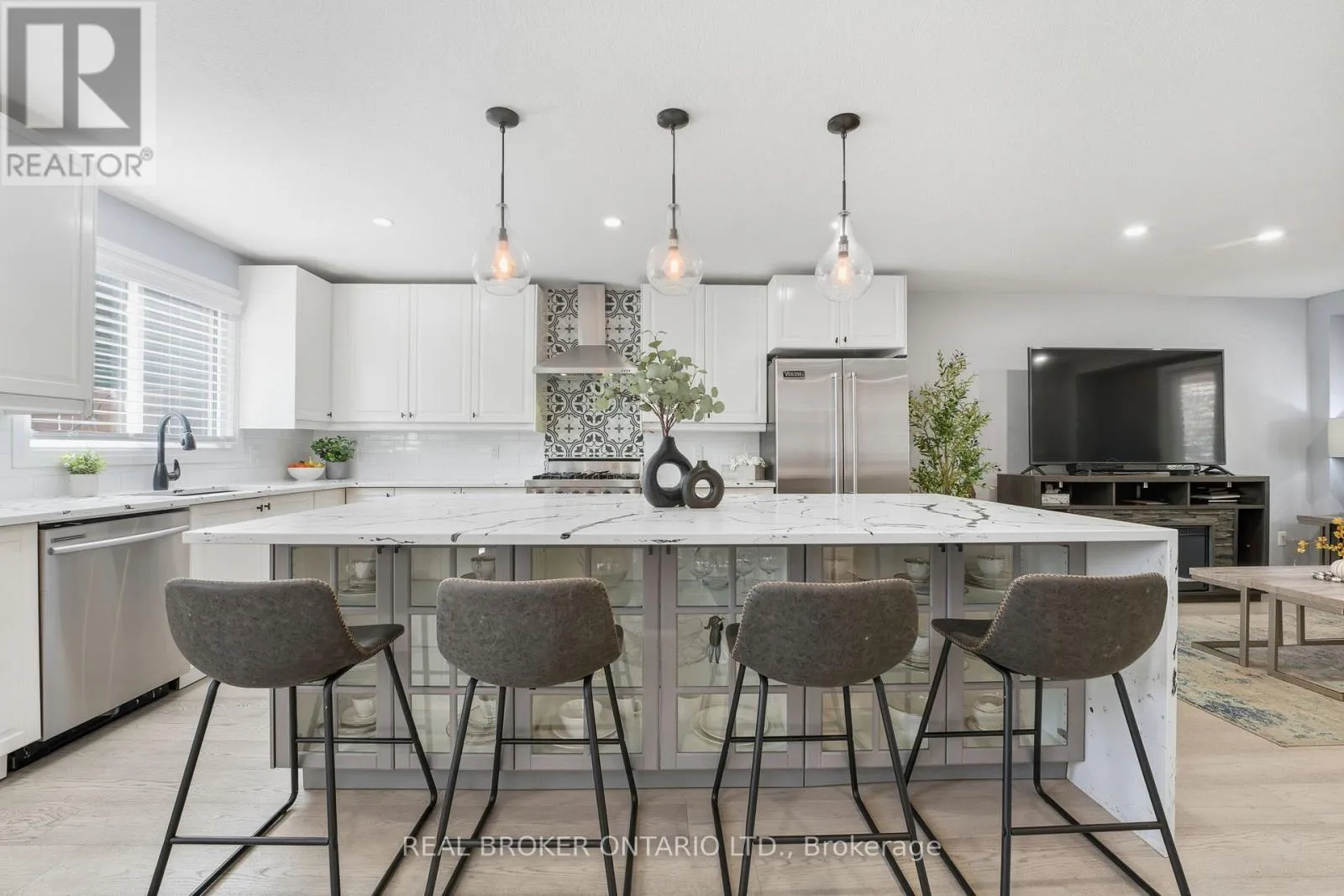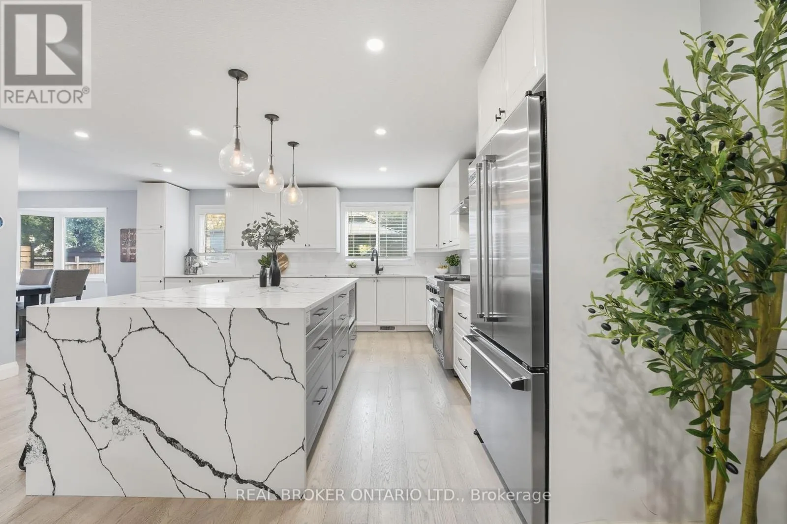 Cross Streets: Beckett Drive. ** Directions: Mt Pleasant St to Beckett Dr to Winter Way. Welcome home to 33 Winter Way, Brantford. This beautifully finished two-storey home is completely move-in ready and offers plenty of space for the growing family all in a quiet, mature neighbourhood close to every major amenity. Step inside to a bright and modern open-concept design where contemporary style meets comfortable family living. The spacious entryway opens to a large entertainers kitchen featuring ample cupboard space, tiled backsplash, stainless steel appliances including a Viking gas range and oven, and a large island with seating for four plus additional built-in storage underneath. Adjacent to the kitchen, the inviting living room is filled with natural light and highlighted by recessed pot lighting throughout. A spacious dining area connects seamlessly to the kitchen and main-floor family room, complete with a beautiful bay window. The family room offers the perfect place to gather and unwind, with sliding patio doors that open to your private backyard retreat. A convenient two-piece powder room completes the main level. Upstairs, youll find three generous bedrooms including a large primary suite with ensuite, along with a beautifully updated four-piece bathroom. Need more space? The fully finished lower level includes a bright recreation room, an additional bedroom that can easily serve as a home office or gym, a three-piece bathroom, and a finished laundry room. Step outside to enjoy a large wooden deck complete with gazebo perfect for outdoor dining, lounging, and entertaining. Pride of ownership is evident throughout this meticulously maintained home. Move-in ready and full of thoughtful upgrades, 33 Winter Way is the perfect opportunity for families looking for more space in a fantastic Brantford neighbourhood. (id:27476)