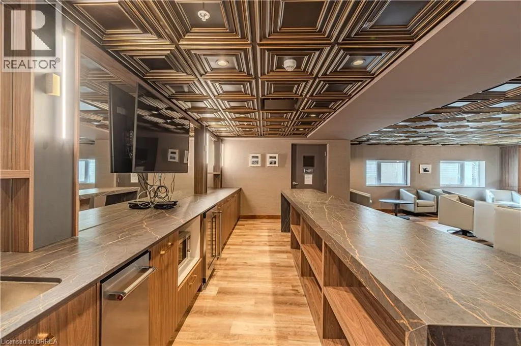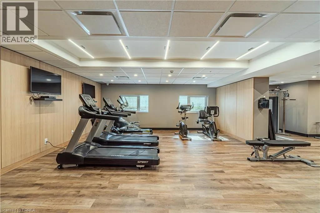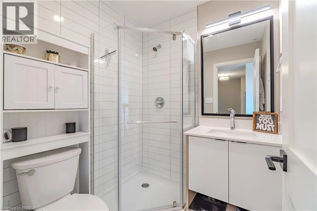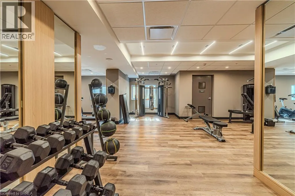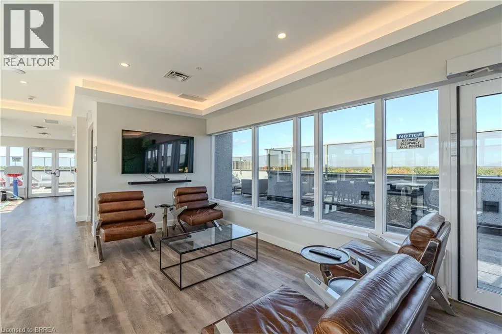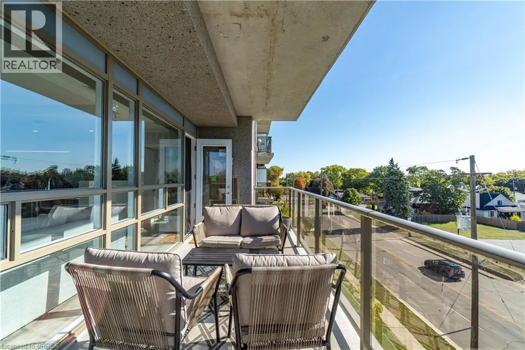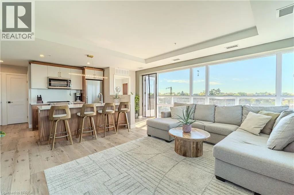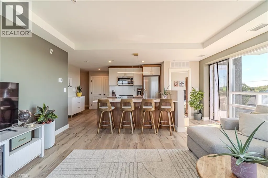 fairview to wayne to norman From the moment you arrive, youâll feel like youâve stepped into a boutique hotel â luxurious, stylish, and far from ordinary. Paying homage to the historic Brantford Flying Club, The Landing blends aviation-inspired design with modern elegance and top-tier craftsmanship. This premium southwest corner unit on the 4th floor offers 900 sq ft of refined indoor living with floor-to-ceiling windows for an abundance of natural light and sweeping views. Step outside to enjoy 200 sq ft of private outdoor space on a covered, south-facing wraparound balcony â ideal for entertaining or relaxing. Inside, the 2-bedroom, 2-bathroom layout features 9â ceilings and a bright, open-concept design. The upgraded âSight Seerâ Interior Design Package includes: Walnut veneer & white kitchen cabinetry Premium Silestone solid surface countertops with matching backsplash Rich Luxury Vinyl Plank flooring throughout Shaker & slab-style cabinetry, designer lighting Chrome kitchen & bath fixtures,modern hardware Hexagonal bathroom tiles, cloud white trims, upgraded vanities Ensuite with tub & guest bathroom with walk-in glass shower Premium Appliance Package: Stainless steel fridge, convection range, microwave hood fan, dishwasher, and in-suite stacked washer & dryer 2 PARKING SPOTS, and a large storage locker are included. Building amenities: Rooftop patio, private speakeasy, fitness studio, and library. Location! Location! Location! Located at 34 Norman Street, this north-end gem provides immediate access to Highway 403 and King George Road, putting you minutes from top-tier restaurants, retail, schools, and all of Brantfordâs best amenities. This is not just a condo â itâs a lifestyle upgrade. Donât miss your chance to own one of the most desirable and well-appointed units in Brantfordâs most exciting and thoughtfully designed new development. This isnât just a condo â itâs a lifestyle upgrade. (id:27476)