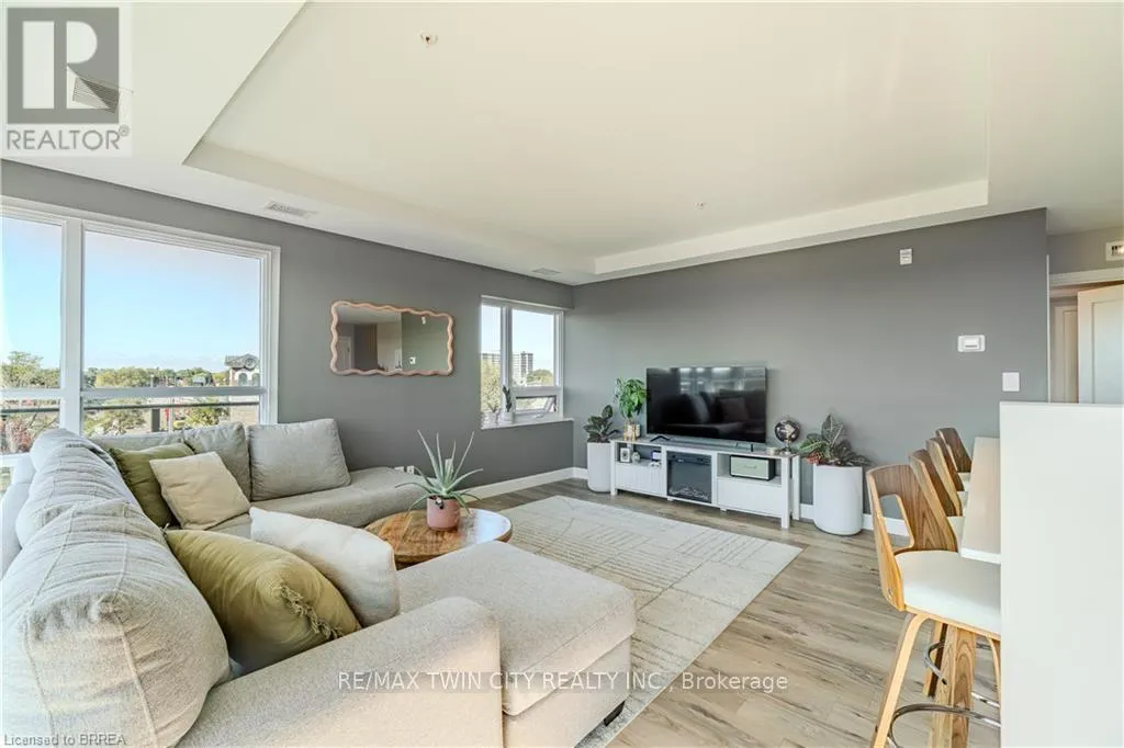 Cross Streets: fairview. ** Directions: Fairview to Wayne to Norman. From the moment you arrive, youll feel like youve stepped into a boutique hotel luxurious, stylish, and far from ordinary. Paying homage to the historic Brantford Flying Club, The Landing blends aviation-inspired design with modern elegance and top-tier craftsmanship. This premium southwest corner unit on the 4th floor offers 900 sq ft of refined indoor living with floor-to-ceiling windows for an abundance of natural light and sweeping views. Step outside to enjoy 200 sq ft of private outdoor space on a covered, south-facing wraparound balcony ideal for entertaining or relaxing. Inside, the 2-bedroom, 2-bathroom layout features 9 ceilings and a bright, open-concept design. The upgraded Sight Seer Interior Design Package includes: Walnut veneer & white kitchen cabinetry Premium Silestone solid surface countertops with matching backsplash Rich Luxury Vinyl Plank flooring throughout Shaker & slab-style cabinetry, designer lighting Chrome kitchen & bath fixtures,modern hardware Hexagonal bathroom tiles, cloud white trims, upgraded vanities Ensuite with tub & guest bathroom with walk-in glass shower Premium Appliance Package: Stainless steel fridge, convection range, microwave hood fan, dishwasher, and in-suite stacked washer & dryer. A Rare find with TWO PARKING SPOTS and a large storage locker are included, Building amenities: Rooftop patio, private speakeasy, fitness studio, and library. Location! Location! Location! Located at 34 Norman Street, this north-end gem provides immediate access to Highway 403 and King George Road, putting you minutes from top-tier restaurants, retail, schools, and all of Brantfords best amenities. This is not just a condo its a lifestyle upgrade. Dont miss your chance to own one of the most desirable and well-appointed units in Brantfords most exciting and thoughtfully designed new development. This isnt just a condo its a lifestyle upgrade. (id:27476)