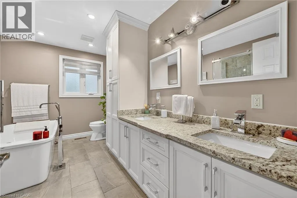 403 TO GARDEN AVE (NORTH) TO LYNDEN ROAD (EAST) This exceptional property offers the perfect blend of residential comfort and commercial functionality â ideal for contractors, mechanics, auto body professionals, or landscapers. Situated just minutes from Ancaster and Brantford, this fully finished, highly upgraded 4-level backsplit includes a separate in-law setup and a fully operational mechanics shop complete with spray booth and vehicle lift. Inside the home, you'll find Canadian-made Bruce hardwood flooring, granite countertops, a custom kitchen with built-in wall oven and Stainless steel appliances, and two gas fireplaces for added comfort. The brick and stucco exterior adds to the home's curb appeal, while large rooms and abundant natural light create a warm, welcoming atmosphere. Additional upgrades include: newer windows, UV light & water softener system, whole-home generator. Outside, the property offers parking for 10+ vehicles, making it ideal for those needing space for equipment, work vehicles, or client visits. The commercial-grade shop is a turn-key auto body repair facility â a rare opportunity to live and work from the same location. This type of property comes up once in a lifetime! (id:27476)