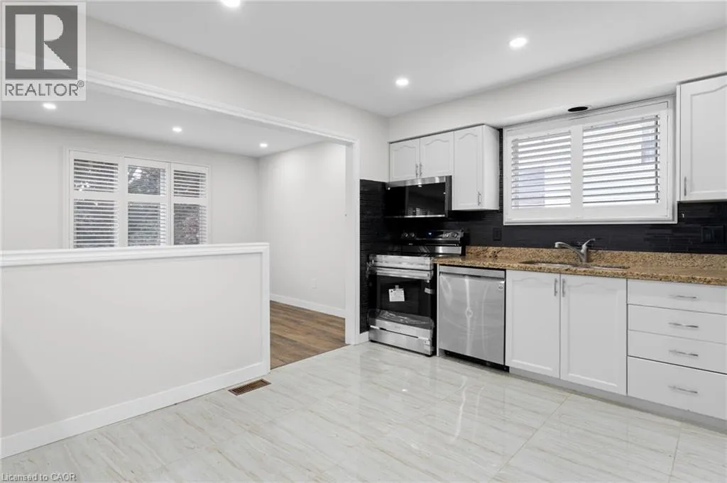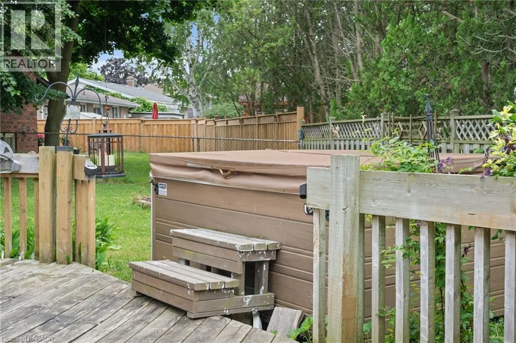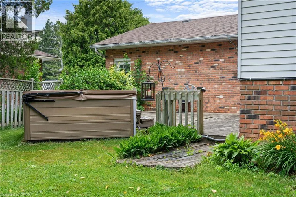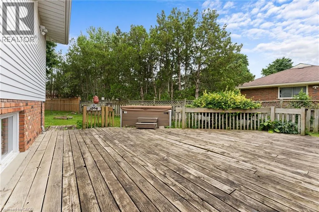 Paris Road to Tollgate Rd This upgraded & freshly painted 3+2 bed, 3 full bath home offers nearly 2,500 sqft of finished living space. Enjoy a triple-wide interlock driveway, double garage, and a fully fenced yard with fire pit and hot tub. Inside features pot lights throughout, open-concept living, California shutters, formal dining, and newer appliances. The primary bedroom includes a full ensuite, and updated second full bathroom on main level . Lower level has a cozy fireplace, 2 bedrooms, full bath, laundry, and storage. Steps to the Hardy Trail, seconds to Hwy 403, close to all amenities, on bus route, and in the school district (James Hillier PS). Roof (2018), Furnace/AC (2014). Move-in ready â book your showing today! Hot Tub As is. (id:27476)
