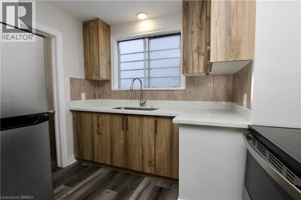 Cross Street: King George Rd Commercial Lease Opportunity in Brantford! Excellent opportunity to lease a versatile commercial bungalow conveniently located close to major amenities, public transit, and highway access. This property offers flexibility for a variety of business uses in a highly accessible Brantford location. The space features 2 rooms/offices, a large open area ideal for a reception or workspace, and a spacious eat-in kitchen that can serve as a staff lunchroom. The full basement provides ample storage and includes laundry facilities for added convenience. With 2 dedicated parking spaces and excellent visibility, this property is perfect for professionals, small business owners, or service-based operations seeking a well-maintained, move-in-ready space. Available immediately â book your private viewing today! (id:27476)