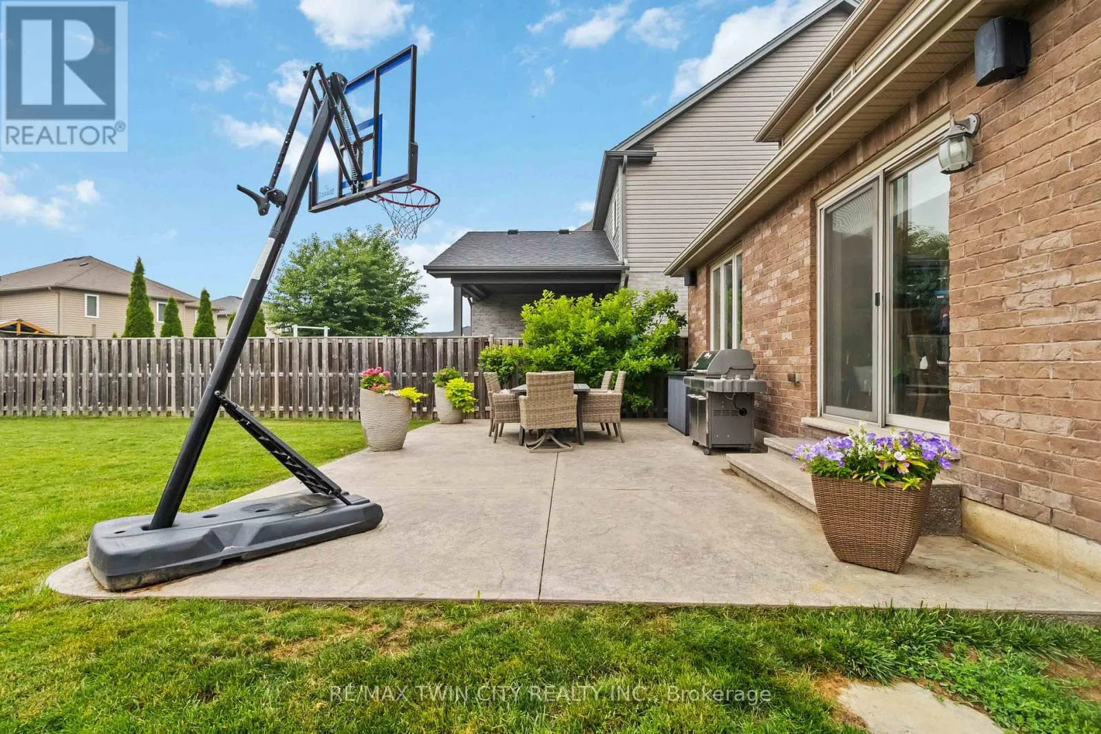 Cross Streets: McGuiness Drive. ** Directions: From Colborne Street W, Take Shellards Lane (go past Assumption College). Turn right onto McGuiness Drive and right onto Yarington Drive. Welcome to 15 Yarington Drive. This beautifully maintained two-storey Dubecki-built home is located in the highly desirable, family-friendly community of West Brant. Perfectly positioned within walking distance to the upcoming Southwest Community Park-featuring a new library, community centre, splash pad, playground, and sports fields-this home is truly move-in ready for your family. The main level offers an inviting open-concept layout, ideal for everyday living and entertaining. The kitchen features ceramic flooring, maple cabinetry, and granite countertops, and opens directly to the dining area with easy walkout access to the backyard-perfect for summer barbecues. The spacious living room offers bright windows and a cozy space for family time or quiet reading. Convenient main floor laundry/mudroom and a 2-piece bathroom with granite vanity complete this level. Upstairs, the primary suite impresses with vaulted ceilings, a walk-in closet, and a luxurious 4-piece ensuite showcasing a glass shower and a jetted ceramic tub. Two additional generous bedrooms and another 4-piece tiled bath complete the upper level. You'll also appreciate the California shutters throughout and upgraded underlay beneath the carpeting for added comfort and quality. The finished lower level is the ultimate family hangout zone-currently set up as a home theatre, complete with resilient channel insulation to minimize sound transfer. A versatile fourth bedroom provides flexibility for a guest room, home office, or playroom. Outside, the fully fenced backyard offers plenty of room for kids or pets to play, along with a large stamped concrete patio (approx. 17' x 26')-with one section prepped for a hot tub. There is additional access to the garage from the backyard. This home offers comfort, quality, and a fantastic location-ready for your next chapter in West Brant living. (id:27476)