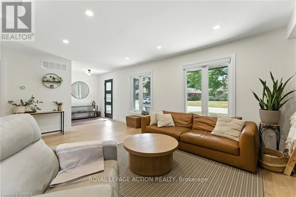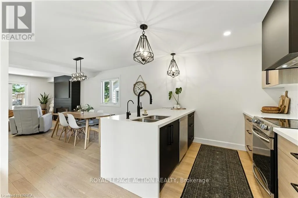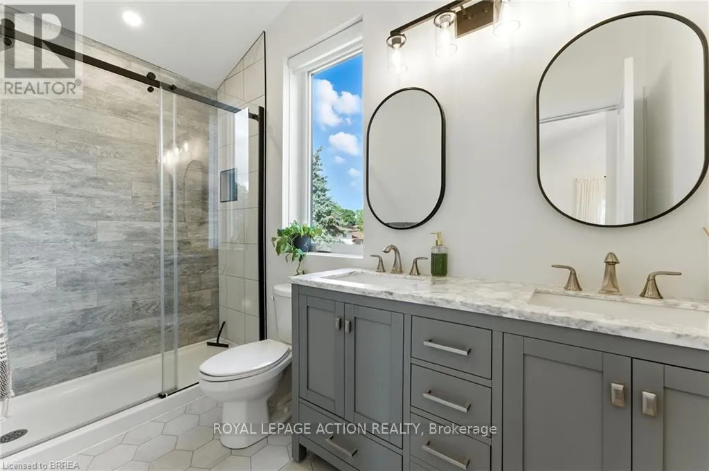 Cross Streets: St. George Street. ** Directions: Tollgate Road to St. George Street to Barnes Avenue. SHOWSTOPPING TWO-STOREY IN DESIRABLE HENDERSON! Welcome to this stunning 4-bedroom, 2.5-bathroom home offering over 1,728 sq. ft. of living space nestled in one of Brantford's most sought-after neighbourhoods. With exceptional curb appeal and a spacious interior this home is ideal for families and entertainers alike! Step inside to a warm and inviting main floor featuring a cozy living room and a formal dining room, perfect for hosting gatherings. The modern, open-concept kitchen is designed to impress with stainless steel appliances. A 2-piece powder room and a convenient laundry room with garage access complete the main floor. Upstairs, retreat to your spacious primary bedroom with vaulted ceilings, a private balcony, large walk-in closet, and a luxurious 4-piece ensuite. Three additional generous sized bedrooms and a 4-piece main bathroom provide plenty of room for family or guests. The finished basement with a large rec room, perfect for movie nights or games. Plus an additional office space and plenty of storage in the furnace room. Step outside to enjoy the expansive lot, ideal for summer evenings, gardening, or entertaining in your private backyard. An attached 1.5 car garage adds everyday convenience with ample parking. Located just minutes from schools, parks, trails, and amenities, this exceptional home truly offers it all. (id:27476)
