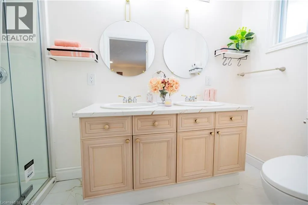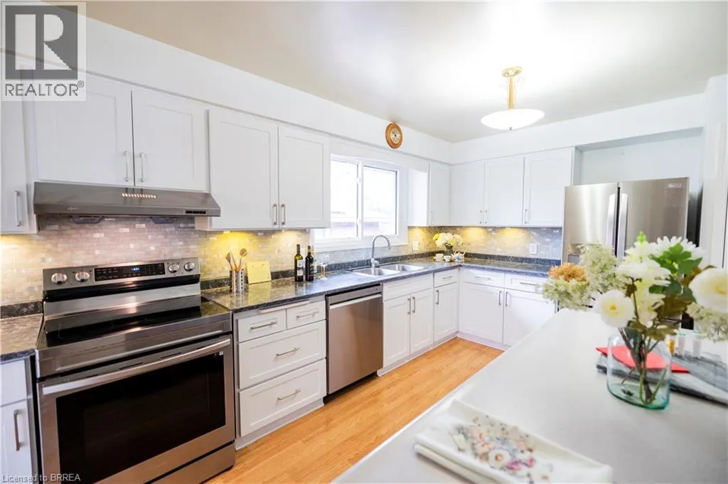 Powerline and Old Farm Rd Welcome home to this beautifully maintained custom raised ranch, nestled on an oversized, professionally landscaped lot in one of Brantford's most desirable neighbourhoods. With 5 spacious bedrooms and 3.5 bathrooms, including two private ensuites, this home offers exceptional comfort, privacy, and versatility for families of all sizes. Inside, you'll find two generous living roomsâideal for relaxing, entertaining, or creating dedicated spaces for work and play. Whether you're hosting family gatherings or enjoying a quiet evening at home, there's room for everyone. Perfectly located just minutes from excellent schools, major shopping centres, and with quick access to Hwy 403 and Hwy 24, convenience is at your doorstep. A long list of recent updates provides peace of mind, making this home move-in ready with timeless appeal. Donât miss this rare opportunity to own a spacious, character-filled bungalow in a prime location. (id:27476)