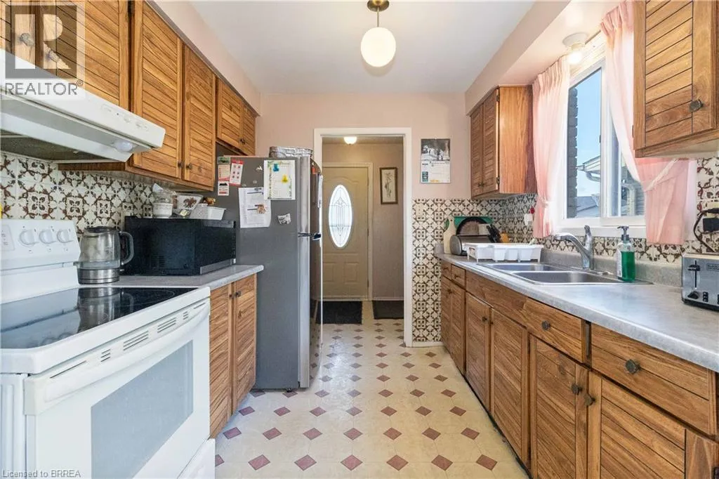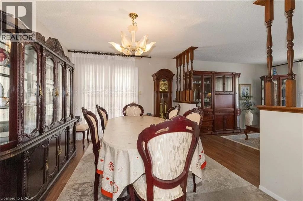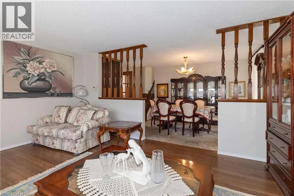 Powerline Road to Ivanhoe Rd - turn left on Westchester Way which turns into Sigurd Jensen Crt - keep driving straight - the driveway for 11 will greet you! Situated on a premium lot at the end of a quiet court in Brantford's north end with close proximity to schools, highways, shopping and a long list of amenities, 11 Sigurd Jensen Court is a spacious 4 level back split featuring 2 kitchens, 2 full bathrooms, 4 bedrooms (and space for more) and an abundance of space representing a long list of possibilities. There is a separate entrance to the basement leading to the potential to make this a multi family home, one could easily build an in-law/granny suite or even a separate dwelling to realize income potential. This home was built in 1977 and has been well loved by the same family for decades. The house features an attached garage, a large welcoming front porch and boasts a large pie shaped lot with an abundance of space - a lot larger than it appears at first glance! (id:27476)