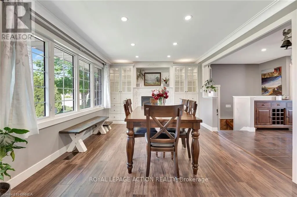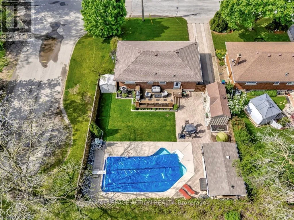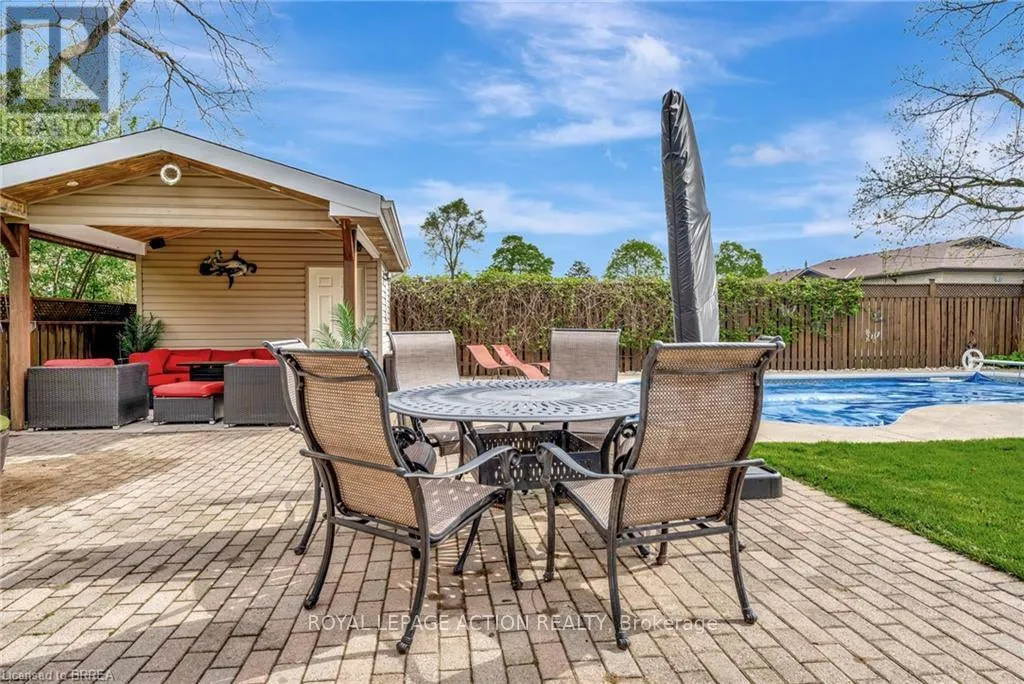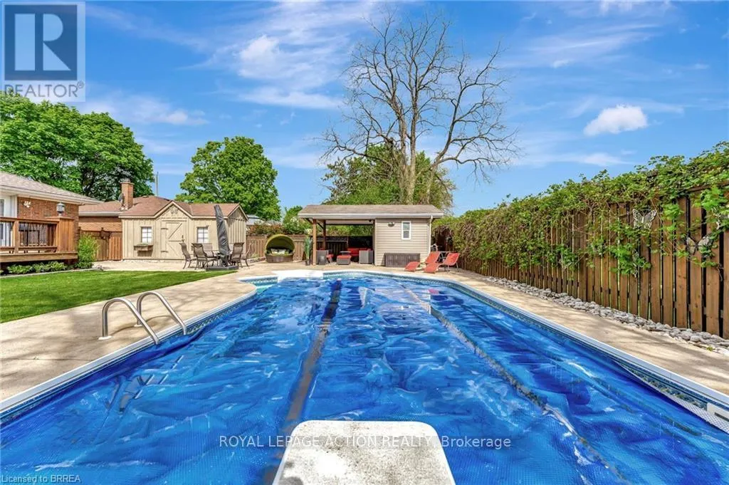 Cross Streets: Marion Street. ** Directions: Head south on West Street from Fairview Drive, turn right on Byrne Street, turn right on Marion Street, right on Todd Street. Welcome to 46 Todd Street - a quiet gem tucked away in Brantford's Terrace Hill neighbourhood. This all-brick bungalow sits at the end of a dead-end street in the popular Wood Street area, offering peace, privacy, and a great sense of community. You'll love how quiet it feels here-backing onto the open property of a church-yet you're only minutes from all the north-end conveniences. Quick highway access, shopping, and restaurants are all just a short drive away, making this location hard to beat. Inside, you'll find a warm and welcoming main floor with a bright living area centered around a cozy gas fireplace. The kitchen was updated a few years ago and offers plenty of space for cooking and gathering. Patio doors lead out to a sunny deck that overlooks your private backyard-complete with an inground pool, perfect for lazy summer days. There are two bedrooms and a full bath on the main level, plus two more bedrooms and another full bath downstairs, giving your family or guests lots of space. The lower-level family room is generous in size-great for movie nights, games, or just relaxing together. Out back, the pool house even has a convenient two-piece bath, so everyone can enjoy the outdoors comfortably. Whether you're starting out, slowing down, or simply looking for a home with room to grow, 46 Todd Street offers a wonderful mix of comfort, convenience, and charm. It's the kind of home that feels good the moment you walk in. (id:27476)