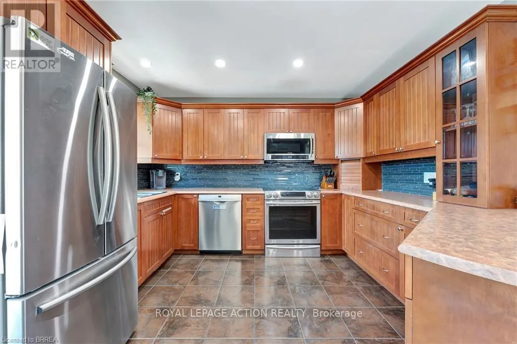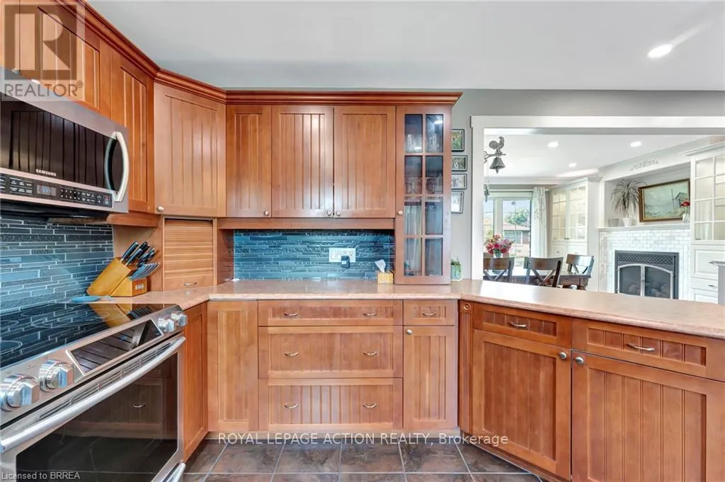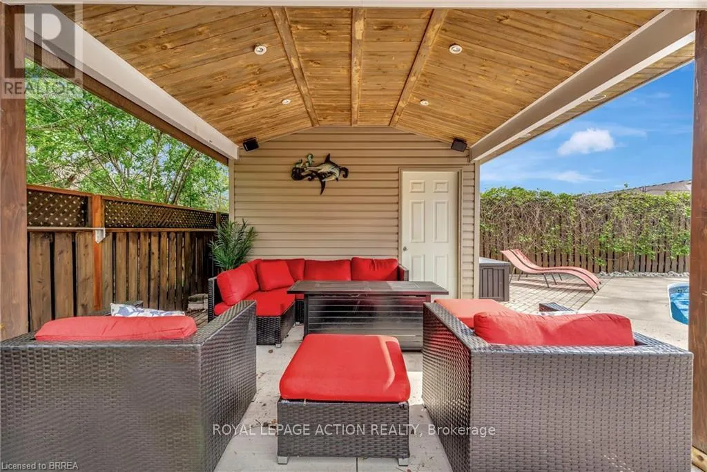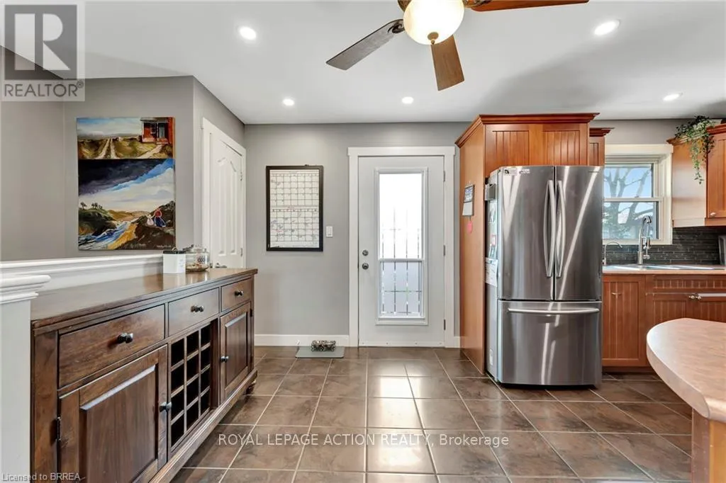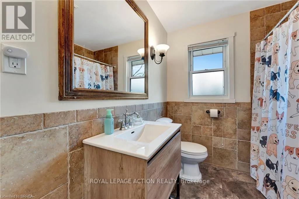 Cross Streets: Marion Street. ** Directions: Head south on West Street from Fairview Drive, turn right on Byrne Street, turn right on Marion Street, right on Todd Street. Welcome to 46 Todd Street - a quiet gem tucked away in Brantford's Terrace Hill neighbourhood. This all-brick bungalow sits at the end of a dead-end street in the popular Wood Street area, offering peace, privacy, and a great sense of community. You'll love how quiet it feels here-backing onto the open property of a church-yet you're only minutes from all the north-end conveniences. Quick highway access, shopping, and restaurants are all just a short drive away, making this location hard to beat. Inside, you'll find a warm and welcoming main floor with a bright living area centered around a cozy gas fireplace. The kitchen was updated a few years ago and offers plenty of space for cooking and gathering. Patio doors lead out to a sunny deck that overlooks your private backyard-complete with an inground pool, perfect for lazy summer days. There are two bedrooms and a full bath on the main level, plus two more bedrooms and another full bath downstairs, giving your family or guests lots of space. The lower-level family room is generous in size-great for movie nights, games, or just relaxing together. Out back, the pool house even has a convenient two-piece bath, so everyone can enjoy the outdoors comfortably. Whether you're starting out, slowing down, or simply looking for a home with room to grow, 46 Todd Street offers a wonderful mix of comfort, convenience, and charm. It's the kind of home that feels good the moment you walk in. (id:27476)