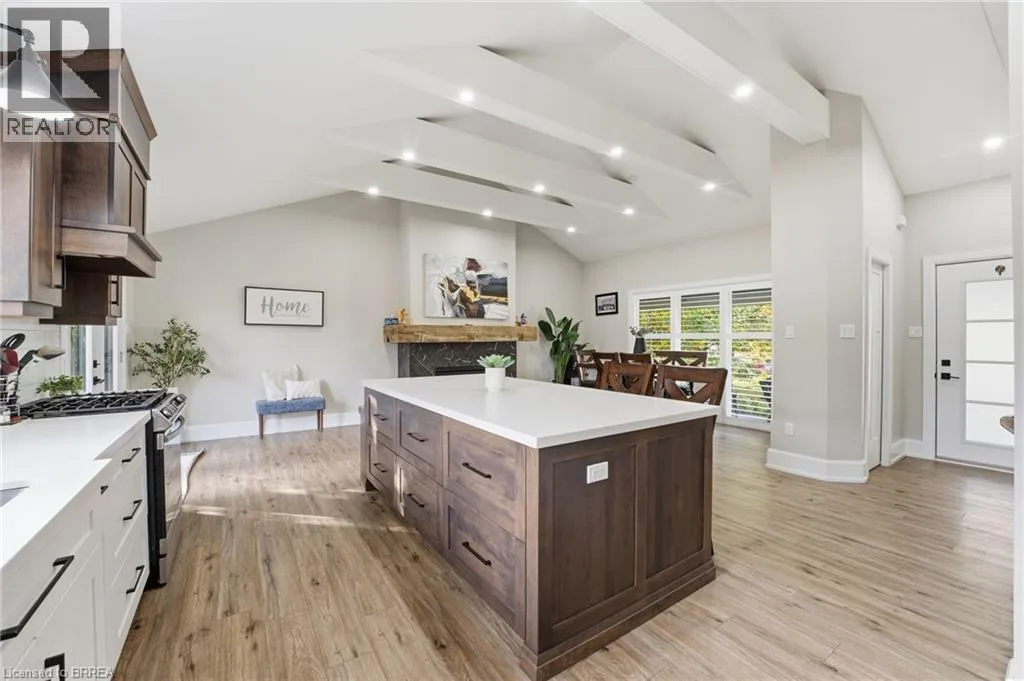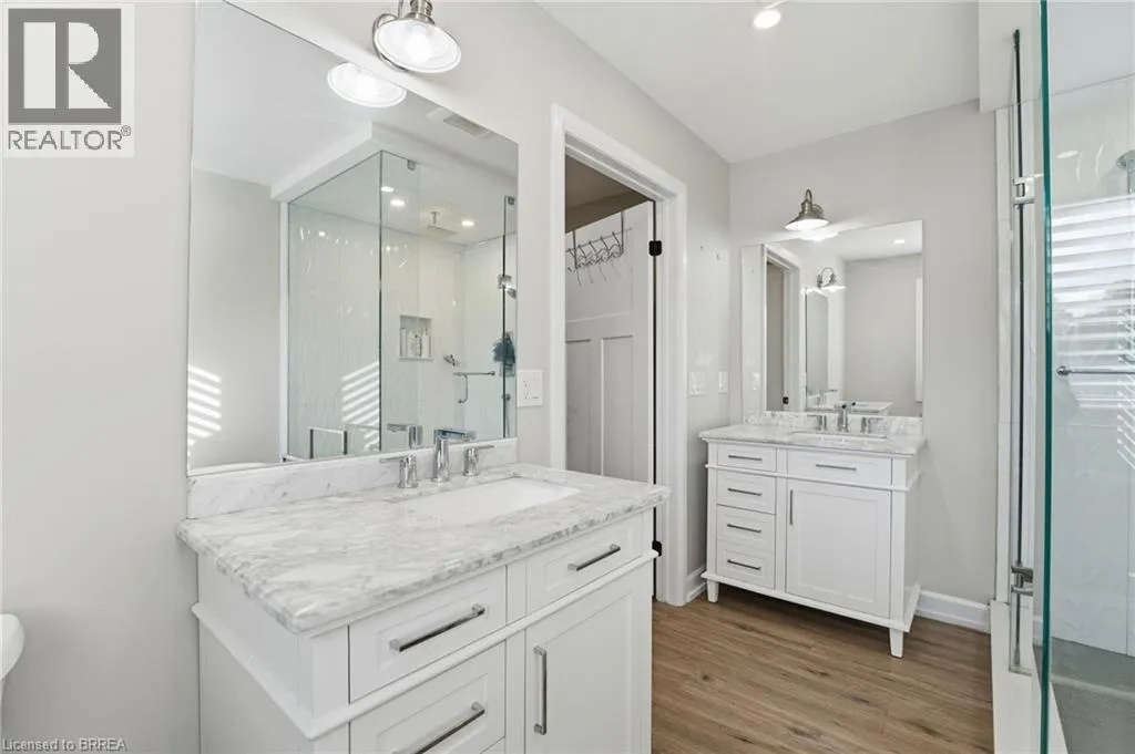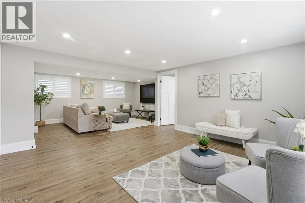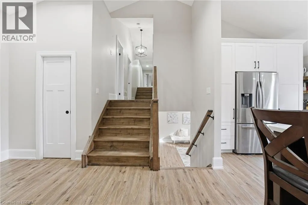Memorial Drive to Forsythe to Halftree Place Nestled on a quiet cul-de sac in desirable North Brantford, this modern farmhouse has been completely renovated and reimagined for today's lifestyle. Featuring over 2800 sq.ft. across five spacious levels, the flexible floorplan provides exceptional multigenerational or separate income suite potential with its separate entrance to the lower level. Enjoy 4 bedrooms (potential for 5), 3 full baths, 2 half baths, vaulted ceilings, an open concept white shaker with espresso island, and a walk-through double garage with epoxy floor and bathroom in the garage. The pie-shaped lot offers ample parking and a fully fenced yard, perfect for relaxing or entertaining in this sought-after neighbourhood close to parks, top-rated schools, shopping, and major highways. Ideal for those families looking to be under 1 roof. Turnkey and move-in ready, this home delivers the ideal blend of privacy, convenience, and modern style in one of North Brantford's most coveted communities. (id:27476)