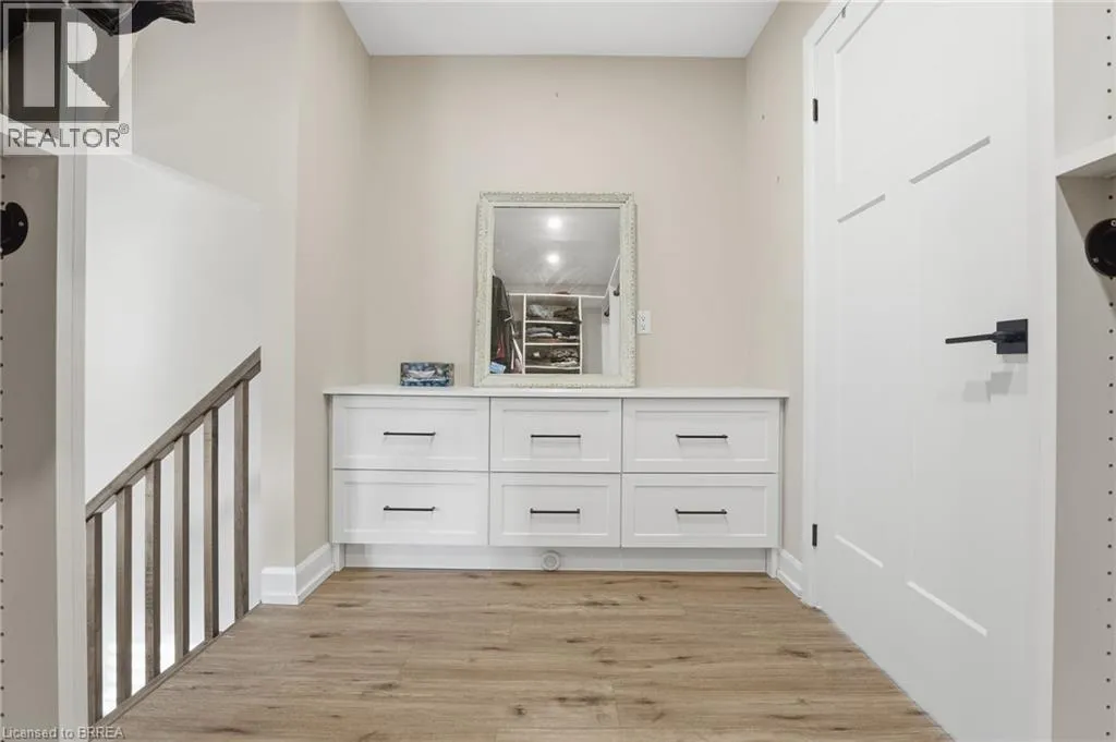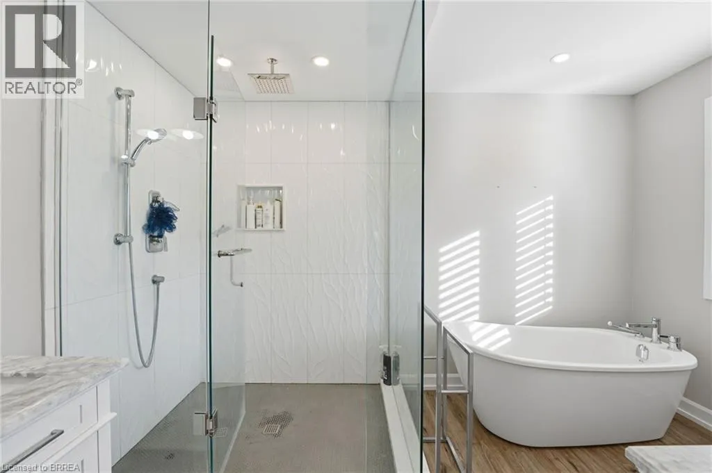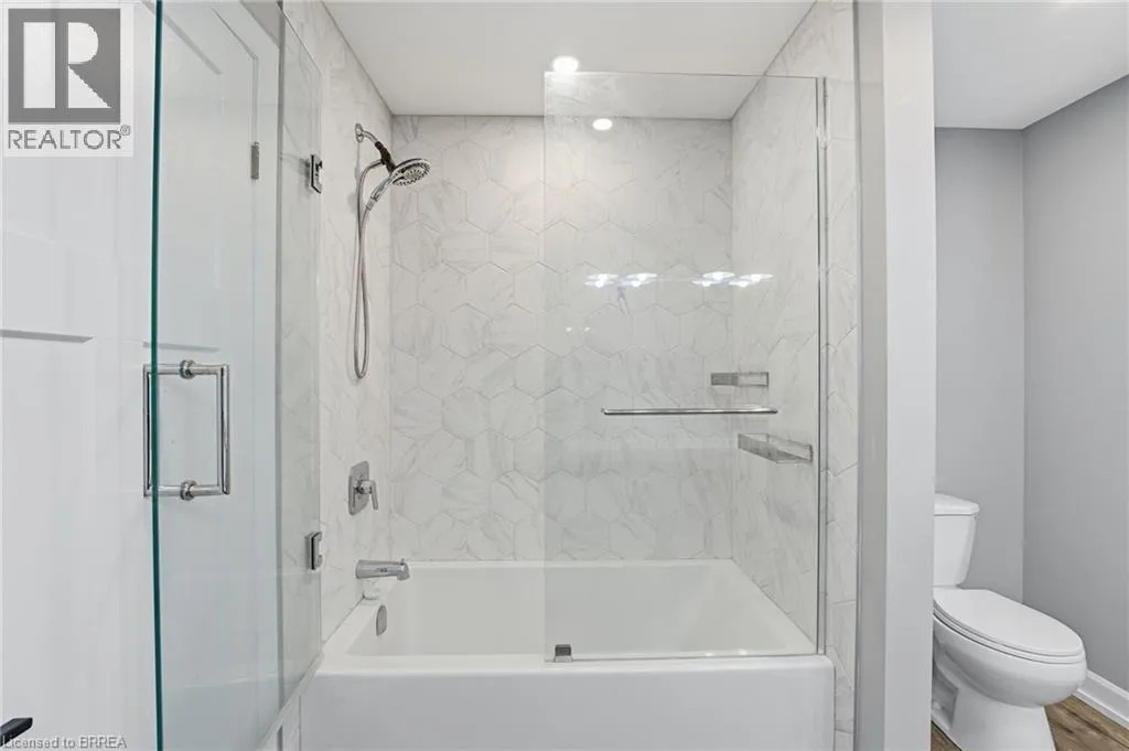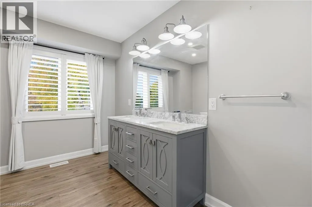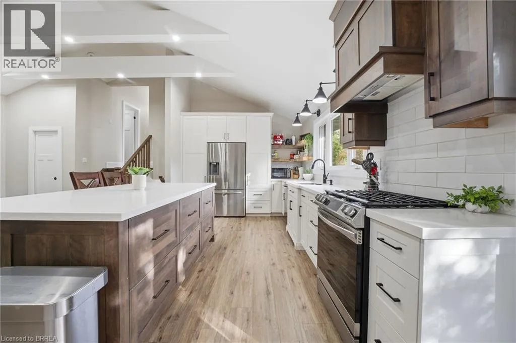 Memorial Drive to Forsythe to Halftree Place Nestled on a quiet cul-de sac in desirable North Brantford, this modern farmhouse has been completely renovated and reimagined for today's lifestyle. Featuring over 2800 sq.ft. across five spacious levels, the flexible floorplan provides exceptional multigenerational or separate income suite potential with its separate entrance to the lower level. Enjoy 4 bedrooms (potential for 5), 3 full baths, 2 half baths, vaulted ceilings, an open concept white shaker with espresso island, and a walk-through double garage with epoxy floor and bathroom in the garage. The pie-shaped lot offers ample parking and a fully fenced yard, perfect for relaxing or entertaining in this sought-after neighbourhood close to parks, top-rated schools, shopping, and major highways. Ideal for those families looking to be under 1 roof. Turnkey and move-in ready, this home delivers the ideal blend of privacy, convenience, and modern style in one of North Brantford's most coveted communities. (id:27476)