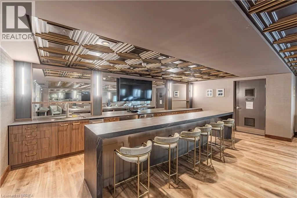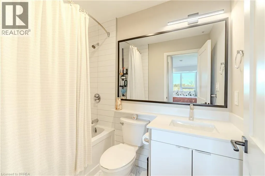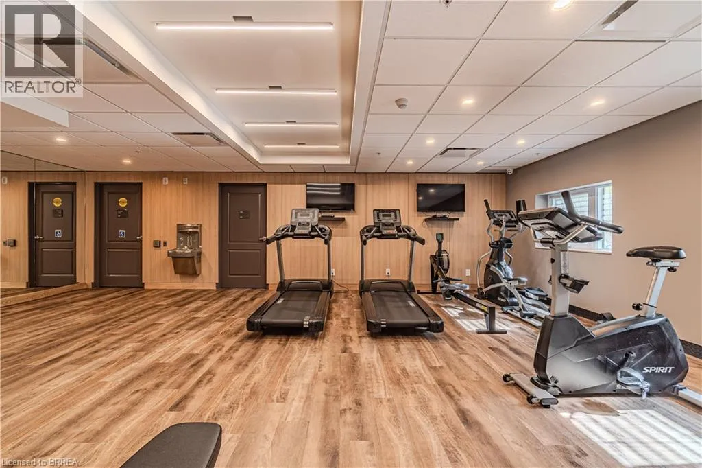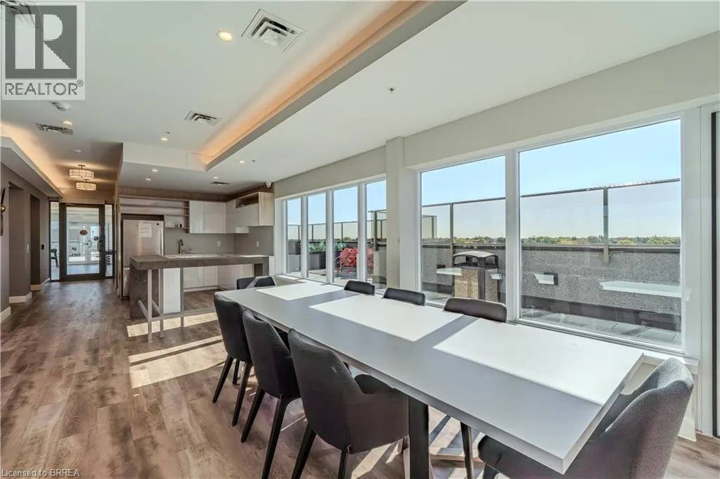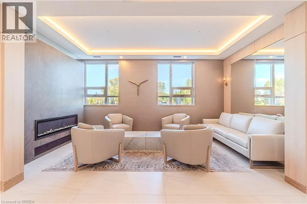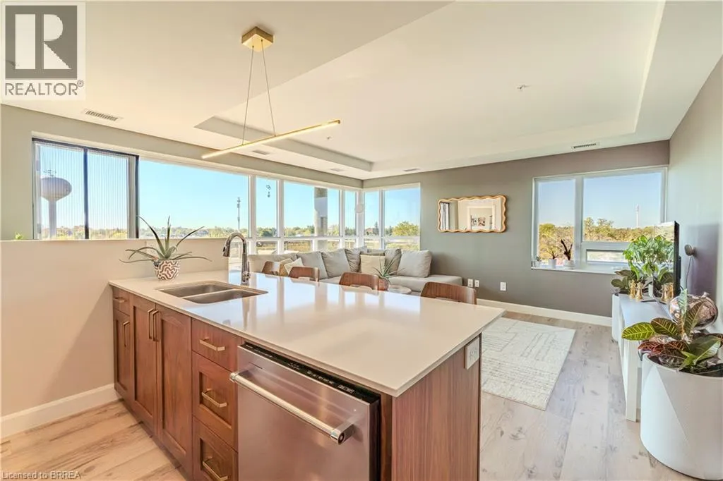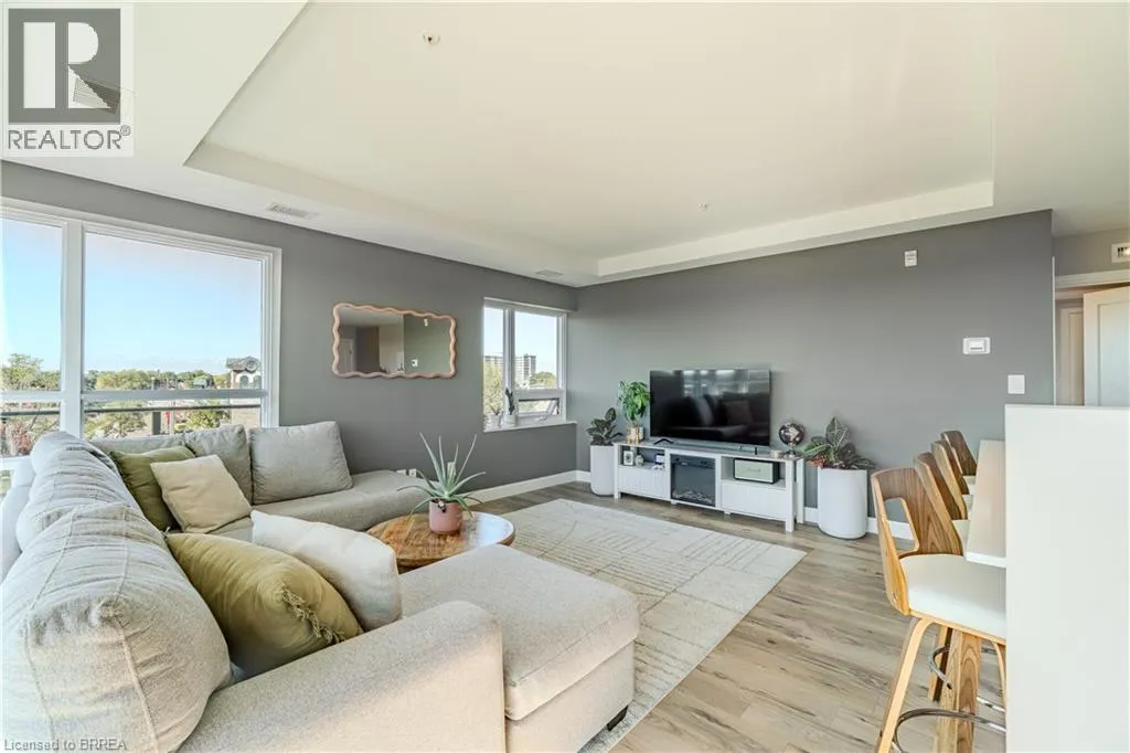 fairview to wayne to norman From the moment you arrive, youâll feel like youâve stepped into a boutique hotel â luxurious, stylish, and far from ordinary. Paying homage to the historic Brantford Flying Club, The Landing blends aviation-inspired design with modern elegance and top-tier craftsmanship. This premium southwest corner unit on the 4th floor offers 900 sq ft of refined indoor living with floor-to-ceiling windows for an abundance of natural light and sweeping views. Step outside to enjoy 200 sq ft of private outdoor space on a covered, south-facing wraparound balcony â ideal for entertaining or relaxing. Inside, the 2-bedroom, 2-bathroom layout features 9â ceilings and a bright, open-concept design. The upgraded âSight Seerâ Interior Design Package includes: Walnut veneer & white kitchen cabinetry Premium Silestone solid surface countertops with matching backsplash Rich Luxury Vinyl Plank flooring throughout Shaker & slab-style cabinetry, designer lighting Chrome kitchen & bath fixtures,modern hardware Hexagonal bathroom tiles, cloud white trims, upgraded vanities Ensuite with tub & guest bathroom with walk-in glass shower Premium Appliance Package: Stainless steel fridge, convection range, microwave hood fan, dishwasher, and in-suite stacked washer & dryer. A Rare find with TWO PARKING SPOTS and a large storage locker are included. Building amenities: Rooftop patio, private speakeasy, fitness studio, and library. Location! Location! Location! Located at 34 Norman Street, this north-end gem provides immediate access to Highway 403 and King George Road, putting you minutes from top-tier restaurants, retail, schools, and all of Brantfordâs best amenities. This is not just a condo â itâs a lifestyle upgrade. Donât miss your chance to own one of the most desirable and well-appointed units in Brantfordâs most exciting and thoughtfully designed new development. This isnât just a condo â itâs a lifestyle upgrade. (id:27476)
