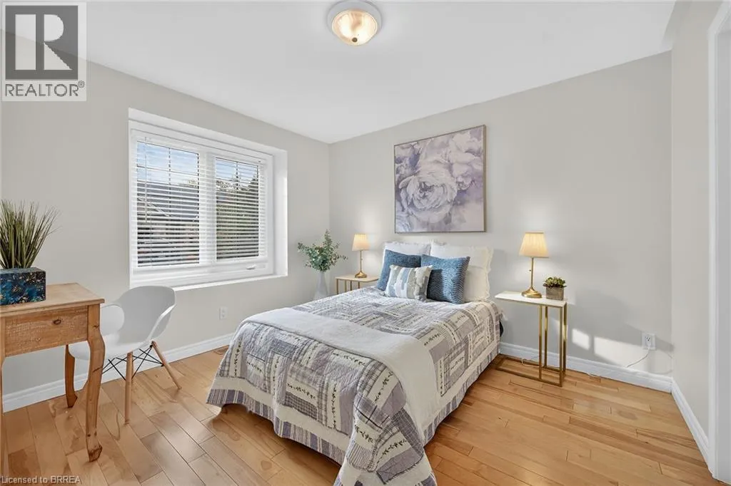 turn right off Fairview Dr to Park Rd N On the right just past Cobden Move in Ready North End bungalow with bonus 2 car garage. Immaculately maintained End Unit condo that offers Open Concept living on the main level. Freshly painted in a neutral tone this home feels inviting the moment you enter. Pride of ownership shows with the gleaming hardwood flooring. The eat in kitchen has lots of counter space ,double sink, backsplash, plenty of cupboards and a moveable island for extra storage and prep space. The dining area has lots of room for larger table and buffet to host your family gatherings . The living room area has hardwood floors, stunning corner gas fireplace and patio doors to your private deck perfect for your morning coffee. Both bedrooms feature hardwood floors and generous closet space. Extra bonus on this level is main floor laundry room. and access to the 2 car garage and lots of storage. The finished lower level offers extra room for visitors with a large rec room , private bath and 2 bonus rooms . This is a well managed complex. Desirable location just short walk to coffee shops, dining and shopping .and convenient highway access. Sure to Impress! Book your private showing today and click on the Virtual tour link for more photos. (id:27476)