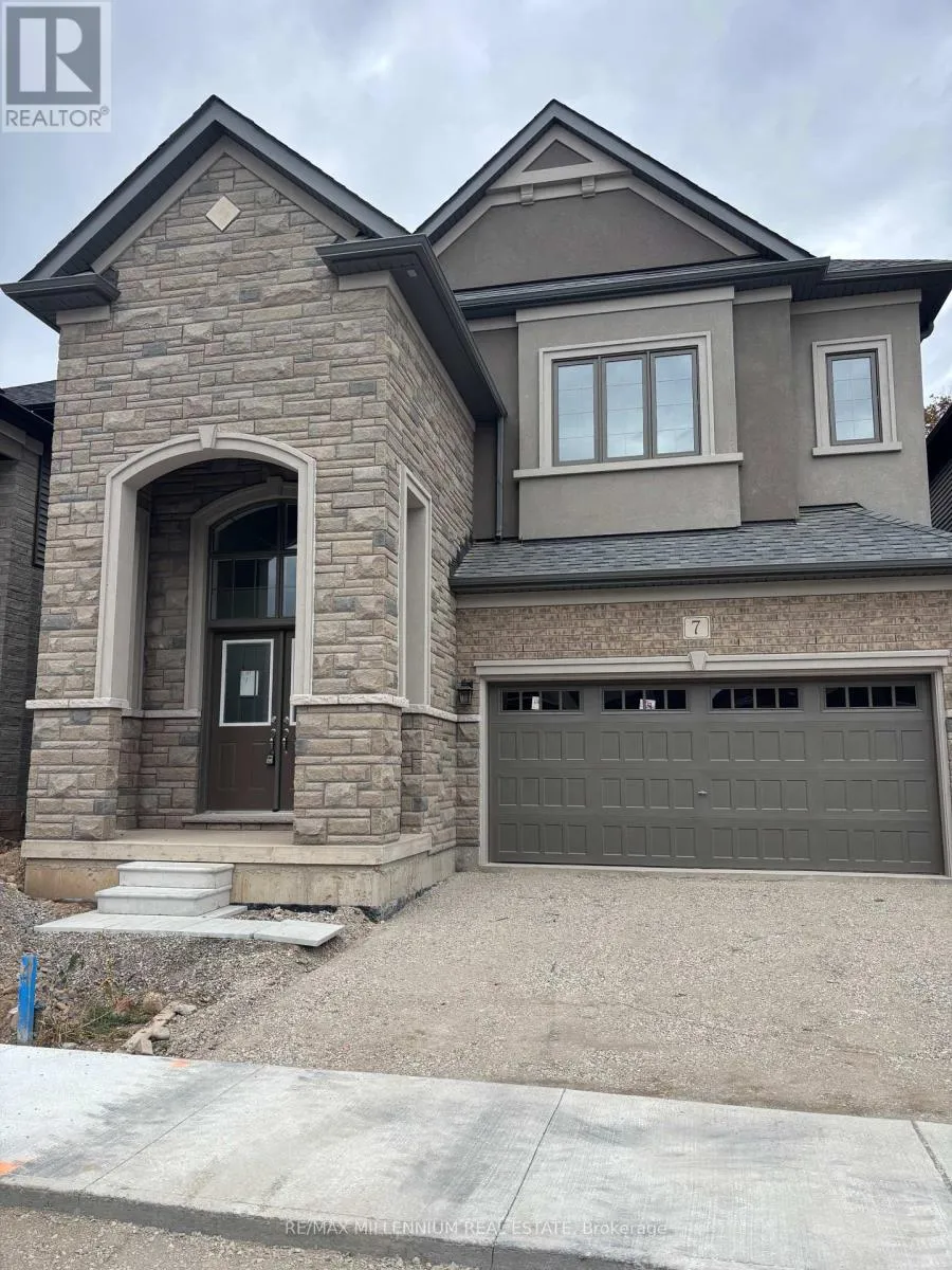 MCKERNAN AVE & DENNIS AVE Be the first to call this stunning brand-new 3,000 sq. ft. home your own! Perfectly situated in one of Brantford's newest and most desirable communities, this modern 5-bedroom, 4-bathroom residence offers a lifestyle of comfort, convenience, and connection with nature. Surrounded by scenic Grand River trails and offering easy access to Hwy 403, this location combines tranquility with everyday practicality. Sitting proudly on a premium ravine lot, the home is flooded with natural light from multiple exposures. The modern open-concept layout showcases 9' ceilings on both the main and second floors, creating a bright and airy feel throughout. A welcoming front porch opens into a spacious double height foyer, glass doors, and a coat closet, leading to a grand hallway with an open-to-above hardwood staircase. The great room, designed for both style and function, features large windows with transoms to maximize sunlight and flows seamlessly into a cozy corner living area overlooking mature trees. The sleek modern kitchen includes abundant storage, a breakfast bar for four, and a bright breakfast area with walkout to the backyard. Convenience continues with a main-floor laundry room and inside access to a double garage. Upstairs, a sunlit hallway with a vaulted window leads to spacious bedrooms. The primary suite impresses with a luxurious ensuite featuring a freestanding tub, separate shower, and an oversized walk-in closet. (id:27476)