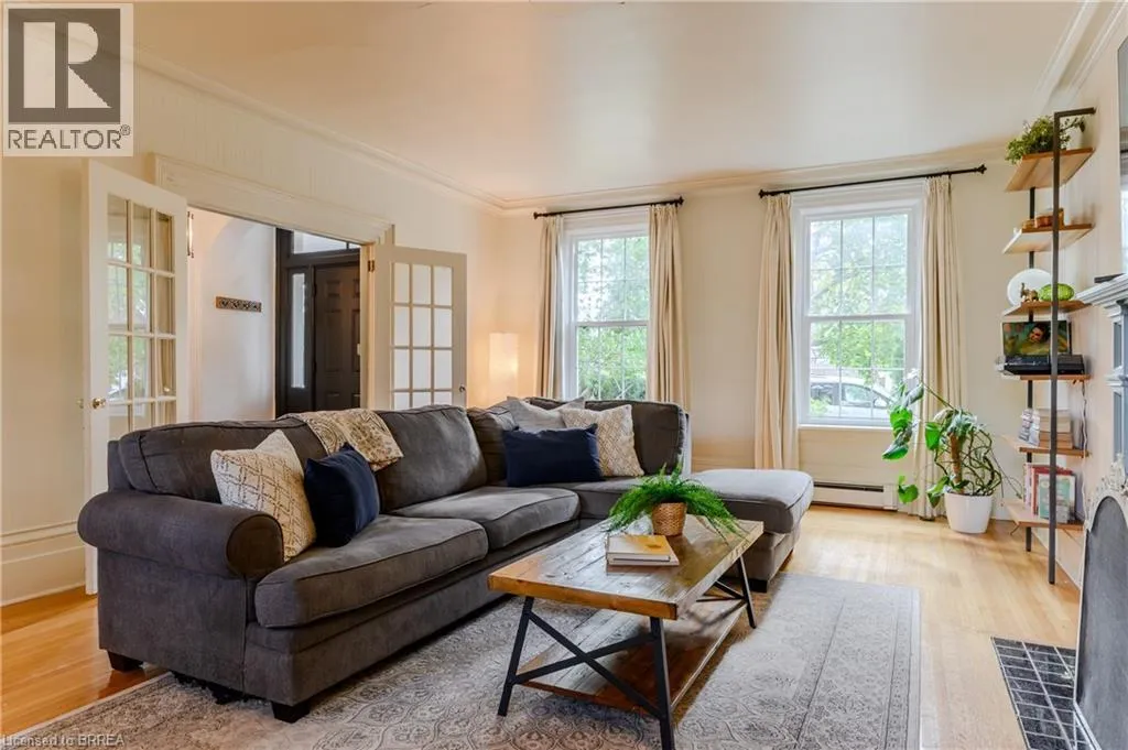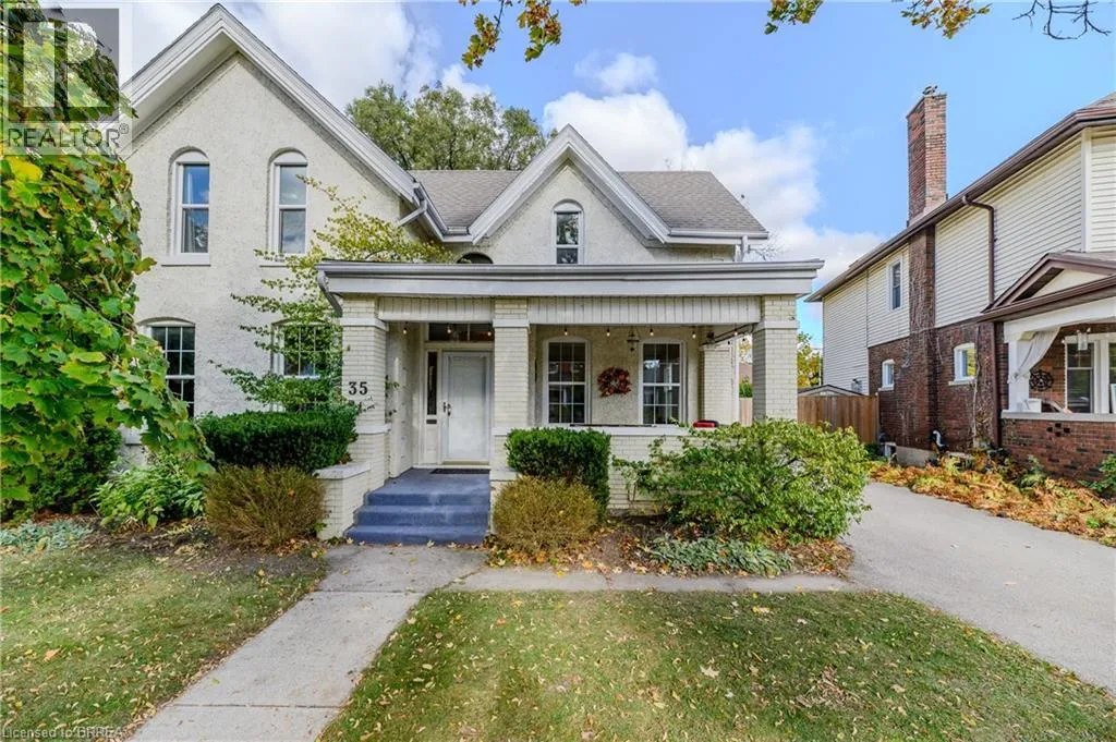 From Brant Ave turn onto Lorne Cres and then turn right at Egerton. Welcome to 35 Egerton Avenue, a charming century home in Brantfordâs desirable Dufferin neighbourhood. Filled with natural light, this beautifully maintained property blends classic character with modern updates. The spacious main floor features original hardwood floors, a stylish kitchen, generous sized living and dining areas, and a seamless flow perfect for entertaining. Upstairs, comfortable bedrooms offer flexibility for family, guests, or a home office. Enjoy the private, fully fenced backyard â ideal for relaxing or hosting summer barbecues. With great curb appeal, a welcoming front porch, and a location close to schools, parks, and shopping, this move-in-ready home is perfect for those seeking comfort, convenience, and charm in one of Brantfordâs most established communities. (id:27476)