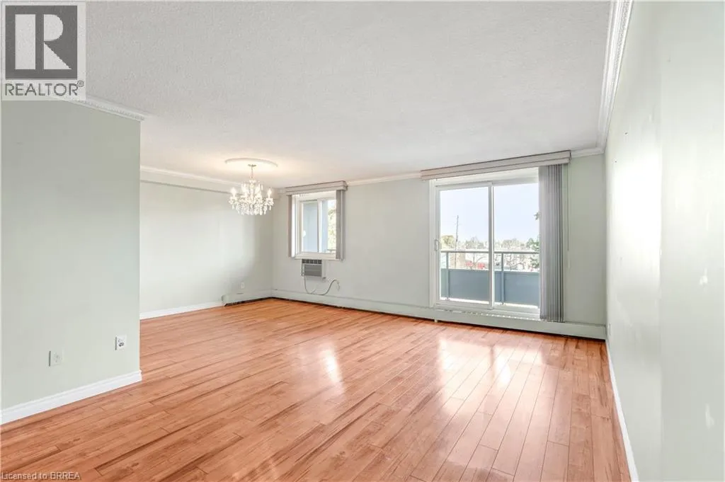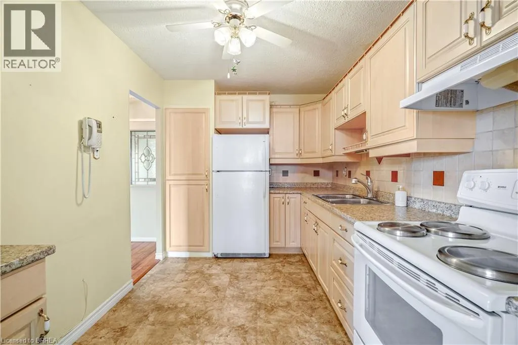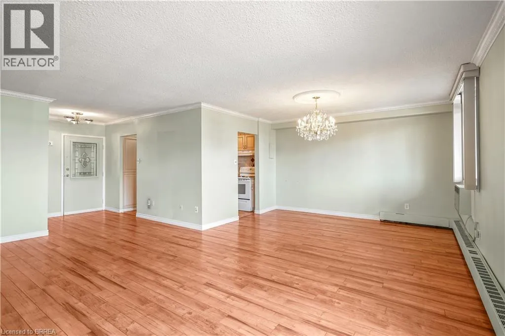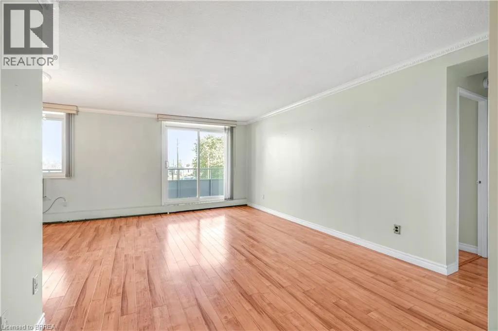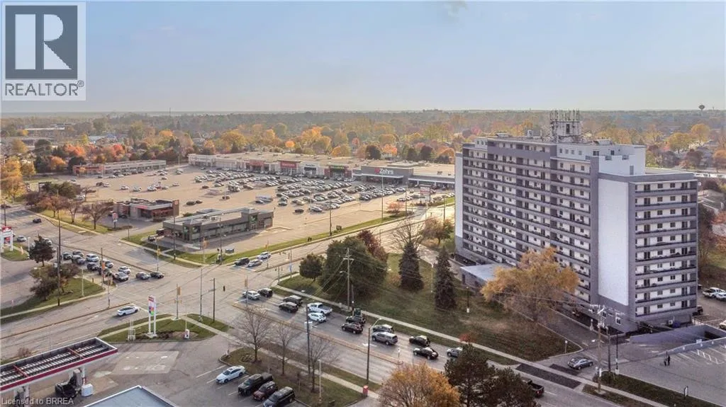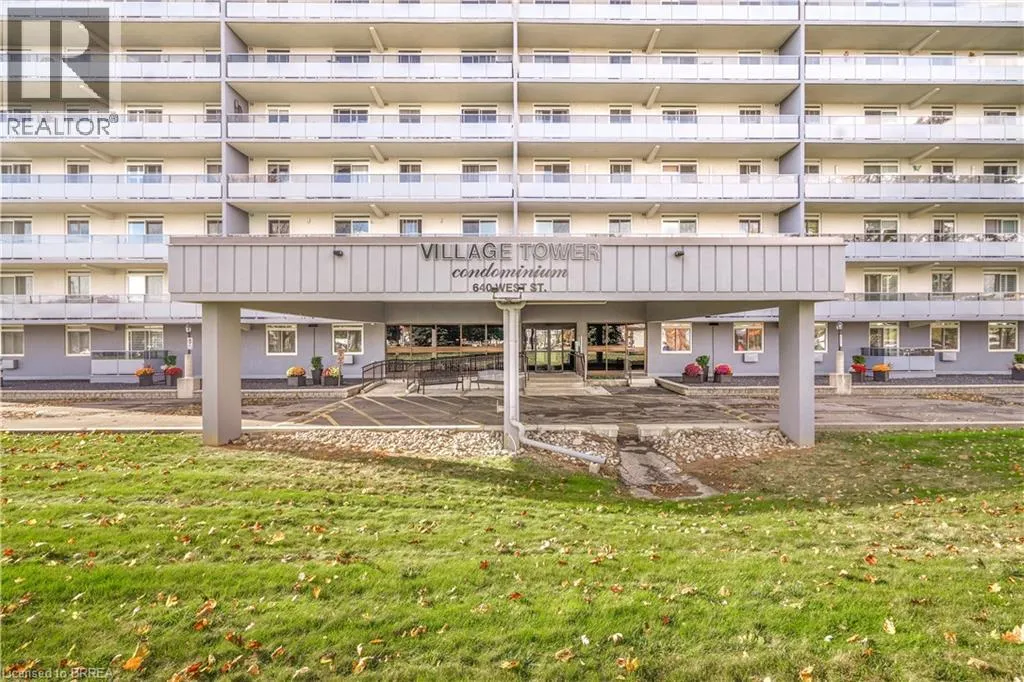Fairview Drive/West Street A Stunning Condo in a Prime Location! A beautiful 2 bedroom condo in the highly sought-after Village Tower building that's a short walk to go to Zehrs to get your groceries or to grab a coffee at Tim Hortonâs or something to eat from one of the various restaurant options, and located in a desirable North End neighbourhood that's close to the Lynden Park Mall, Costco, Wayne Gretzky Sports Centre, Swiss Chalet, and more. This lovely home features a walk-in coat closet, an immaculate kitchen with updated countertops, tile backsplash, plenty of cupboards and counter space, a lazy Susan, and a built-in pantry, a bright and spacious living room/dining room combo for entertaining with laminate flooring, crown moulding, and patios doors that lead out to the very long balcony that runs across the whole length of the unit, a pristine bathroom that has a modern vanity and a walk-in shower with a sliding glass door, a large guest bedroom, and there is a huge master bedroom that also has attractive laminate flooring and enjoys a roomy walk-in closet plus a 2nd closet, and patio doors to the private balcony where you can relax with your morning coffee. The building includes an exercise room, a sauna, a party room, pool tables, a lounging area, underground parking, visitor parking, and more. Pride of ownership shines in this wonderful move-in ready condo in an excellent neighbourhood where you can enjoy condo living at its best! Book your viewing today! (id:27476)