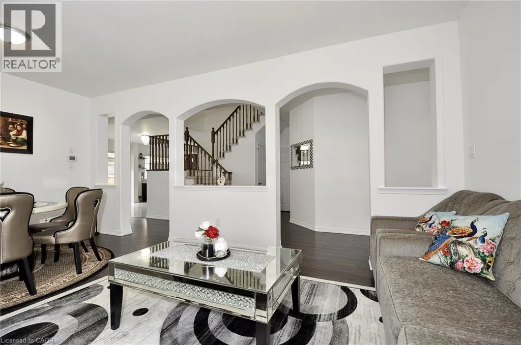 Gillespie Dr To cheevers Rd Welcome to This beautiful 44 ft front House For Lease 55 Cheevers Rd 5-Bedroom 4 bathroom ,double door entry located in Brantford Empire community West Brant. This is lovely well kept homes is surrounded by School, plaza, park & walking trails. you will be greeted by Large foyer area with tiles that leads to the Den/Office with large window and natural lights. The spacious living and dining area. Large separate family room offers a cozy fireplace & windows. The Spacious kitchen with featuring stainless steel appliances, a stylish backsplash, a large island, and a breakfast area with sliding doors leading out fenced backyard. 9-foot ceilings on the main floor. Upper Level you will find Primary bedroom with 6PC Ensuite & His/Her 2 Walk-in-closet. Also located on Second Floor are two spacious Bedroom with Share 4-piece bath. Remaining two Bedroom share with 5 Pc ensuite Jack and Jill. Laundry on main Floor. Access to Double Car Garage thru the Laundry Room. The unfinished Basement provides even more living spaces . Don't Miss Out! Tenant Pays all utilities, with Hot water heater. (id:27476)