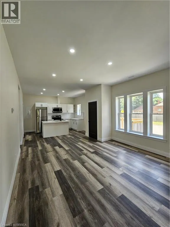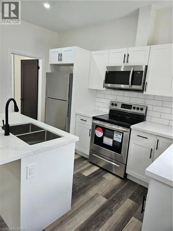 On the corner of Robinson Ave. and Colborne Street E. Not ready to buy? This beautiful and modern 3-bedroom main-floor unit is perfectly located just off Wayne Gretzky Parkway in one of Brantfordâs most convenient and desirable areas, this inviting space offers both comfort and contemporary style. Recently renovated from top to bottom, the unit boasts a bright, open layout with elegant finishes, fresh neutral tones, and stylish flooring throughout. The upgraded kitchen features sleek cabinetry, stainless-steel appliances, and ample space for cooking and entertaining. The spa-inspired bathroom showcases modern fixtures and a clean, timeless design, while the convenience of in-suite laundry adds to your everyday ease. Three spacious bedrooms offer flexibility for families, couples, or professionalsâwhether you need extra room for guests or a dedicated home office. Step outside and unwind on your private front deck or side porchâideal for morning coffee or evening relaxation. The home includes two dedicated parking spots, dual entrances (front and side), a freshly paved driveway, and a newly fenced yard, all adding to its great curb appeal and convenience. Located just minutes from Mohawk Trail Park, Mohawk Lake, World Gym, Crunch Fitness, Walmart, Zehrs, Starbucks, Laurier Brantford, and Conestoga College, youâll have everything you need within easy reach. Scenic trails, downtown amenities, and major stores are all less than five minutes away. Donât miss your chance to enjoy modern living in a prime Brantford location â schedule your private viewing! (id:27476)