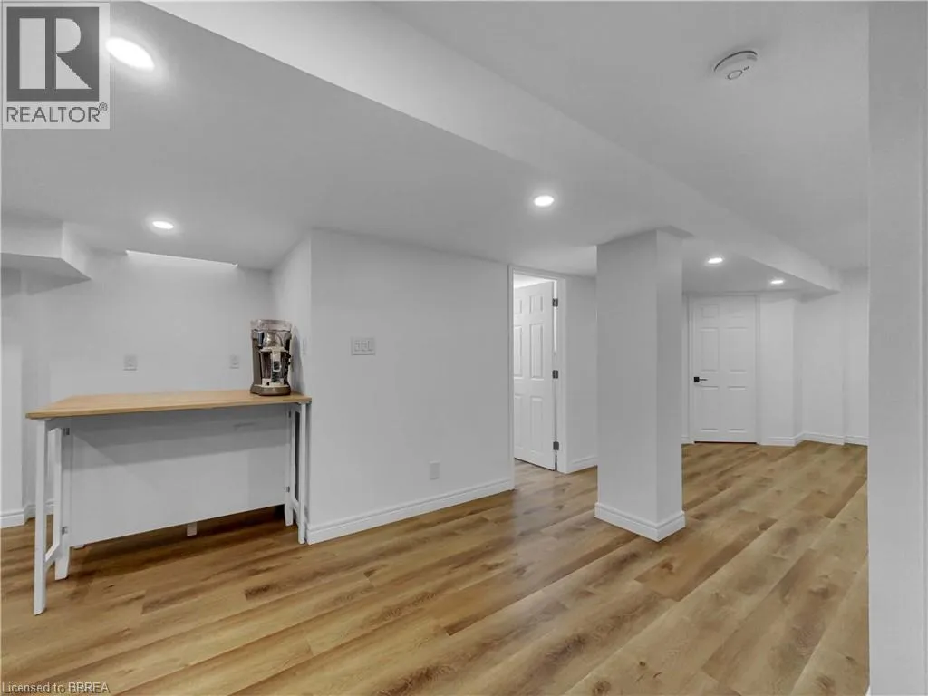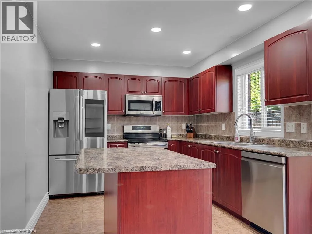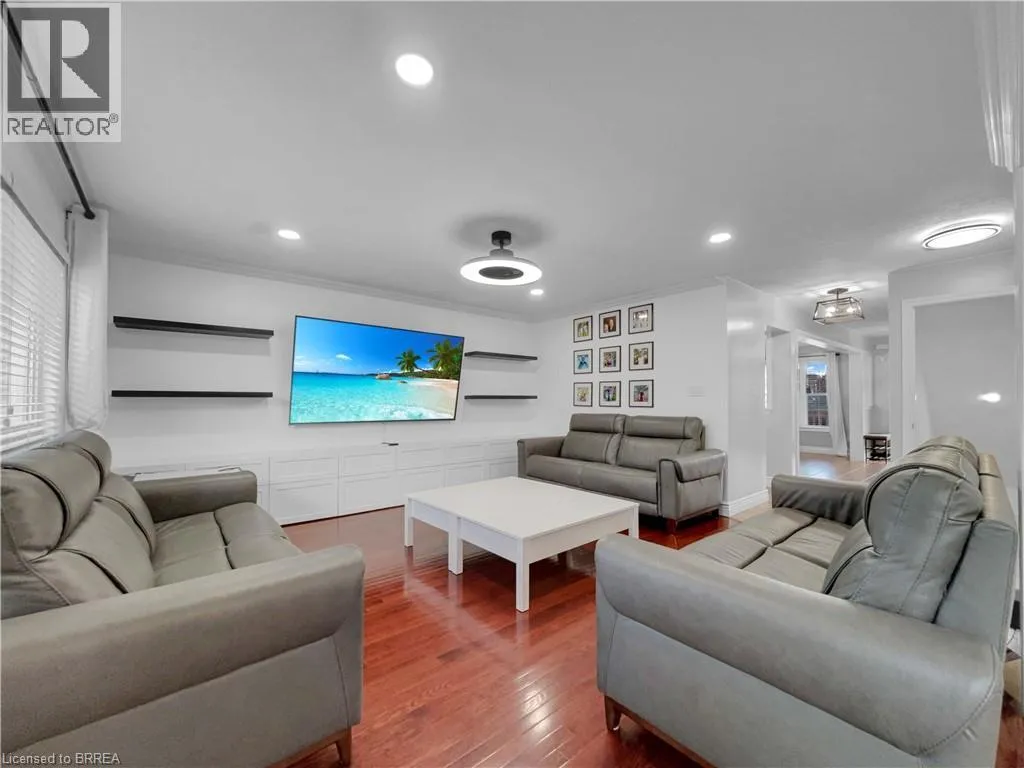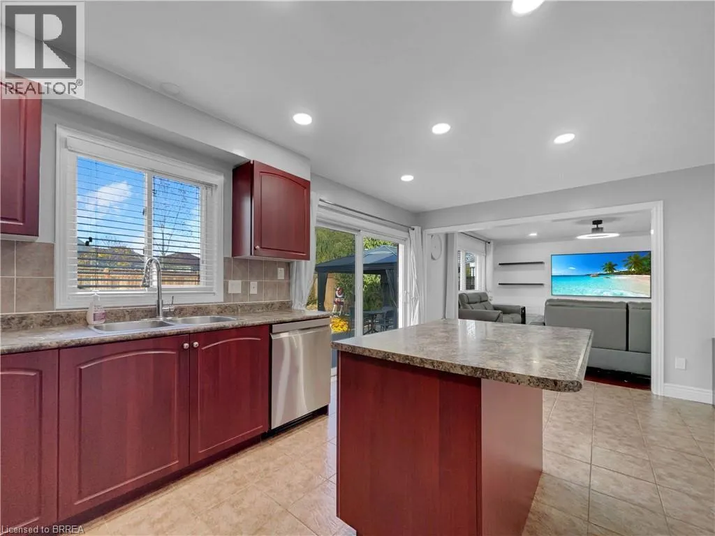 Hunter Way & Shantz Ave Welcome to this beautifully updated two-storey home in the heart of West Brant, surrounded by excellent schools, parks, and walking trails. Offering just over 2,100 square feet of living space above grade, this property combines comfort, functionality, and thoughtful design throughout. The main floor features an inviting layout ideal for both family living and entertaining, including separate dining and living areas accented with elegant crown moulding, a bright and spacious kitchen with plenty of storage, a convenient powder room, and main floor laundry with direct access to the garage. Upstairs, youâll find four well-sized bedrooms and a full bathroom, along with a spacious primary suite complete with its own private ensuiteâcreating a perfect retreat at the end of the day. The basement offers additional potential with a rough-in for a wet bar, and a full bathroom along with a larger family room perfect for movie nights! Step outside to enjoy a fully fenced backyard with an expansive concrete patio and covered gazebo, ideal for relaxing or hosting friends. The home also offers a double-wide concrete driveway, covered front porch, and an attached two-car garage for plenty of parking and storage. Recent updates include new shingles (2021) and other quality improvements throughout. A wonderful opportunity to own a move-in-ready family home in one of Brantfordâs most desirable neighbourhoods. Schedule your private viewing today. (id:27476)