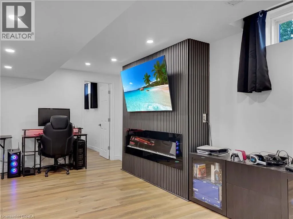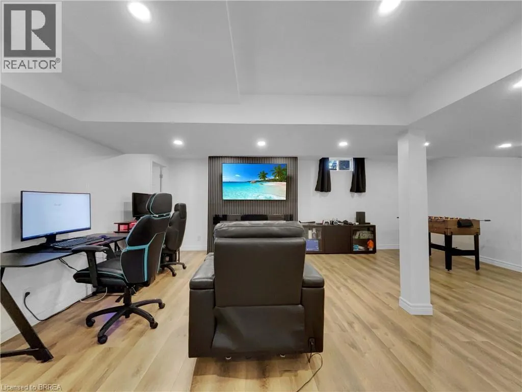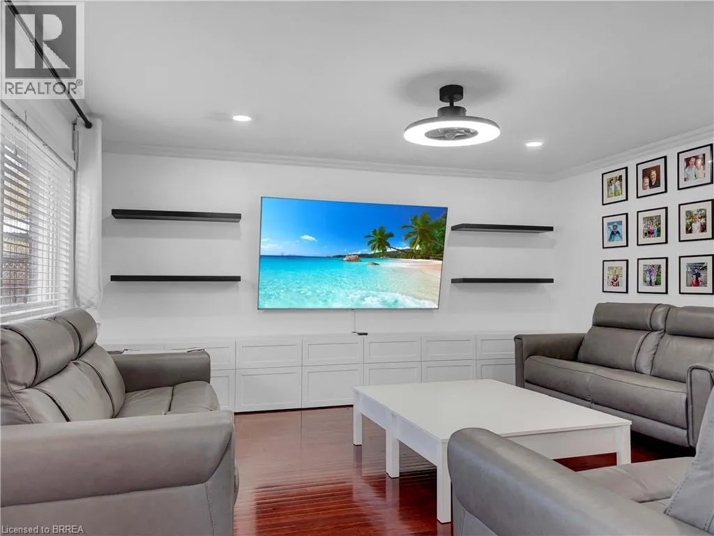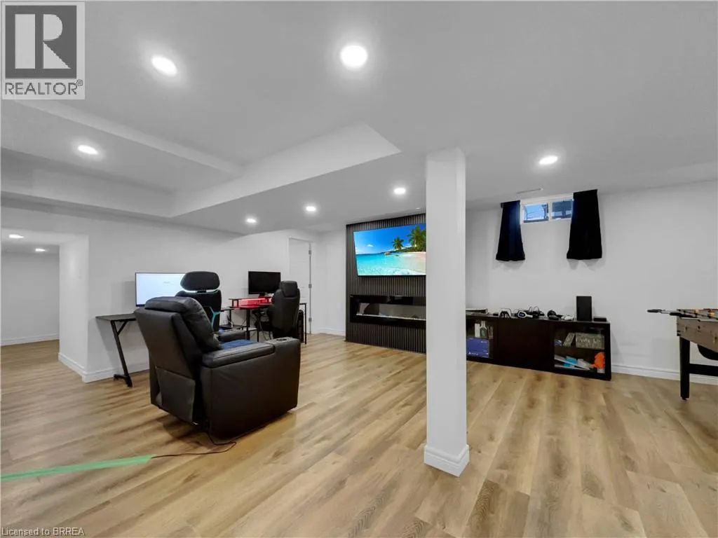Hunter Way & Shantz Ave Welcome to this beautifully updated two-storey home in the heart of West Brant, surrounded by excellent schools, parks, and walking trails. Offering just over 2,100 square feet of living space above grade, this property combines comfort, functionality, and thoughtful design throughout. The main floor features an inviting layout ideal for both family living and entertaining, including separate dining and living areas accented with elegant crown moulding, a bright and spacious kitchen with plenty of storage, a convenient powder room, and main floor laundry with direct access to the garage. Upstairs, youâll find four well-sized bedrooms and a full bathroom, along with a spacious primary suite complete with its own private ensuiteâcreating a perfect retreat at the end of the day. The basement offers additional potential with a rough-in for a wet bar, and a full bathroom along with a larger family room perfect for movie nights! Step outside to enjoy a fully fenced backyard with an expansive concrete patio and covered gazebo, ideal for relaxing or hosting friends. The home also offers a double-wide concrete driveway, covered front porch, and an attached two-car garage for plenty of parking and storage. Recent updates include new shingles (2021) and other quality improvements throughout. A wonderful opportunity to own a move-in-ready family home in one of Brantfordâs most desirable neighbourhoods. Schedule your private viewing today. (id:27476)