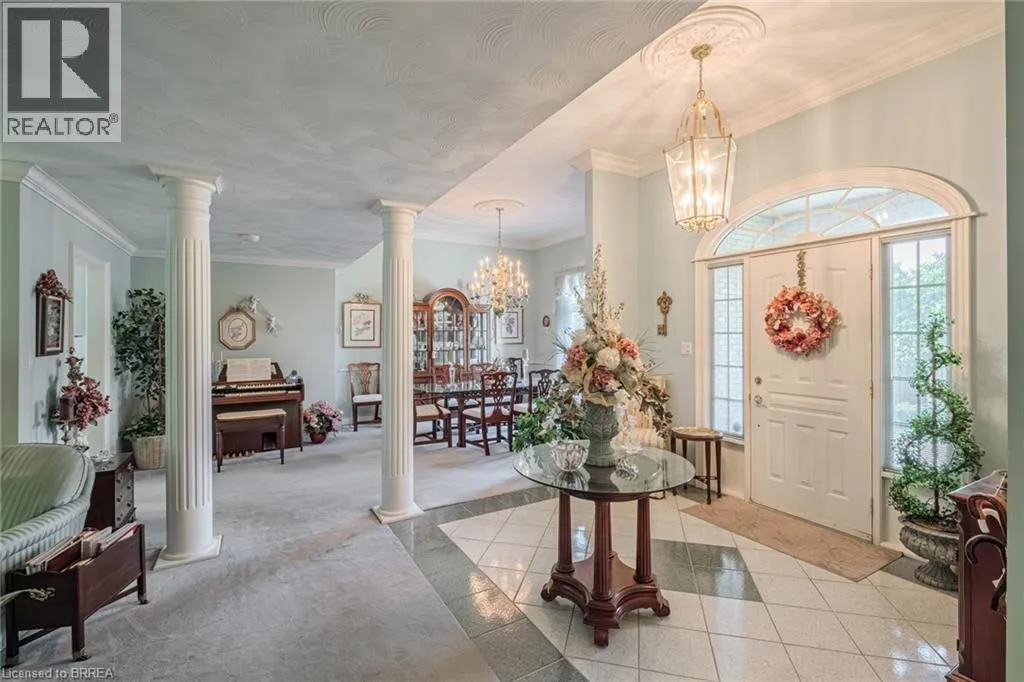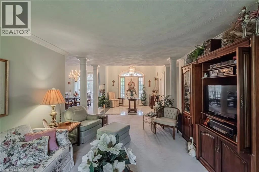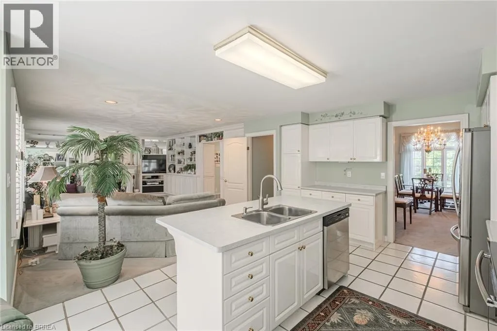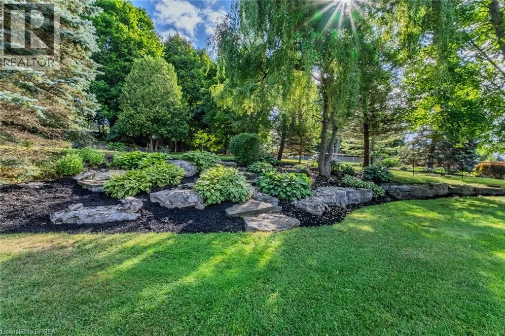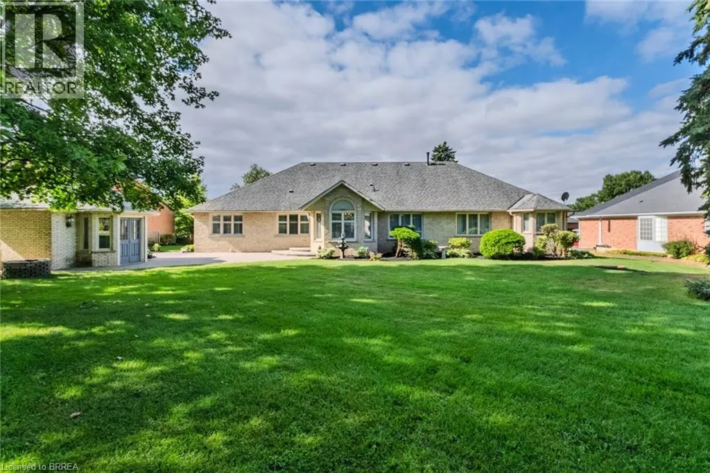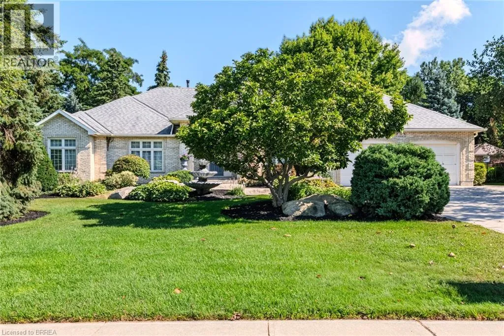 Ava Rd to Hardy Rd to St Andrew's Drive Prestigious Ava Heights Location close to Brantford Golf & Country Club on .7 of an acre lot in the city with 96 feet frontage is this all brick ranch with great curb appeal featuring 2,593 sq ft on the main level with 2 car garage, nicely landscaped grounds with lots of room to add an inground pool, front foyer & dining room with higher ceilings, open concept eat-in kitchen to main floor family room with gas fireplace and built-in shelving on both sides, main floor laundry & mud room off of garage, spacious living room with beautiful view of the private large backyard, master bedroom with walk-in closet & ensuite bath with separate shower & tub, 3 bedrooms, 2.5 baths on main level, convenient walkdown stairs from garage to basement, full unspoiled basement ready to finish into rec room, games room, theatre room, more bedrooms & bathroom, rough in bath in basement, central air, central vac, underground sprinklers with a separate 24' dug well so your grass is always green at no cost, newer re-shingled roof & furnace, brick storage shed or future pool cabana, large patio for your summer family BBQ's, fantastic opportunity to live in a sought after area, Location Location Location!! (id:27476)