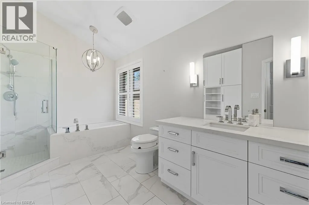 In between Francis St and Memorial St. Welcome to 422 Powerline Road Unit 34. Rosedale Estates, this is one of Brantford's most sought after condominium locations and this is one of the most sought after units. Why? It has everything executives want. 1,557 sq. ft. on the main level, a fully finished WALKOUT basement, a double garage and the icing on the cake, it backs onto a ravine so no rear neighbours. The pride of ownership is evident the minute you walk into this detached bungalow. All gleaming hardwood floors on both upper and lower floors. Kitchen and countertops have all been replaced, cathedral ceilings in the great room and primary bedroom, two gas fireplaces, California shutters and haven't even went to the lower level yet! (id:27476)