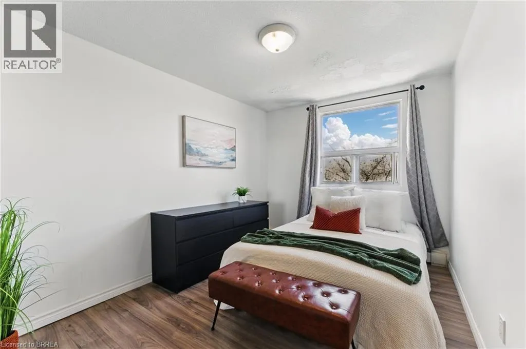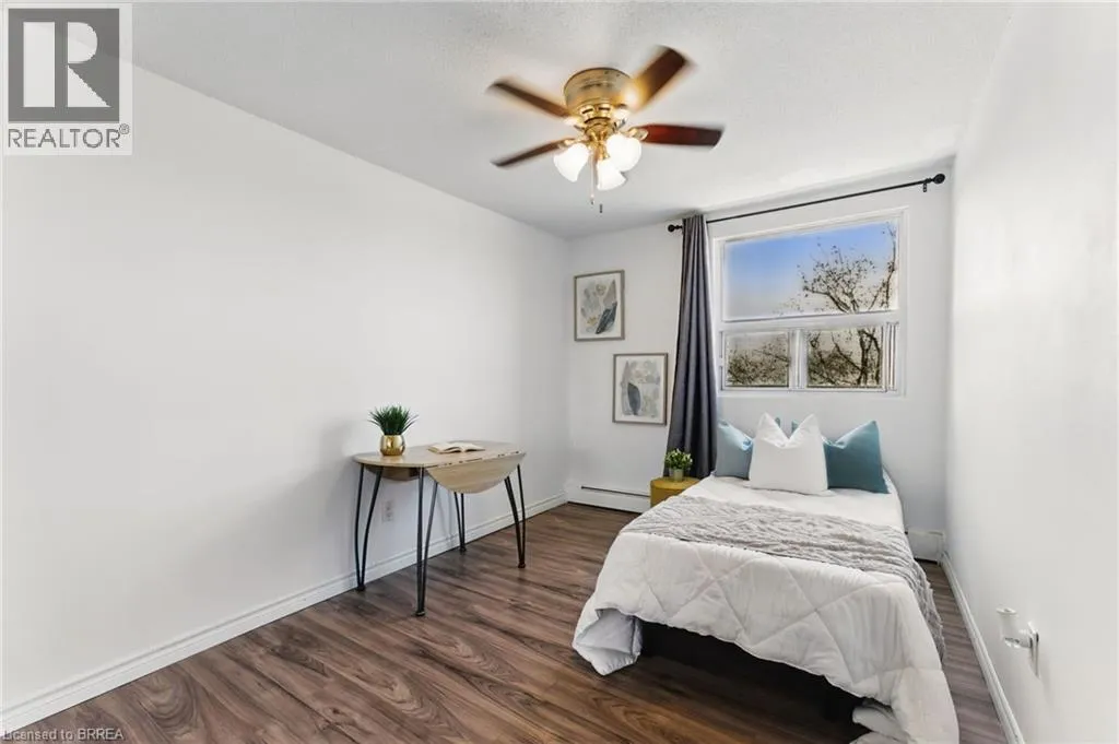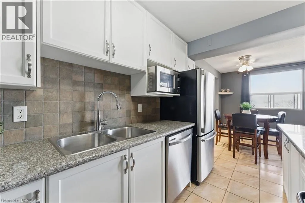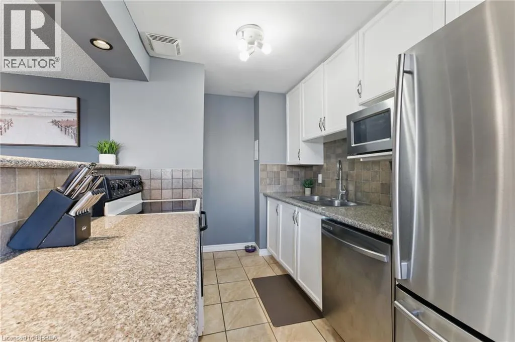 Travelling south on Wayne Gretzky Parkway turn left on Colborne Street E. Welcome home to 793 Colborne Street, Unit #401! This beautifully maintained 3-bedroom, 1-bathroom condo offers the perfect blend of comfort, style, and convenience. The bright and airy open-concept design seamlessly connects the living room, dining area, and kitchen, creating a welcoming space for both everyday living and entertaining. From the living room, step out onto your private balcony, ideal for enjoying your morning coffee or relaxing in the evening breeze. The unit boasts sleek laminate flooring and tile throughout, offering both durability and a consistent, modern aesthetic. The spacious kitchen features ample counter space, a sleek style backsplash, and granite countertops that add a touch of contemporary elegance. Situated on the top floor, this condo provides added privacy, along with an abundance of natural light that fills every room. For your convenience, this home comes with an in-unit washer and dryer, making laundry day effortless. This condo is one of only a few 3-bedroom units in the building, offering more space and flexibility. Additionally, it includes two brand-new, underground, fully covered private paid parking spots, providing both safety and convenience. Whether youâre a first-time homebuyer, an investor, or looking to downsize, this is a fantastic opportunity in a prime location. Don't miss out on the chance to make this stunning condo your new home! (id:27476)