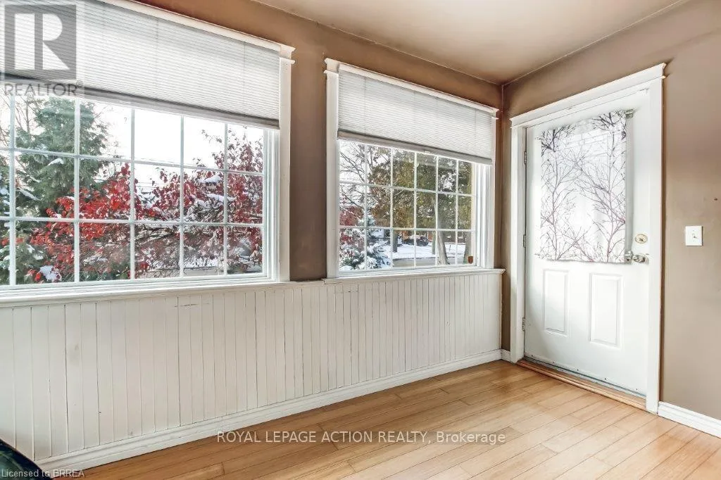 Cross Streets: Sterling Street. ** Directions: St. Paul Avenue to Grand River Avenue. Welcome home to 85 Grand River Ave. This charming 2 bedroom, 1 bathroom home is perfect for first time buyers or those looking to downsize. Featuring a large living room with 10 foot ceilings, partially finished basement, screened in porch, oversized 1 car garage, parking for 4 vehicles, main floor laundry and a storage shed all set on a 115 foot deep corner lot that has plenty of opportunity for the green thumb in the family and is perfect for entertaining. Exposed brick throughout the house adds tons of character. New windows (2022) new front door, 3 year old roof, reverse osmosis water treatment, water softener and owned water heater. Great curb appeal with lots of backyard privacy and close to great schools, shopping, downtown and steps away from the Grand river and Brantford's fabulous trail system. (id:27476)