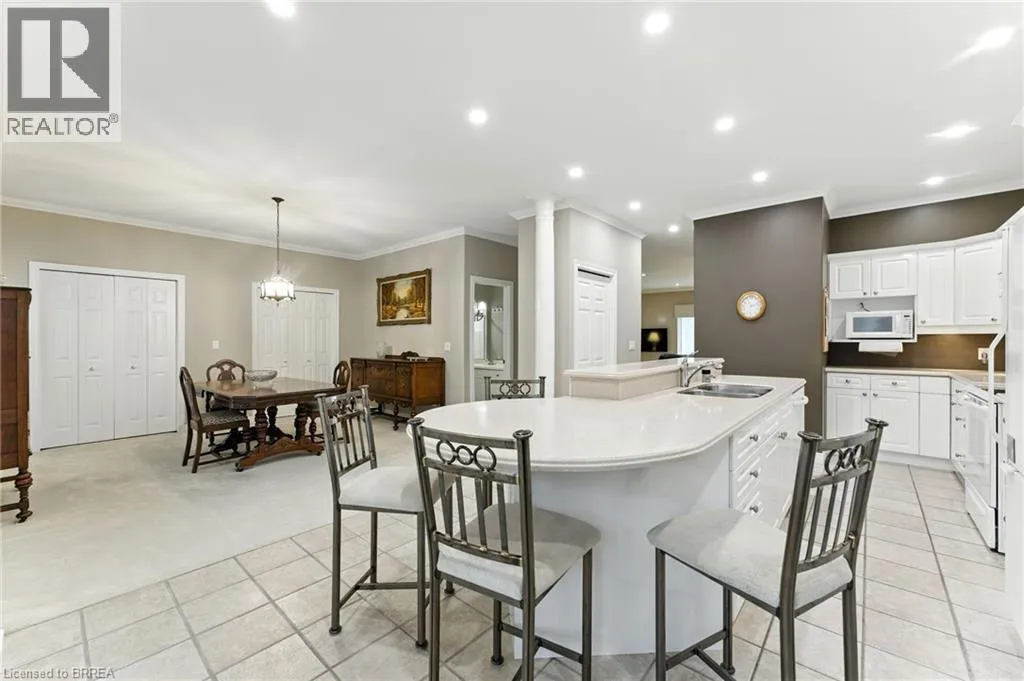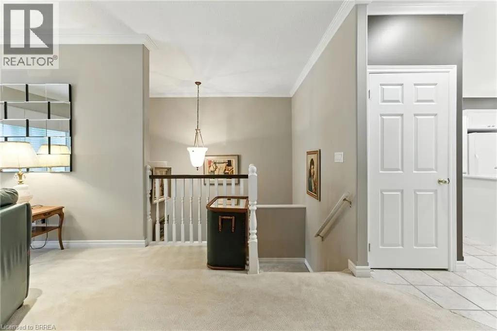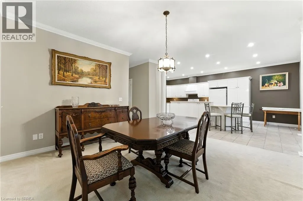 Paris Road to Hardy Road Welcome to this meticulously maintained condo ideally situated near the Brantford Golf & Country Club, Glenhyrst Gardens, HWY 403, and scenic walking trails. This home is perfect for anyone seeking a low-maintenance lifestyle in one of Brantfordâs most sought-after neighbourhoods. Step inside to an open-concept living area that feels spacious and inviting. The bright kitchen features a large centre island with a built-in eating counter, making it perfect for casual meals or entertaining. A separate dining room offers plenty of space for hosting gatherings and can easily be converted back into a third bedroom if desired. The main level also includes a 3-piece bathroom and laundry room. On the lower level, youâll find the primary bedroom, second bedroom, and 4-piece bathroom. This level also provides ample closet space, storage, and direct walk-in entry from the double car garage. The backyard and surrounding area offer peaceful outdoor enjoyment, while the property itself ensures a maintenance-free lifestyle without sacrificing comfort. Whether youâre downsizing, investing, or simply looking for the convenience of condo living in a prestigious location, this home is sure to impress. Come view it for yourselfâyouâll fall in love with this beautiful condo! (id:27476)